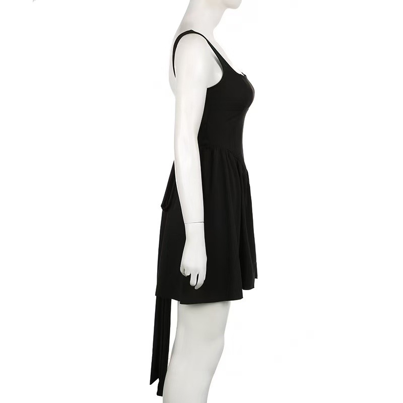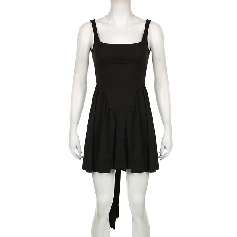 2026 유럽 및 미국 여성 의류, 우아한 스타일의 단색 백리스 스트랩 리본 투피스 드레스 여성용 (재고 있음, 해외 수출용)스토어 가기