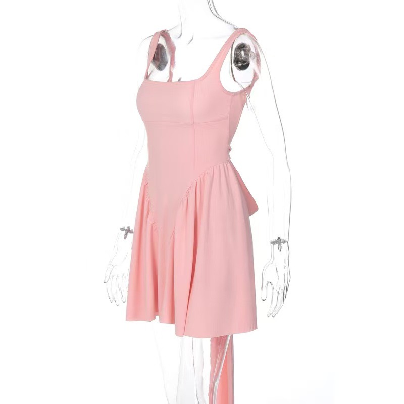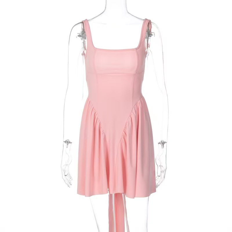 2026 유럽 및 미국 여성 의류, 우아한 스타일의 단색 백리스 스트랩 리본 투피스 드레스 여성용 (재고 있음, 해외 수출용)