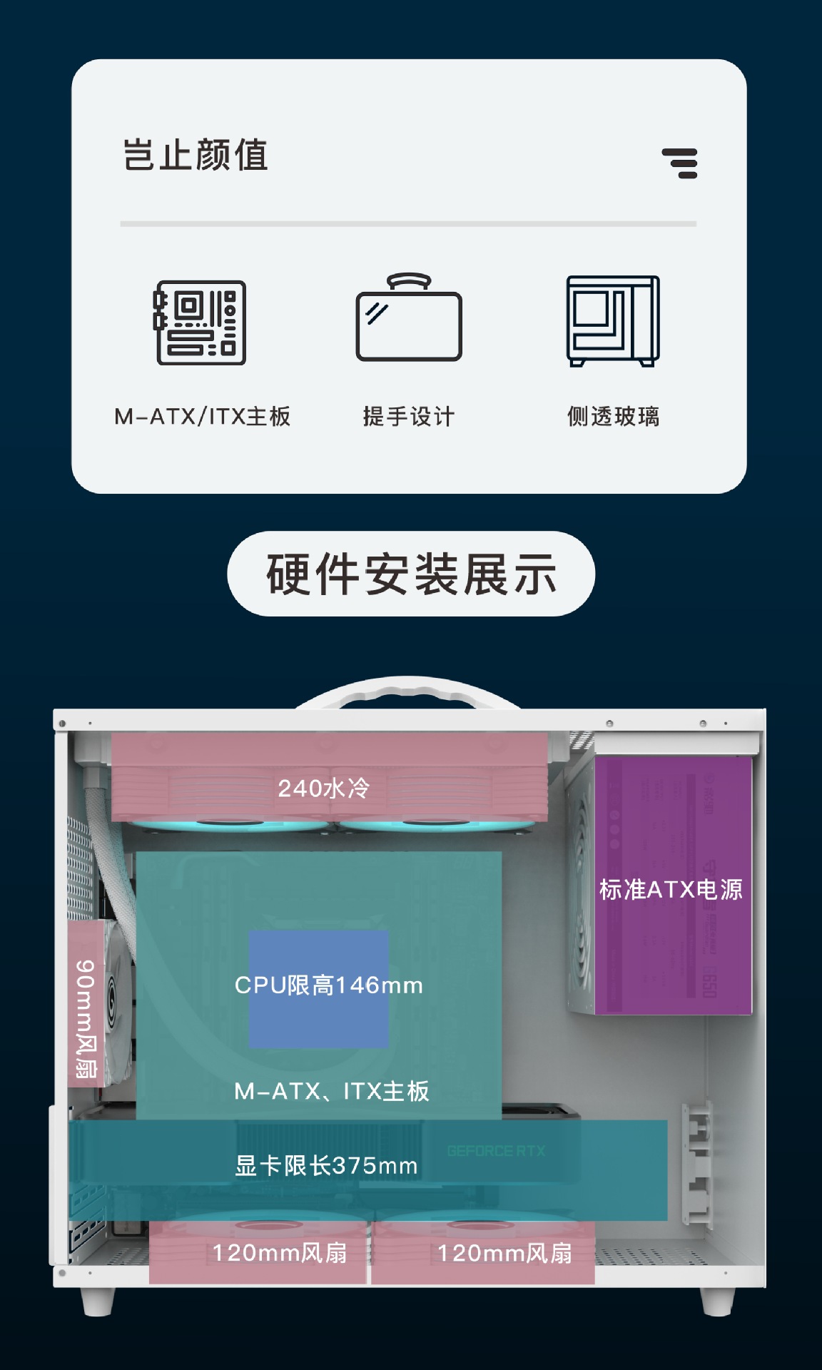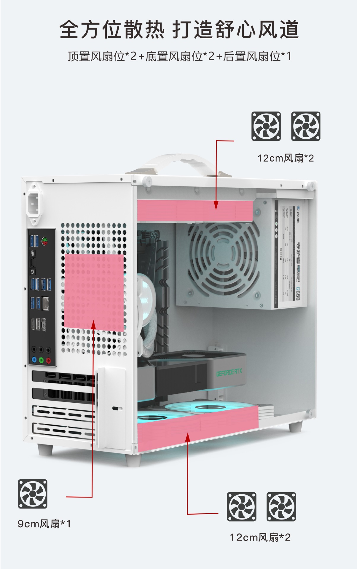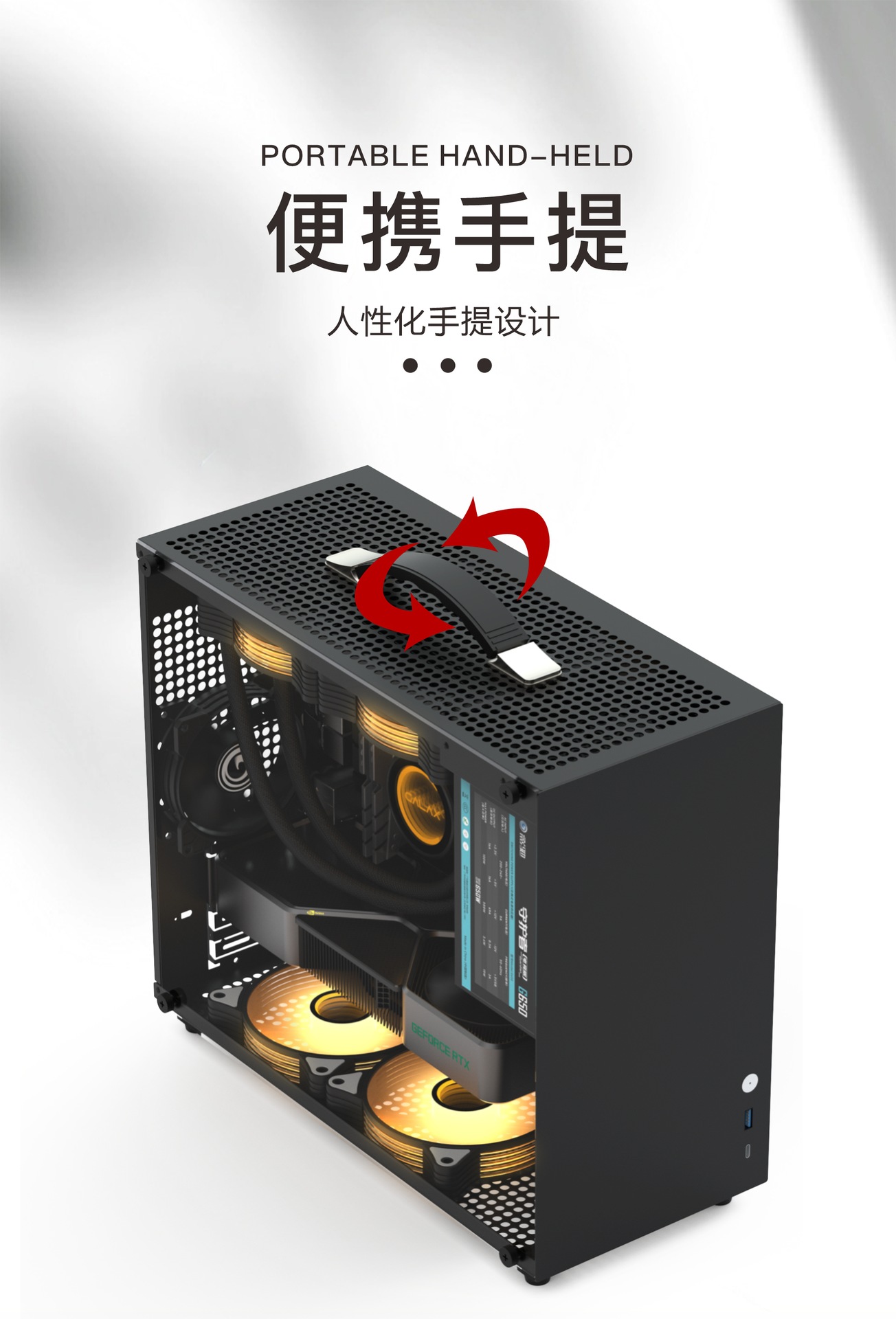 ITX便捷手提侧透玻璃电脑机箱小体积四槽扩展电竞台式机机箱