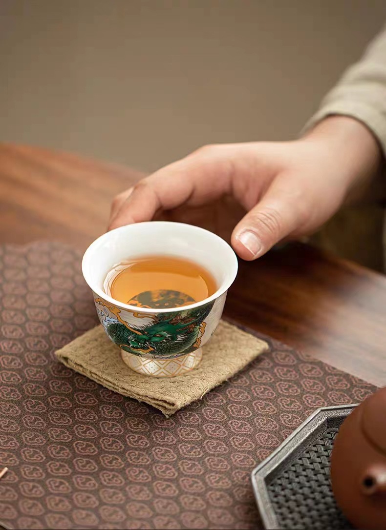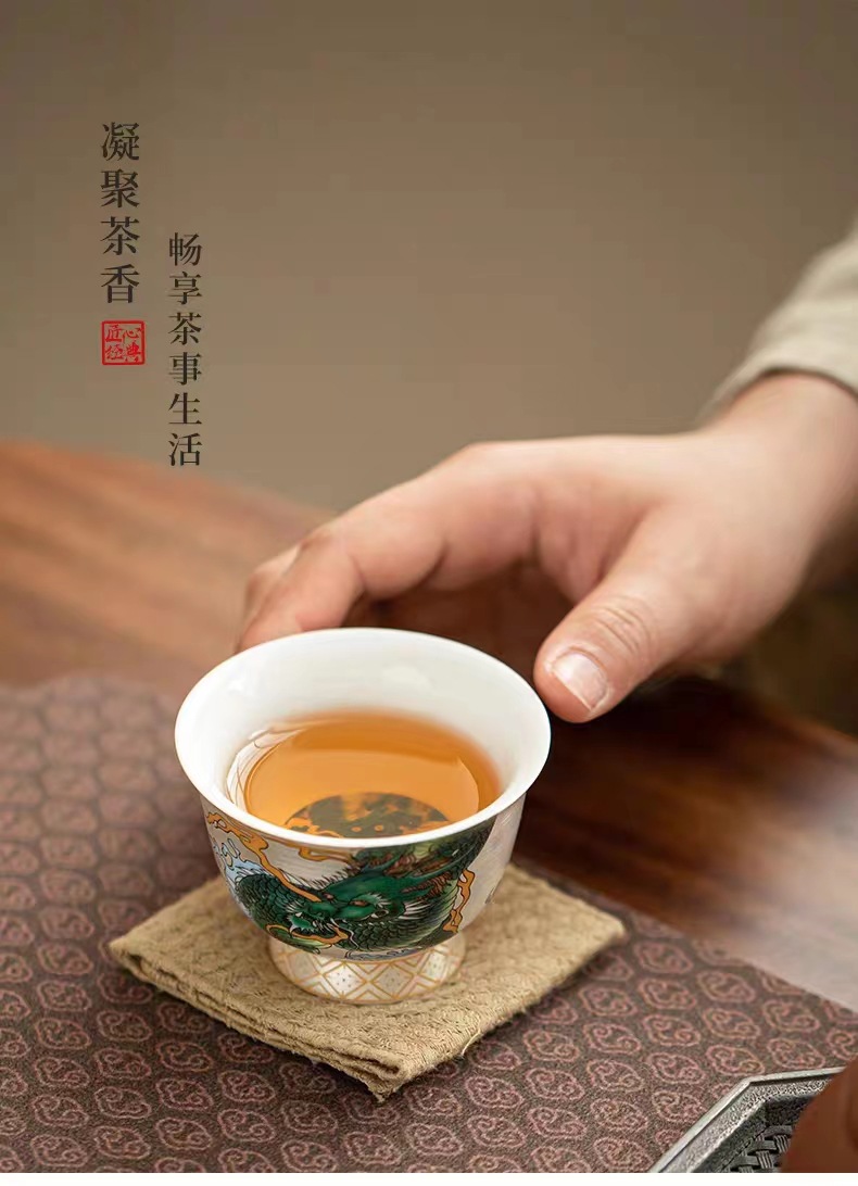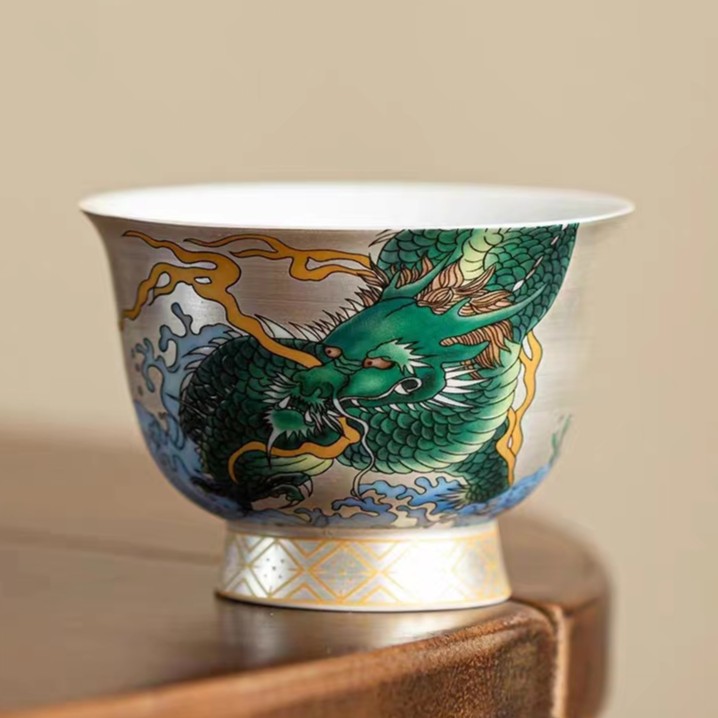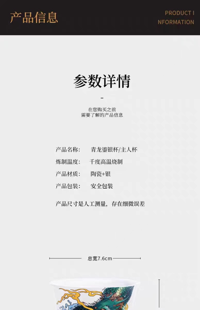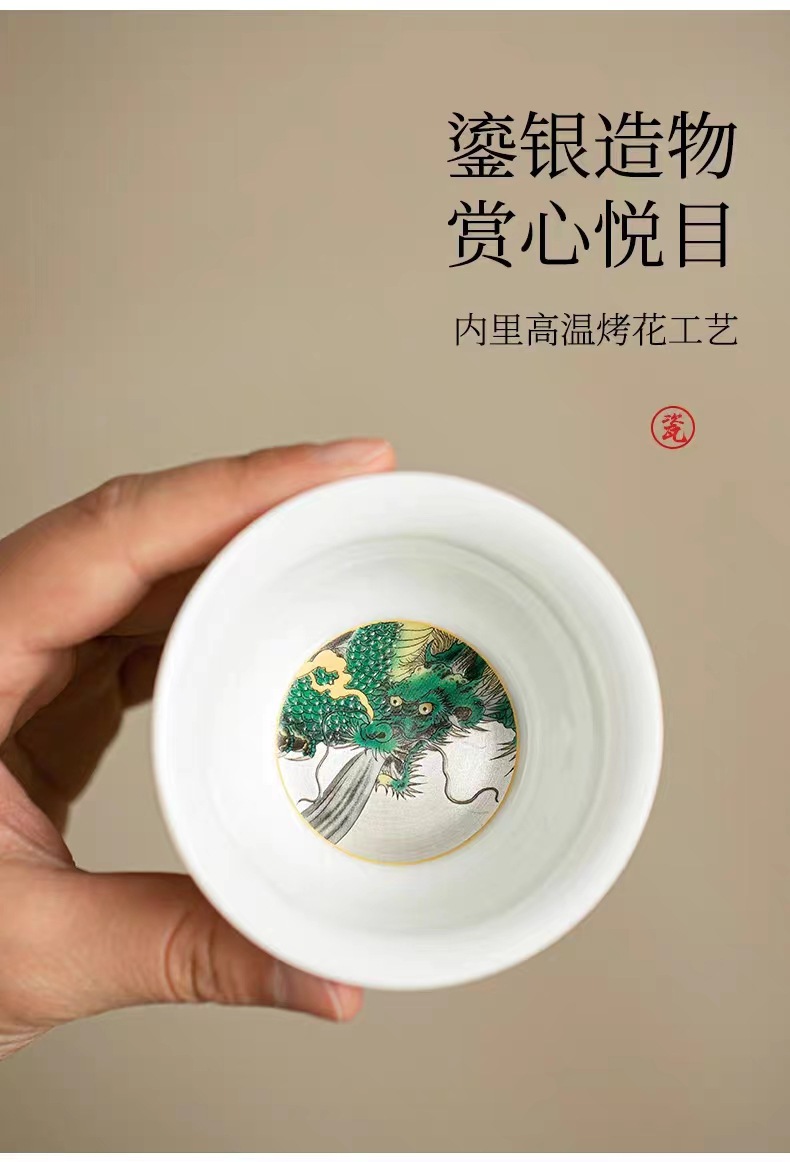 세라믹 블루 드래곤 컵 실버 마스터 컵 가정용 쿵푸 차 세트 티 컵 라이트 럭셔리 티 컵 하이 엔드 국가 스타일 티 컵