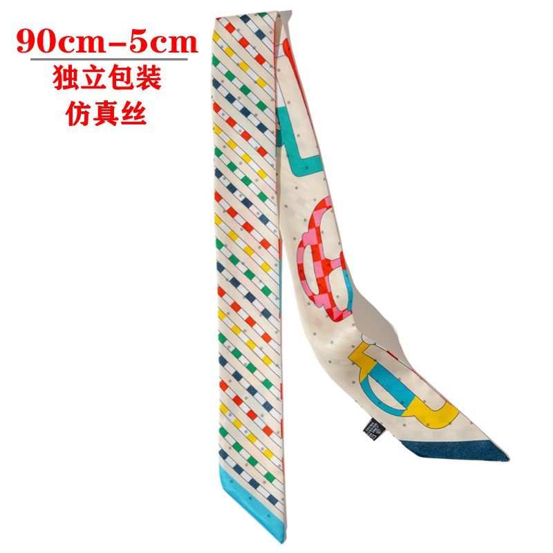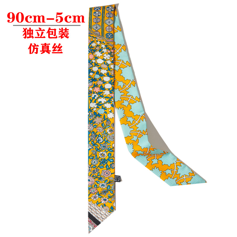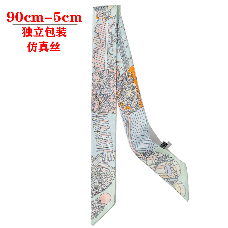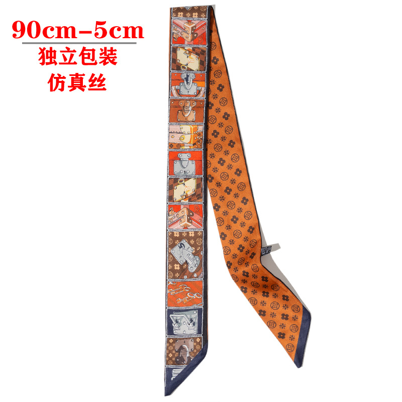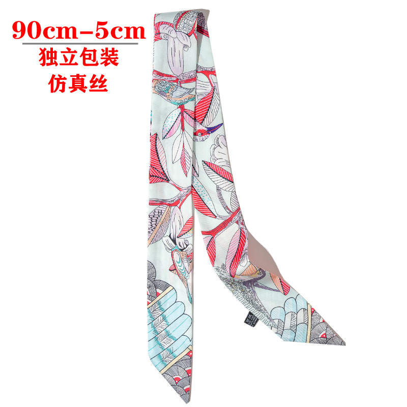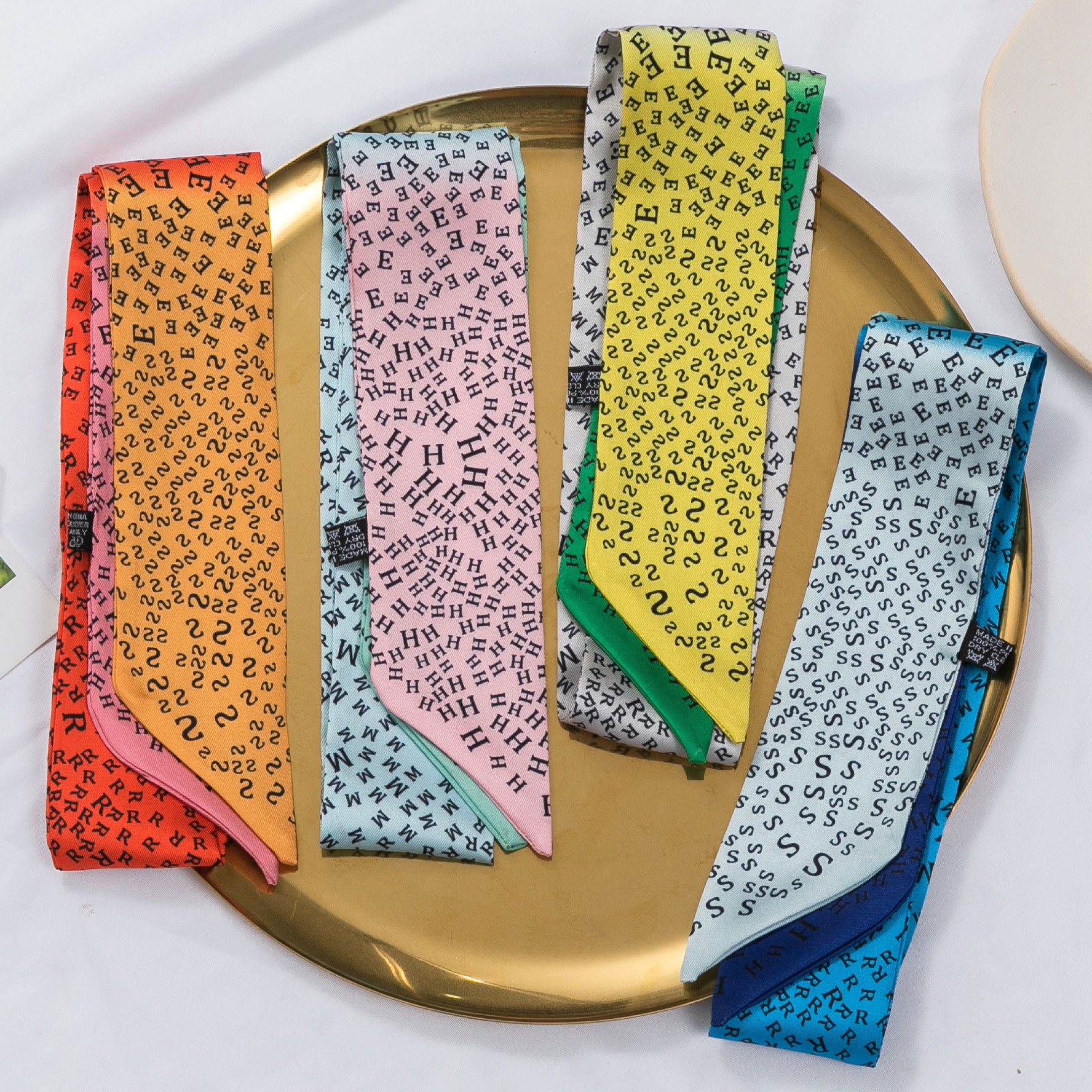 새로운 고급 인쇄 실크 스카프 긴 스트립 장식 간단한 스타일 시뮬레이션 실크 작은 실크 스카프 리본 스카프