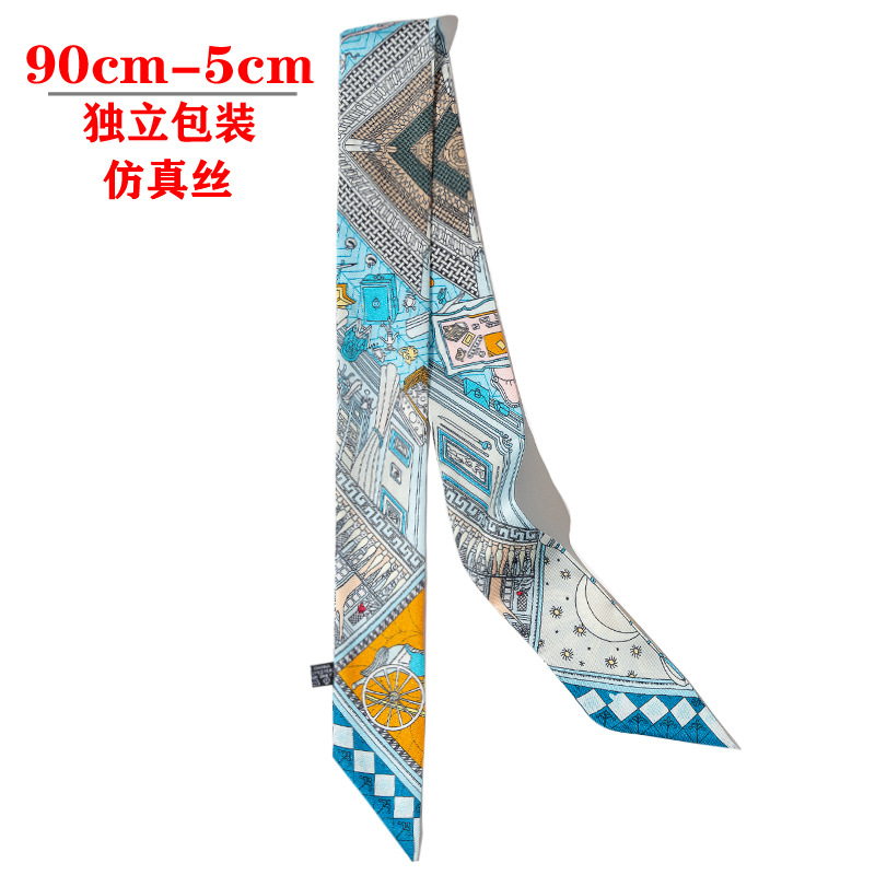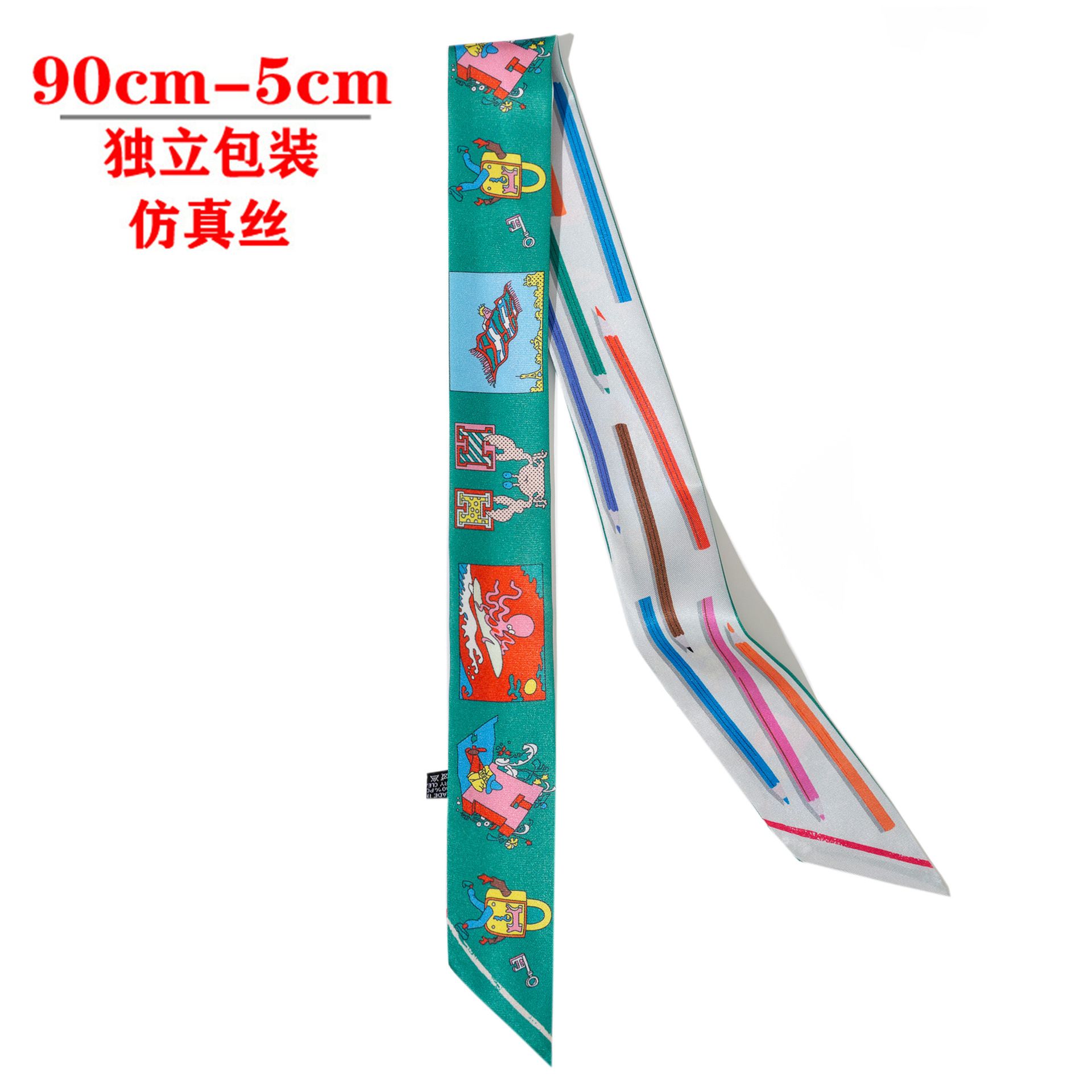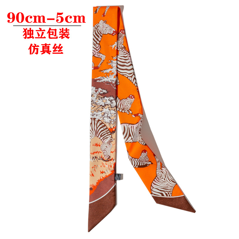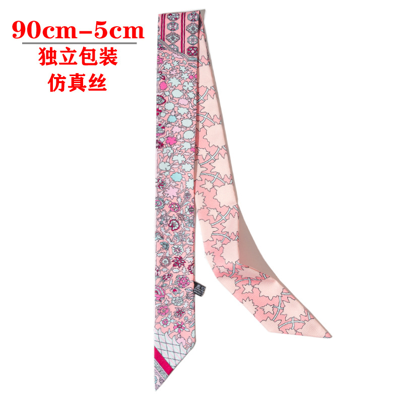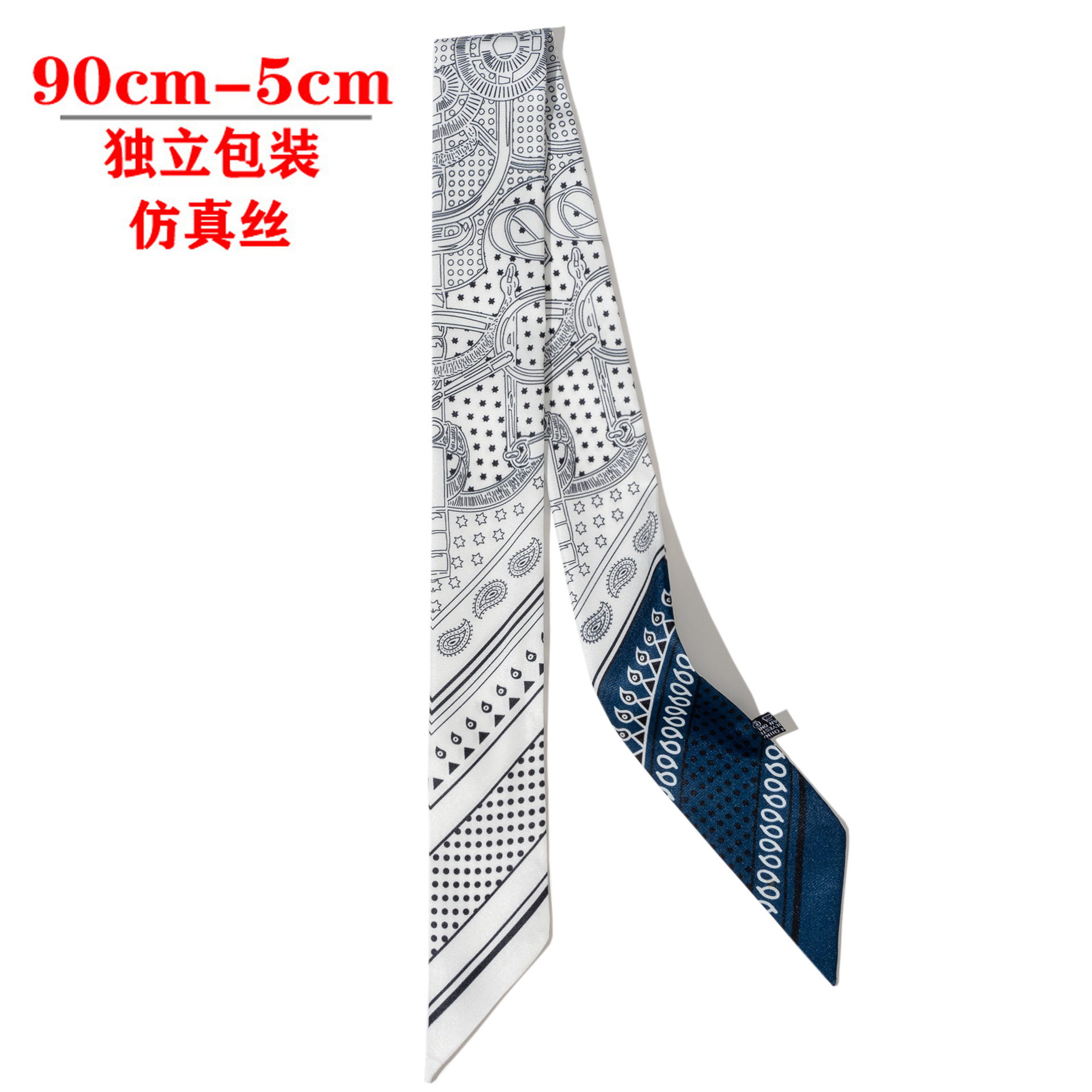새로운 고급 인쇄 실크 스카프 긴 스트립 장식 간단한 스타일 시뮬레이션 실크 작은 실크 스카프 리본 스카프