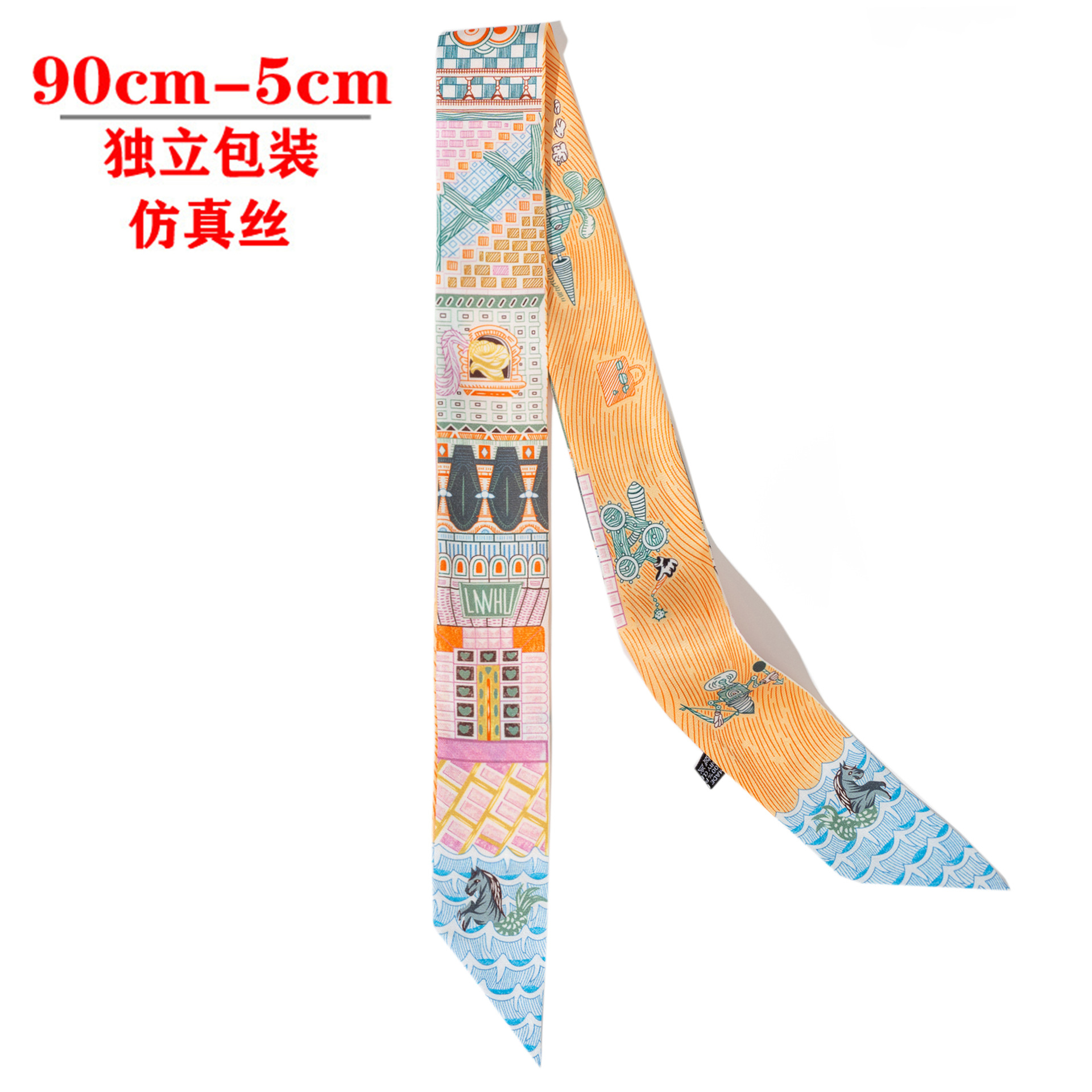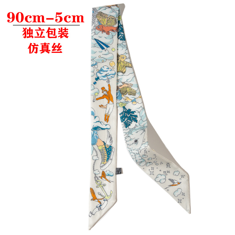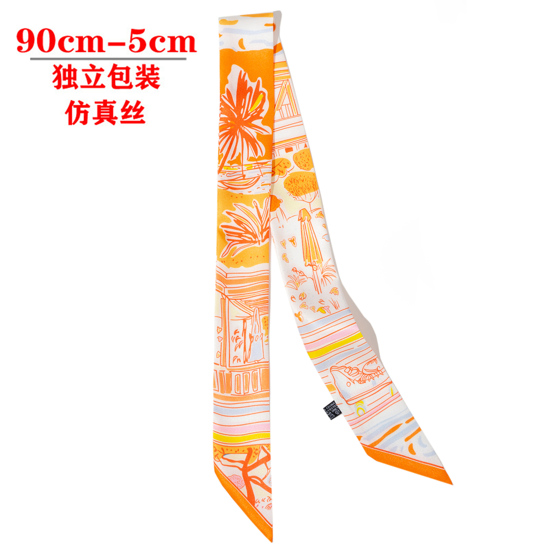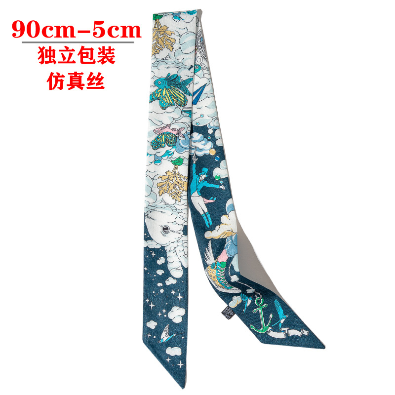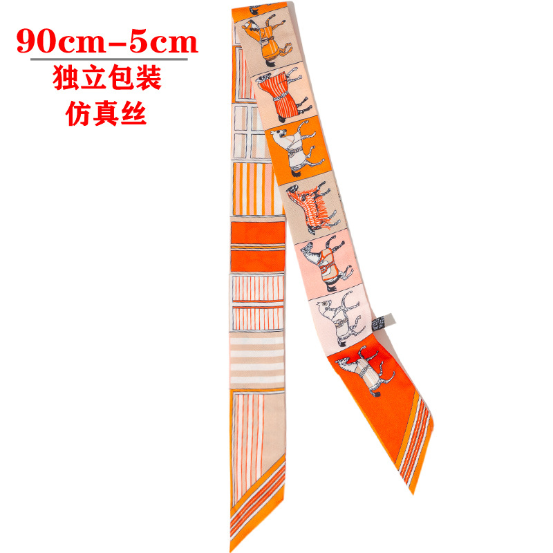 새로운 고급 인쇄 실크 스카프 긴 스트립 장식 간단한 스타일 시뮬레이션 실크 작은 실크 스카프 리본 스카프