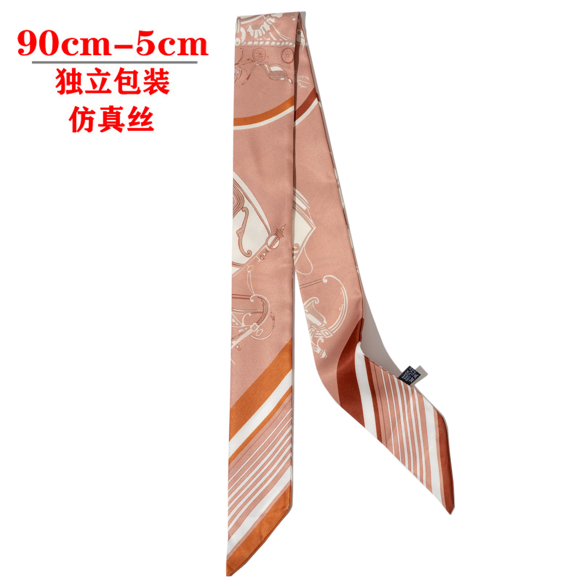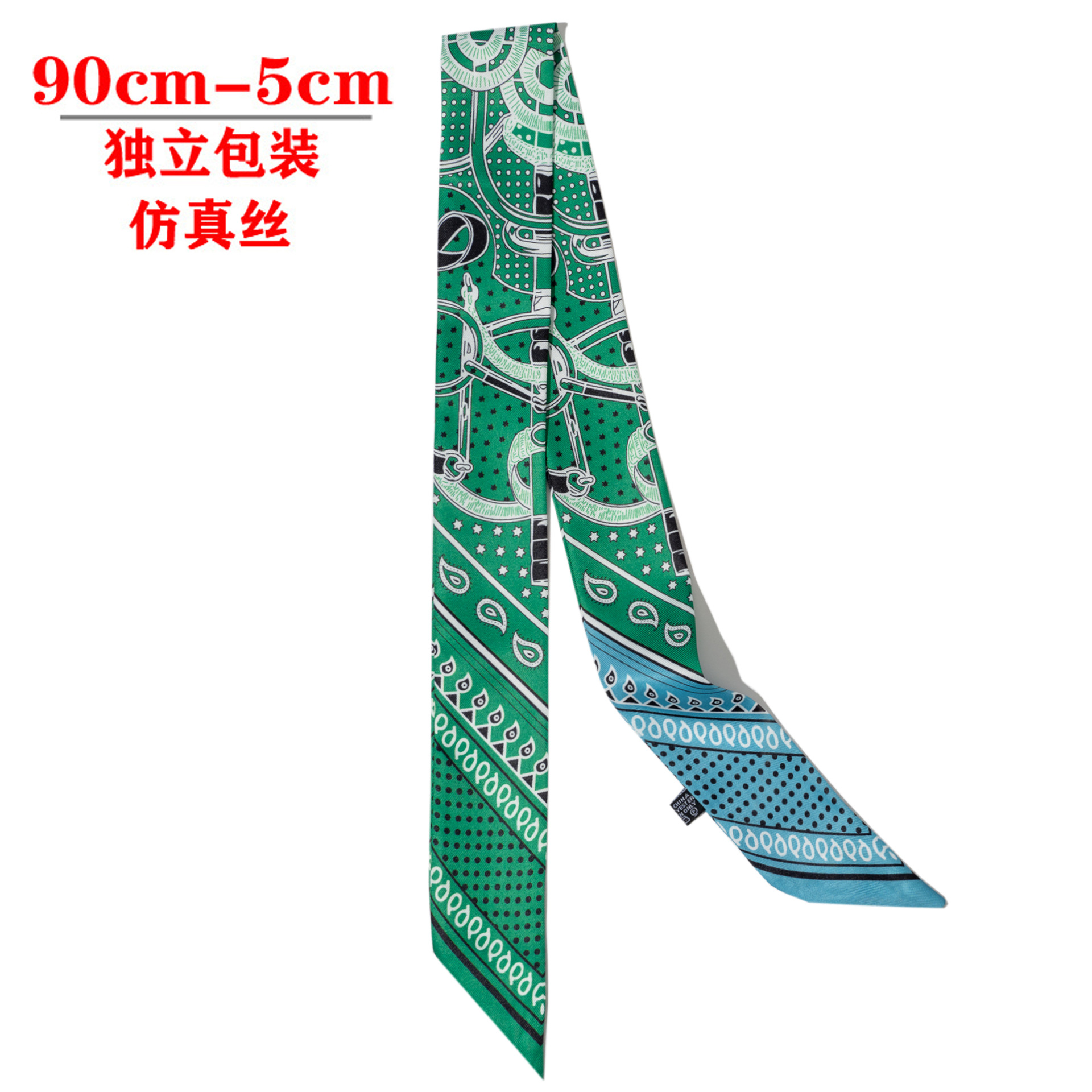 새로운 고급 인쇄 실크 스카프 긴 스트립 장식 간단한 스타일 시뮬레이션 실크 작은 실크 스카프 리본 스카프스토어 가기
