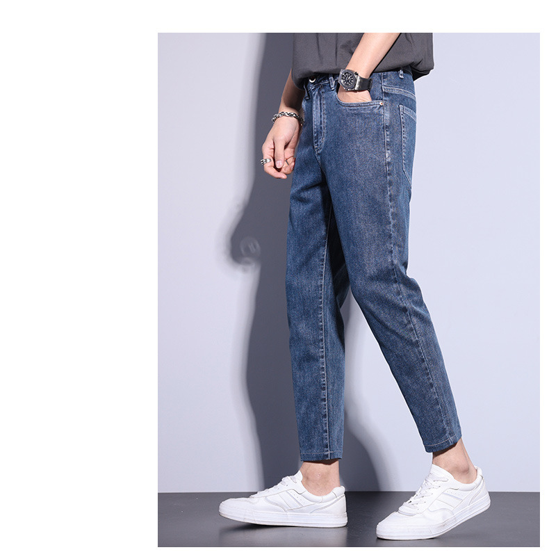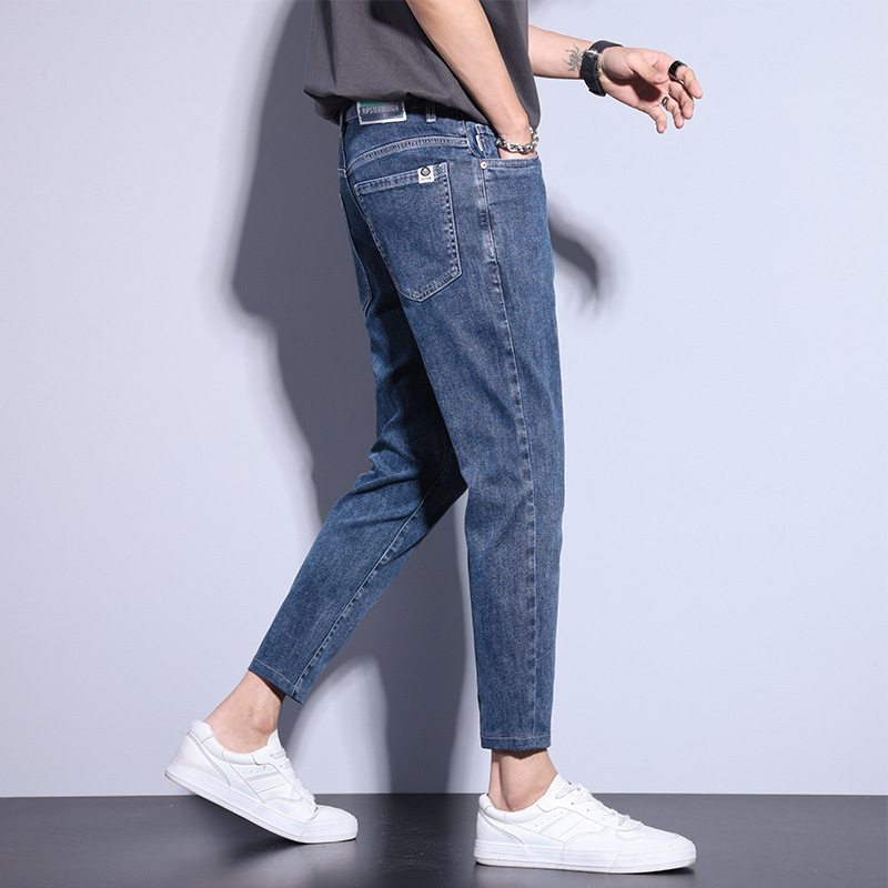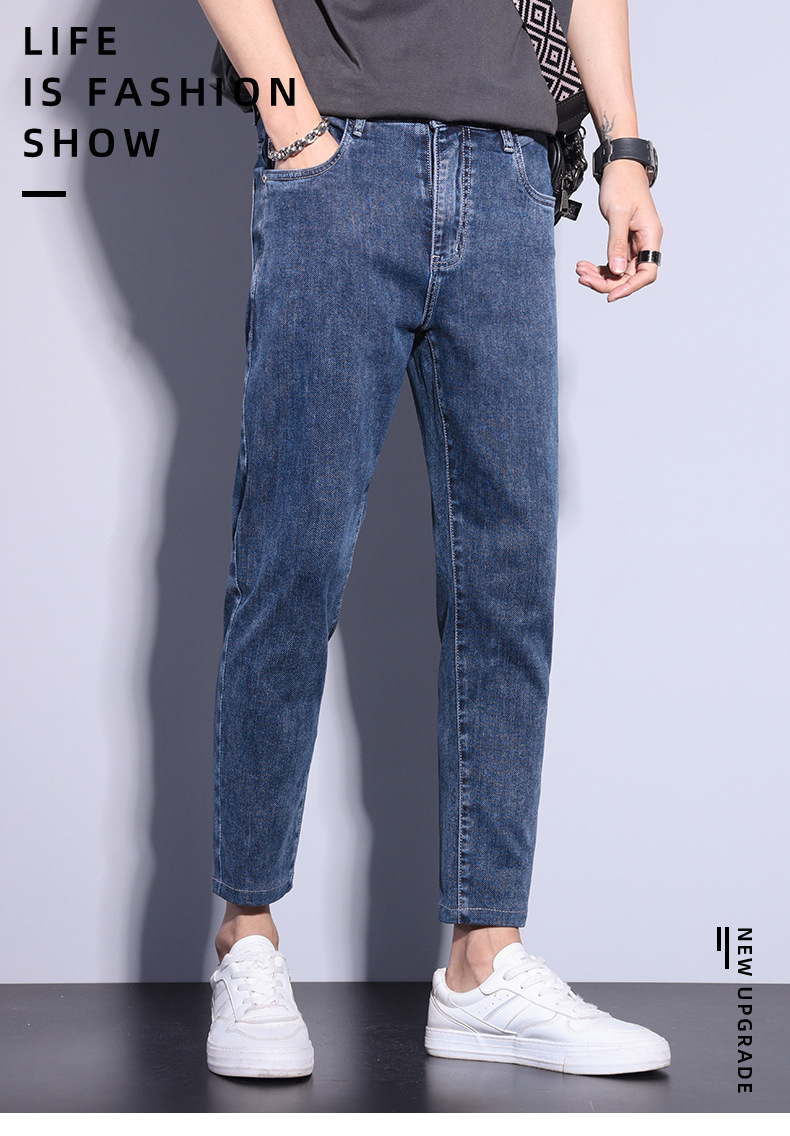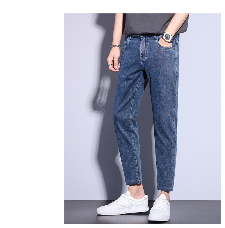 남성용 9부 청바지 봄 여름 스트레이트 슬림핏 남성용 바지 2024 남성용 신작 신축성 있는 캐주얼 바지