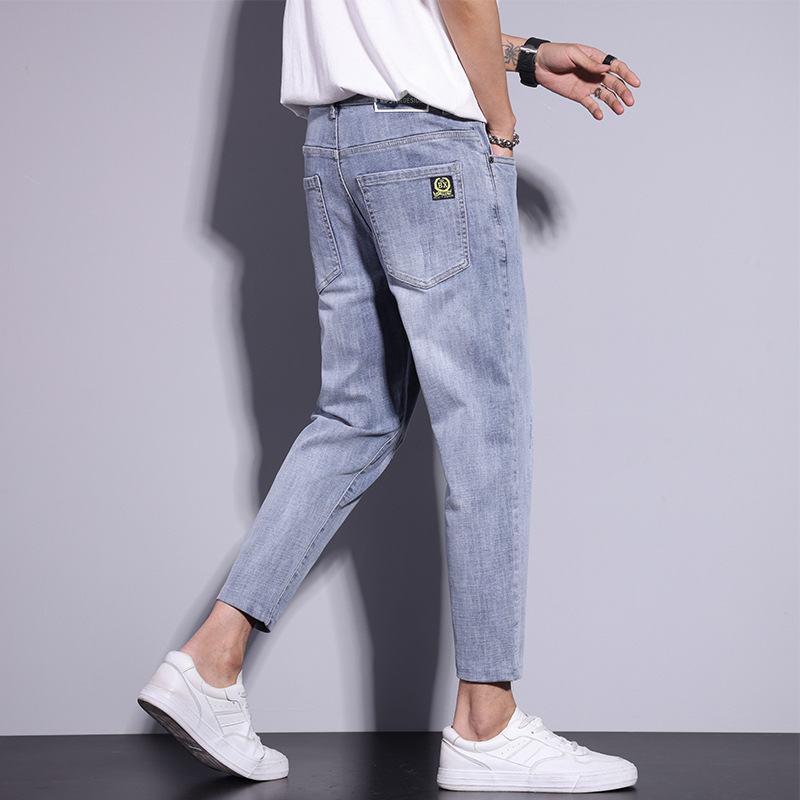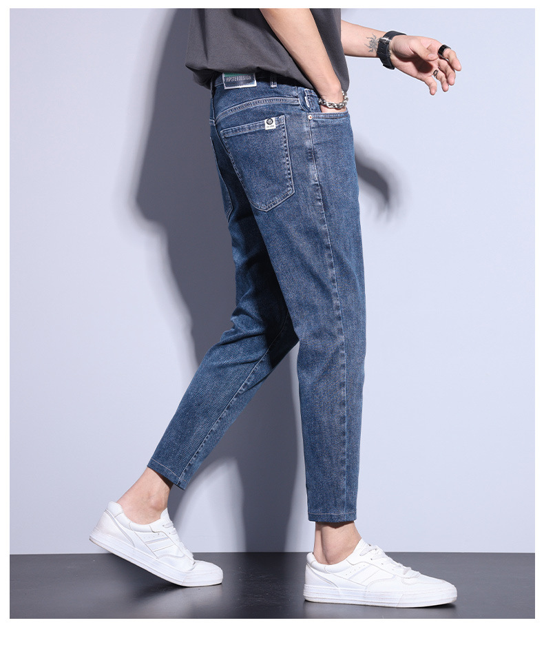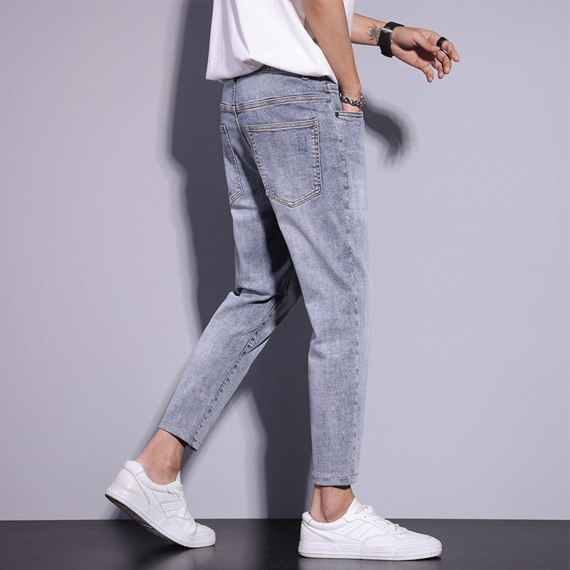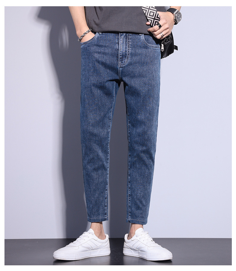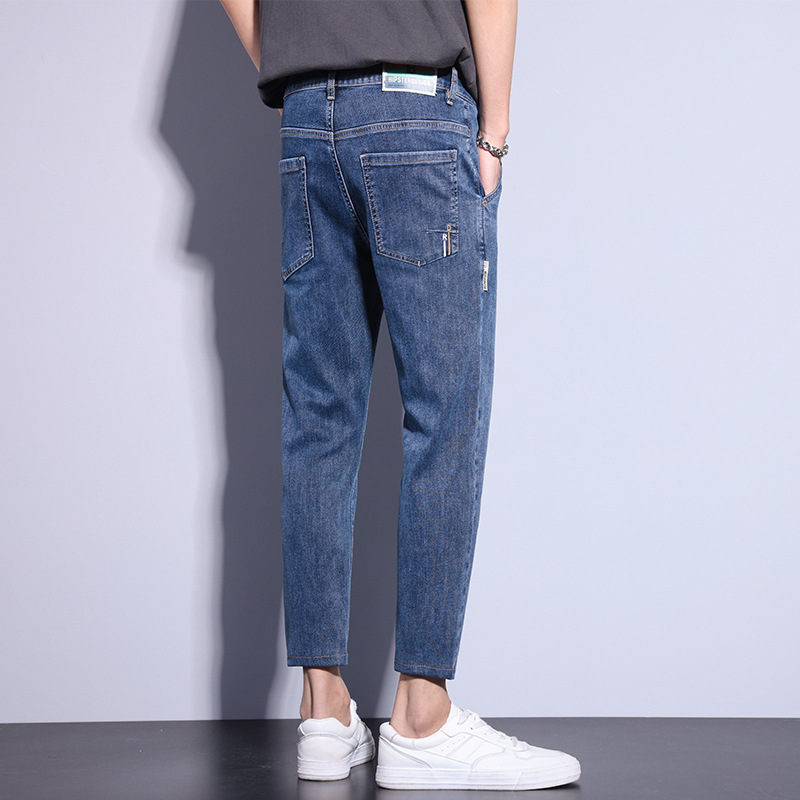 남성용 9부 청바지 봄 여름 스트레이트 슬림핏 남성용 바지 2024 남성용 신작 신축성 있는 캐주얼 바지