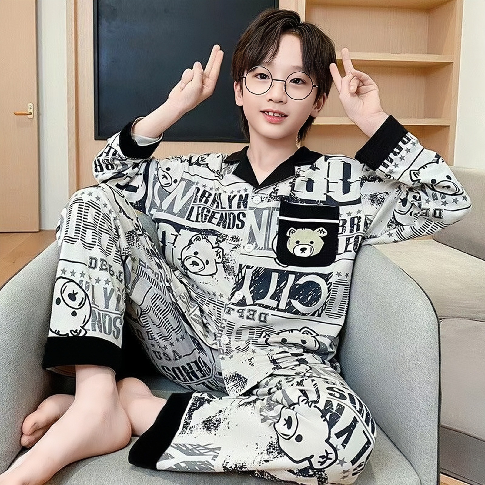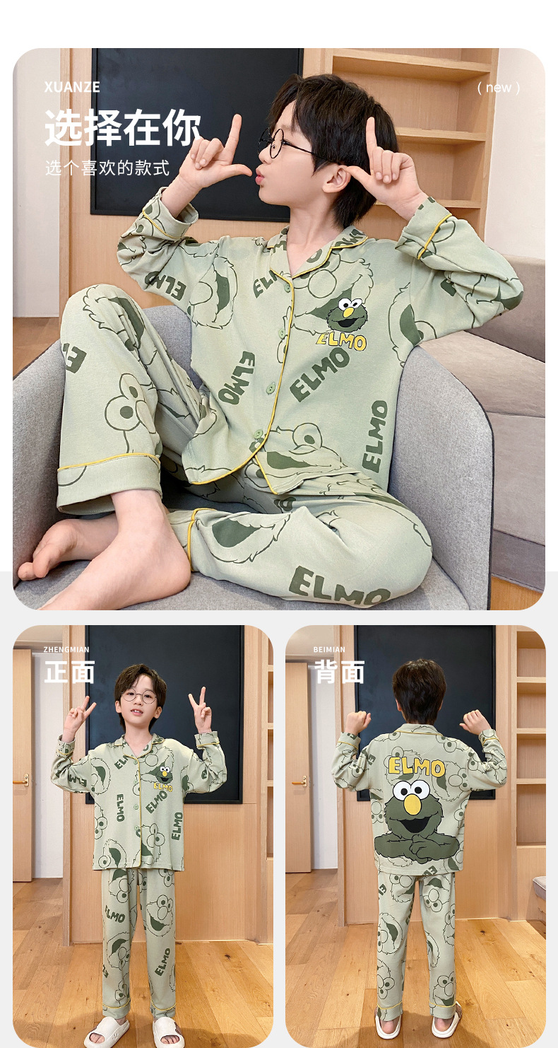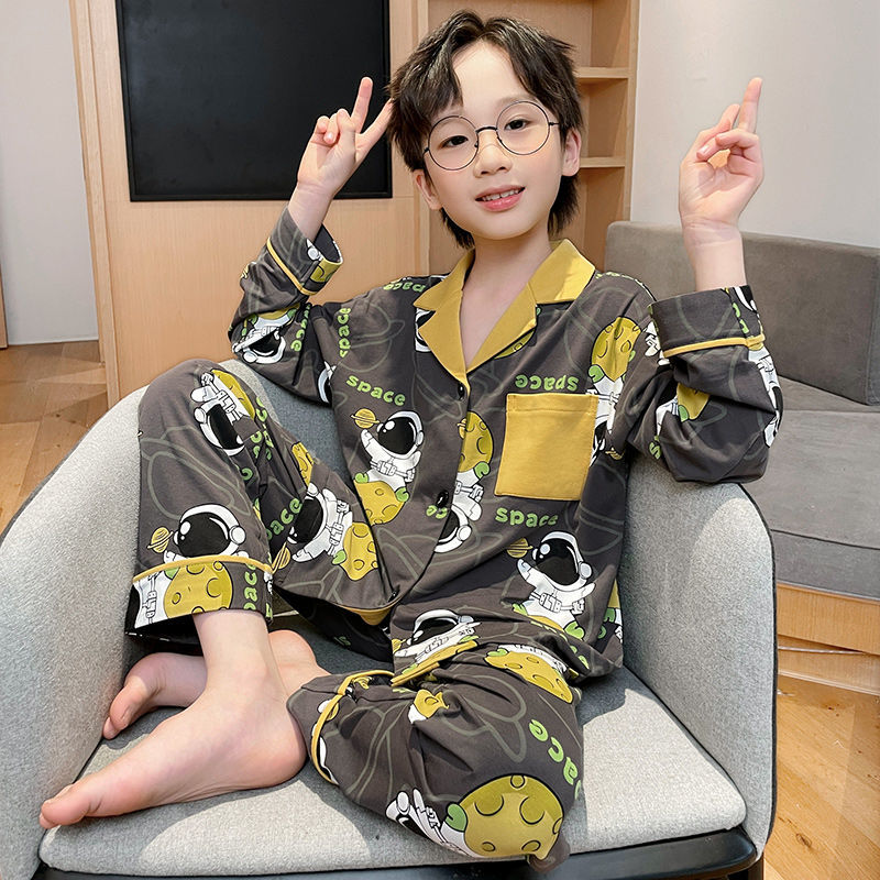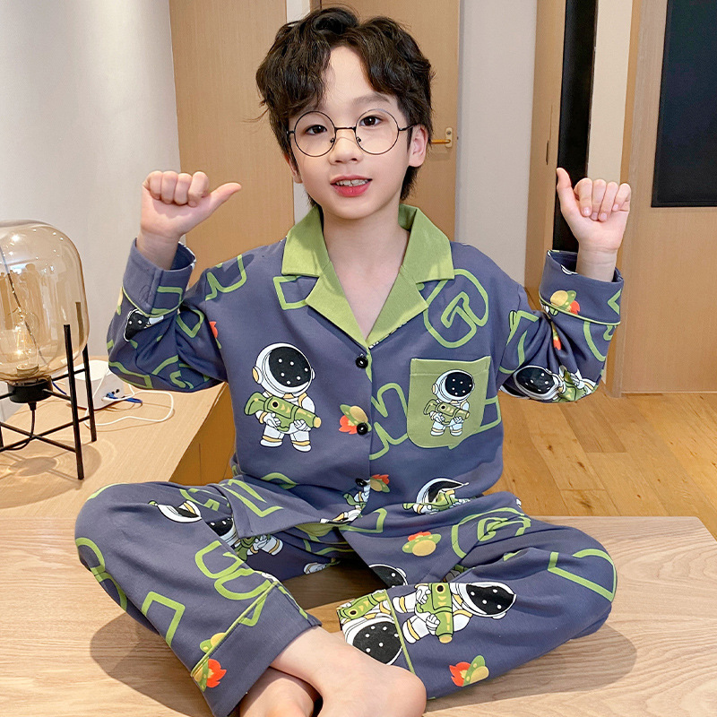 봄과 가을 어린이 잠옷 소년 만화 긴팔 얇은 아기 소년의 중형 및 대형 어린이 야외 가정복 세트스토어 가기