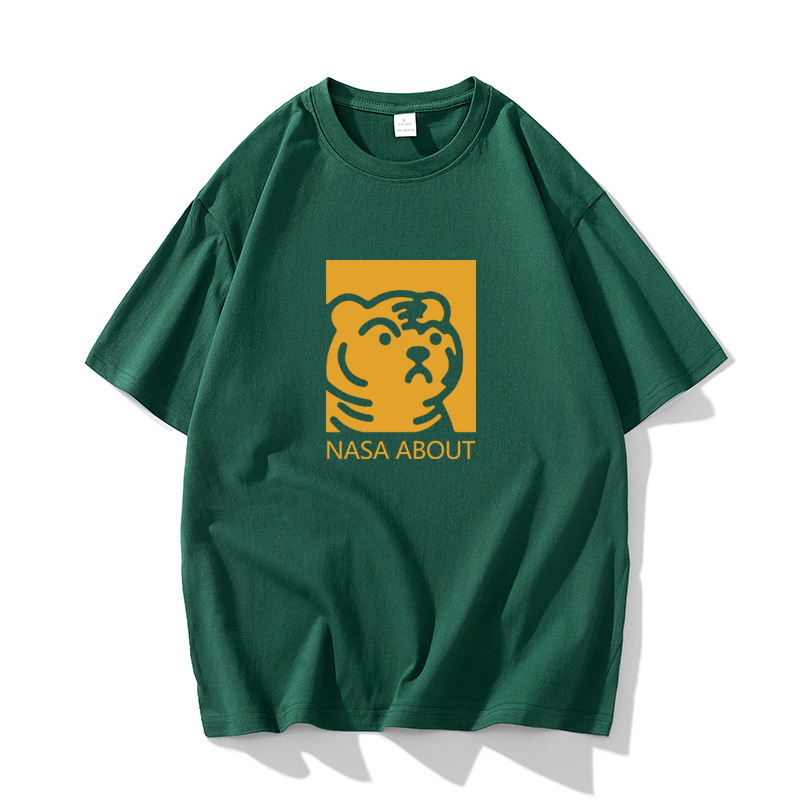 NASA 호랑이 머리 무거운면 반팔 셔츠 남자 여름 새로운 패션 브랜드 느슨한 올 매치 커플의 반팔 옷