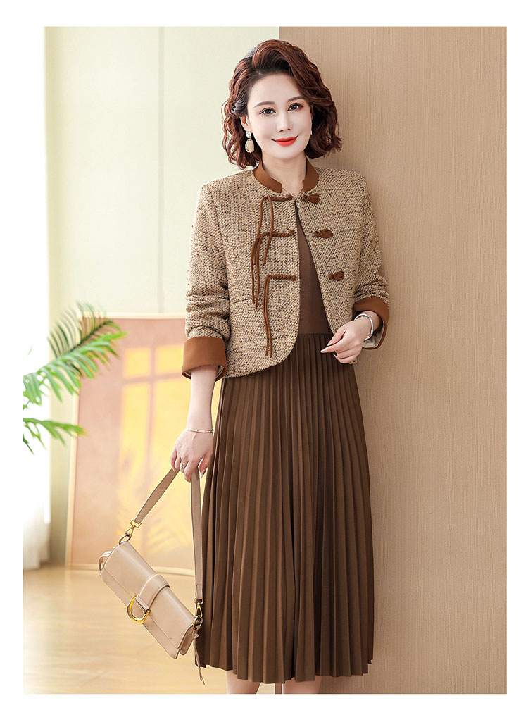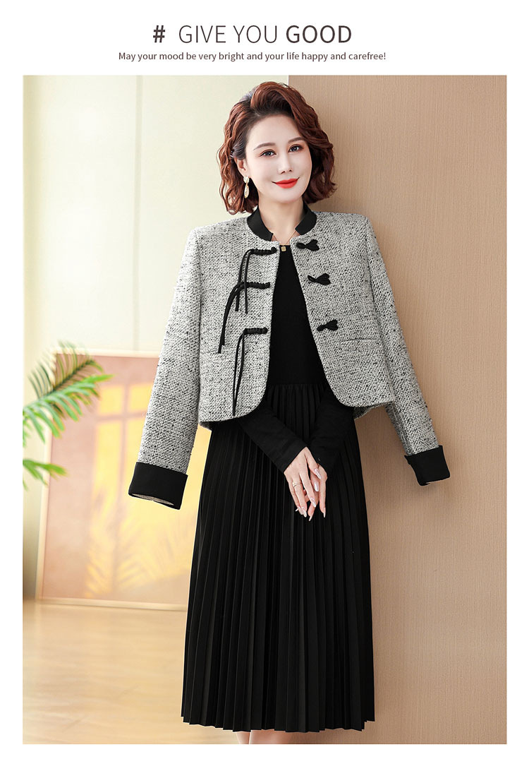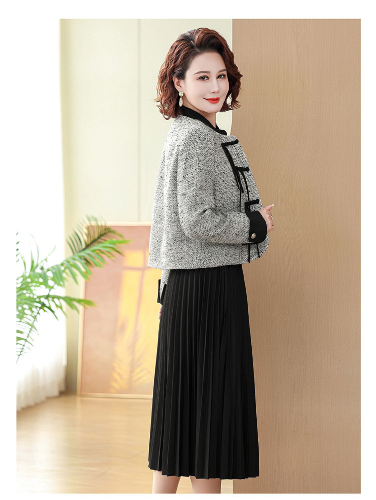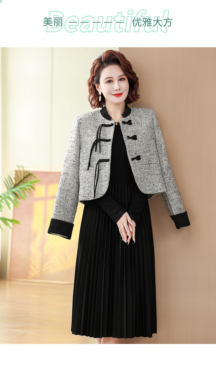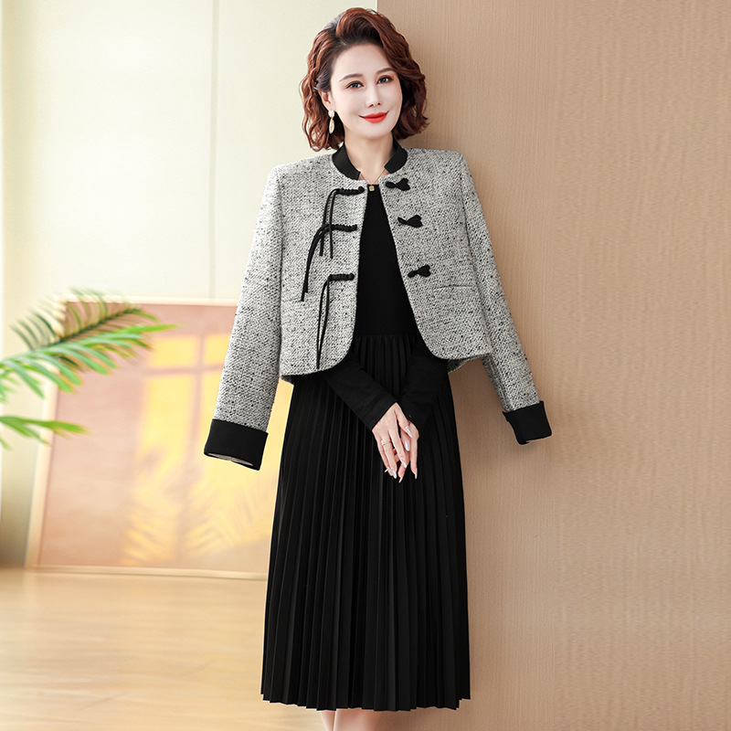 중국 스타일의 엄마 코트 봄과 가을 원피스 투피스 세트 외국 기질 허리 꽉 중년 여성의 긴 치마