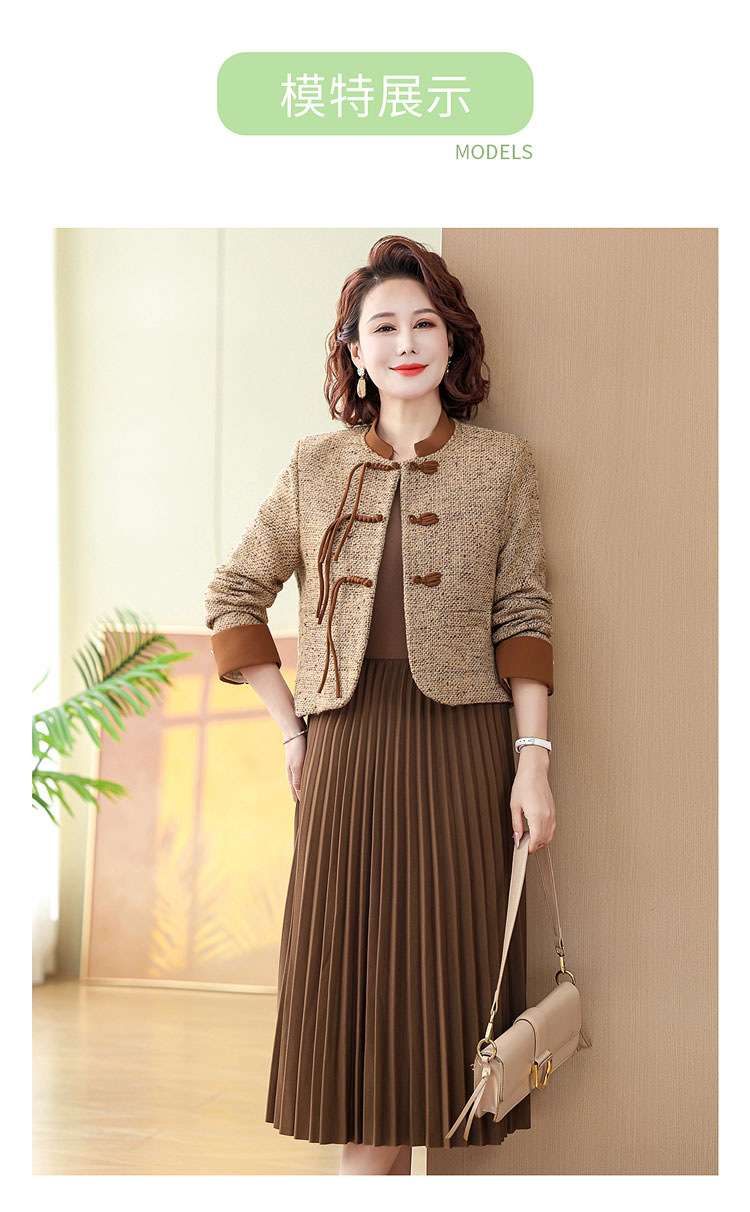 중국 스타일의 엄마 코트 봄과 가을 원피스 투피스 세트 외국 기질 허리 꽉 중년 여성의 긴 치마스토어 가기