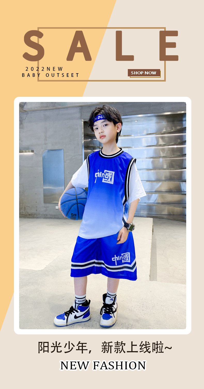 소년 여름 반소매 세트 2024 새로운 아이들의 잘 생긴 여름 옷 중대형 어린이 소년 스포츠 의류 온라인 레드 패션스토어 가기