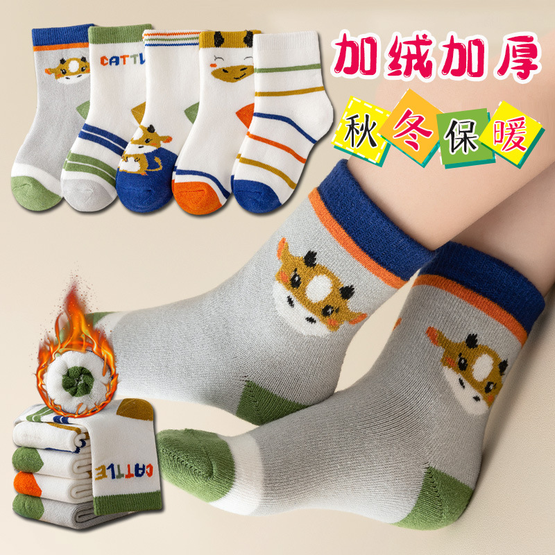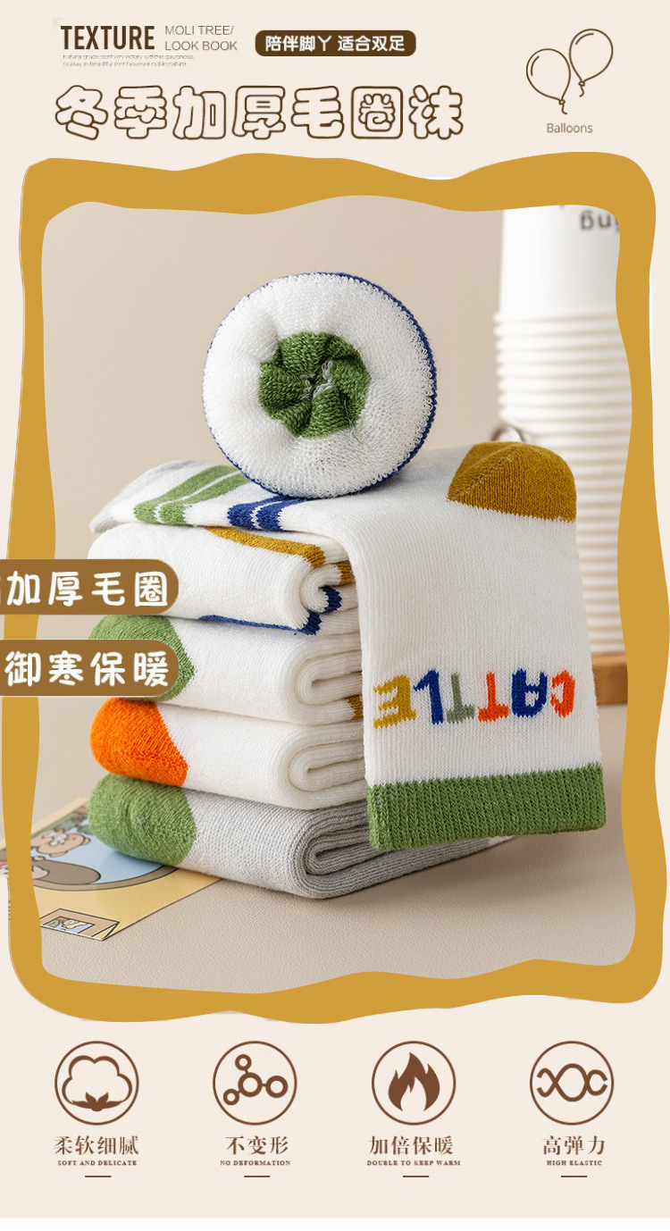 두꺼운 벨벳 중목 양말, 크로스보더 도매 롱삭스, 여아 아동 양말, 가을 겨울 보온 테리 남아 유아 양말스토어 가기