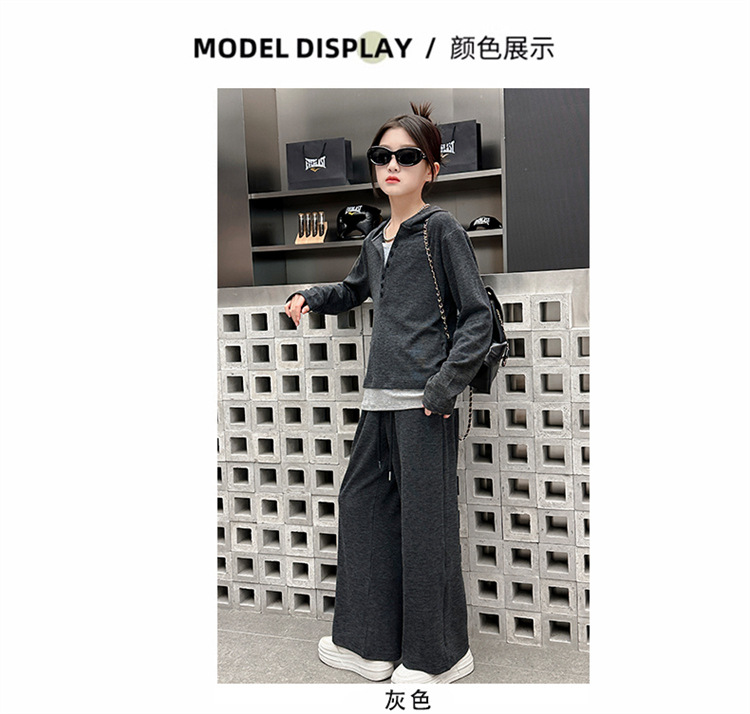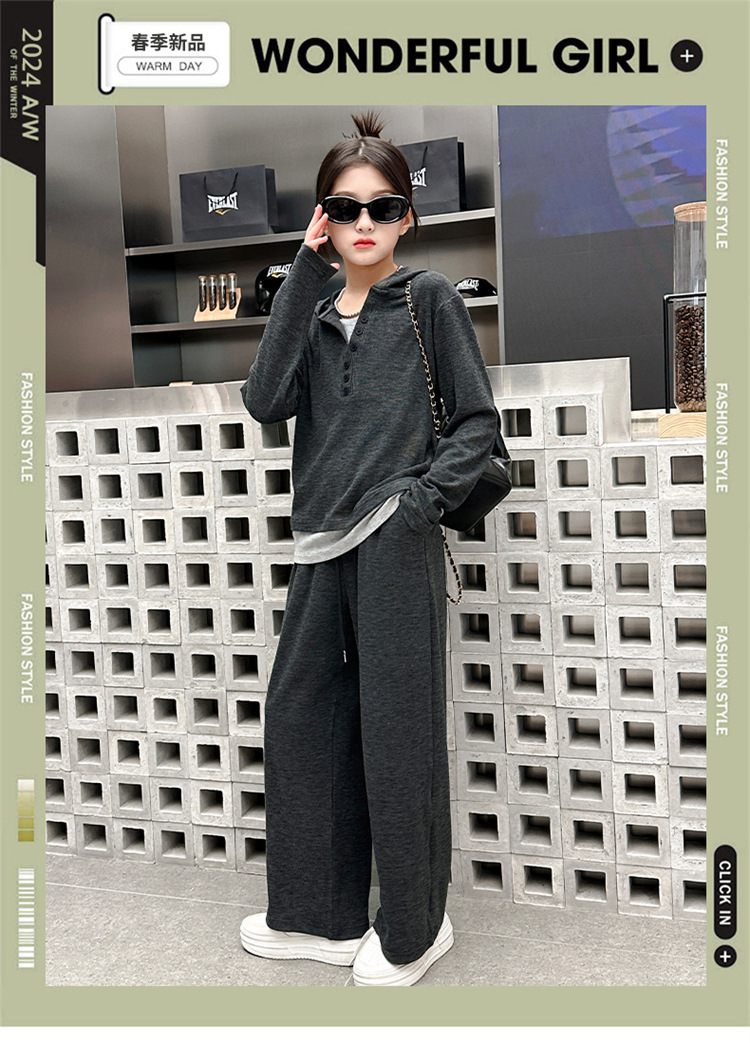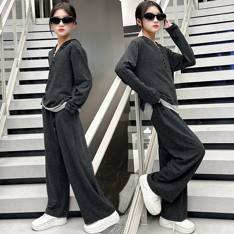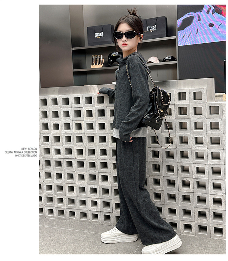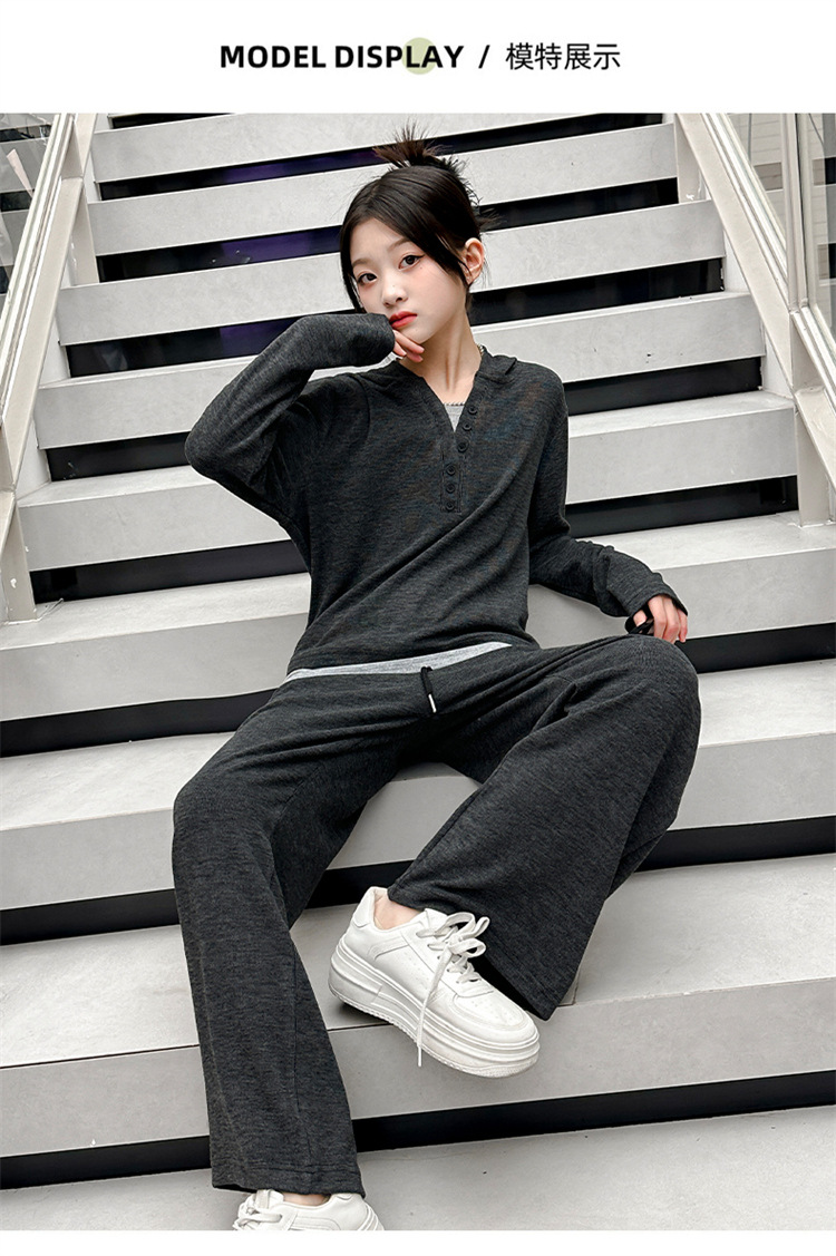 소녀 세트 2024 새로운 스타일 유행 긴 소매 게으른 가짜 투피스 느슨한 기질 니트 스웨터