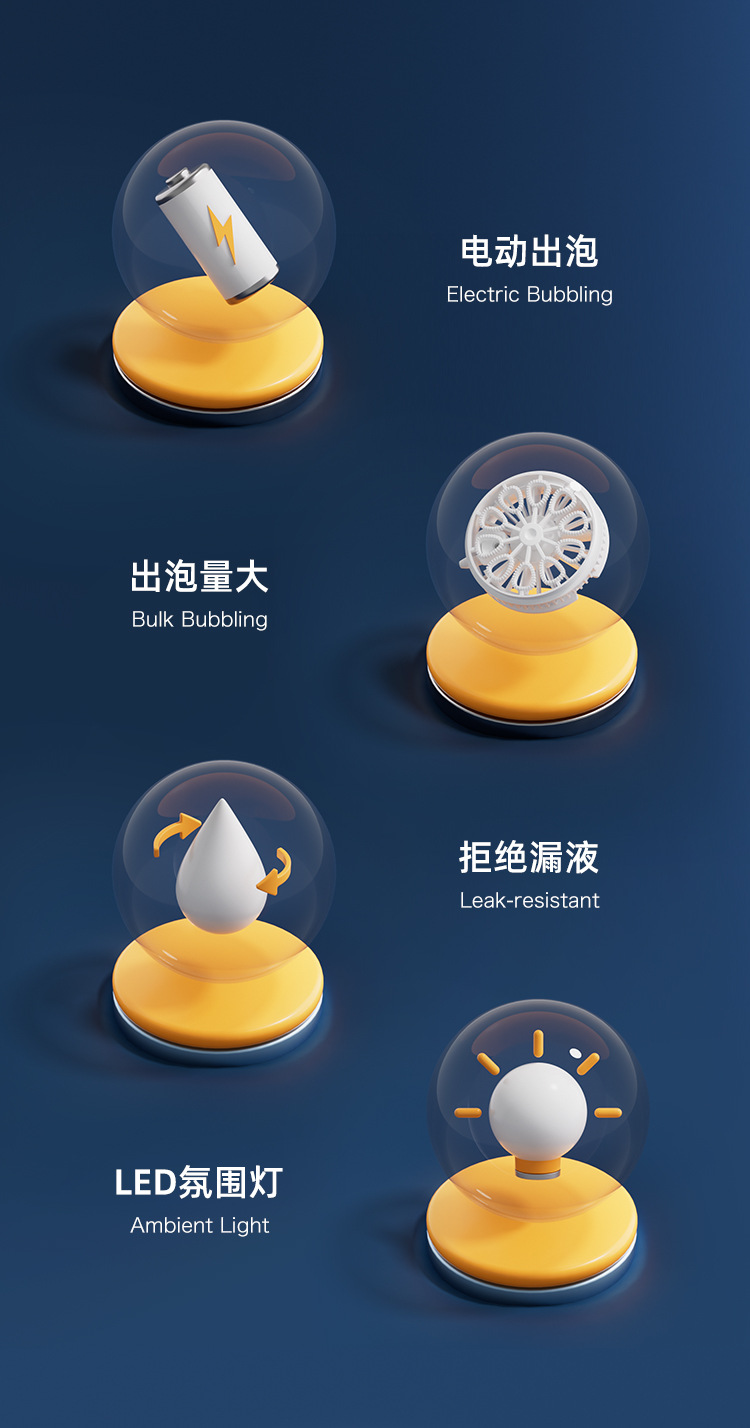 • 10 홀 공간 거품 기계 블루 + 배터리 + 10 팩 집중 거품 액체