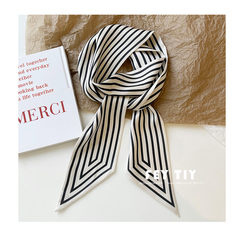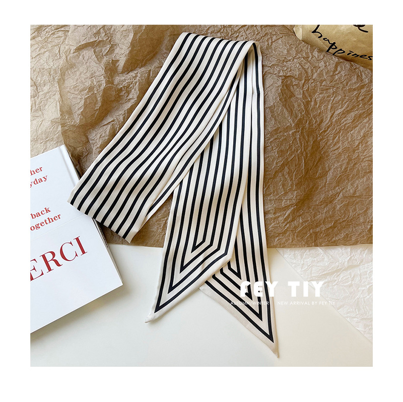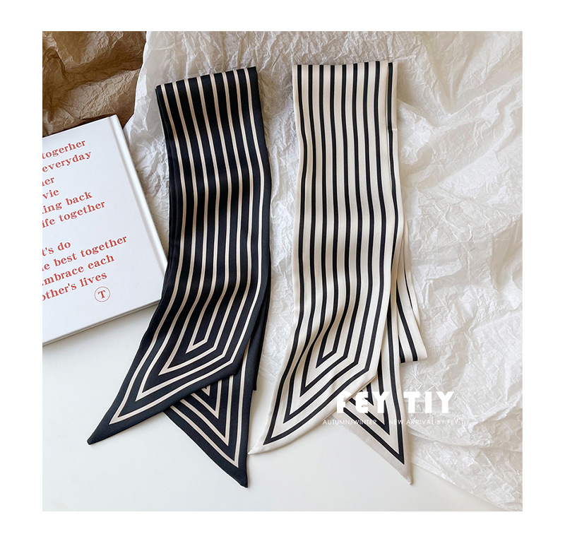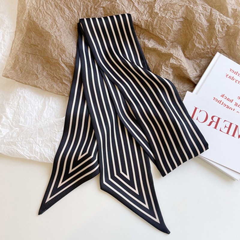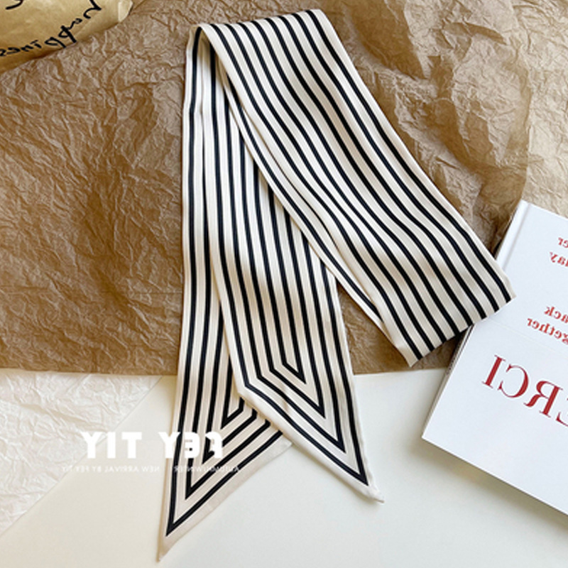 봄 여름 가을 북유럽 줄무늬 매우 간단한 스타일 실크 스카프 여성 긴 스트립 리본 서양식 장식 스카프 긴 얇은 스카프