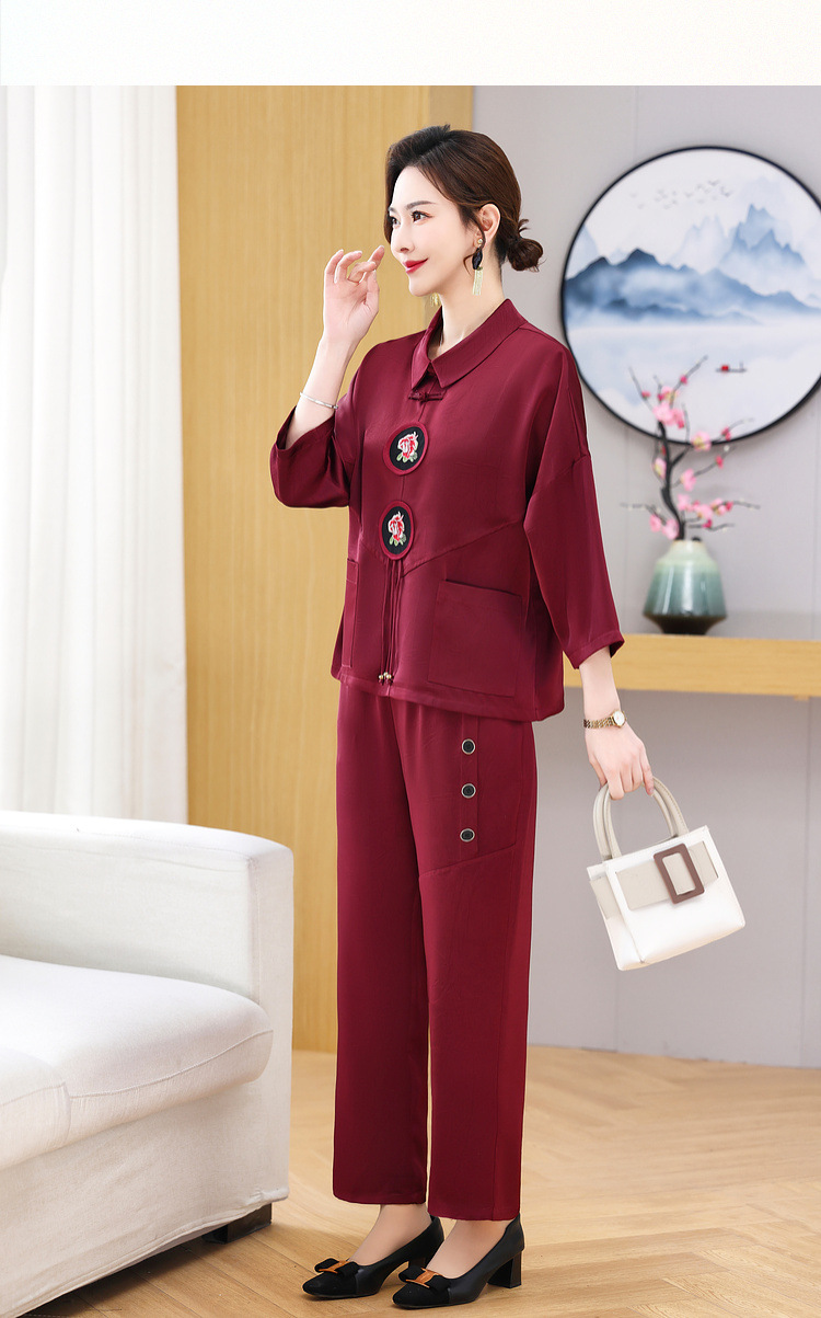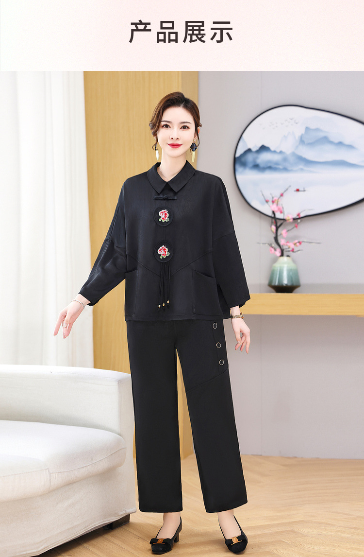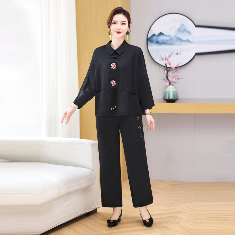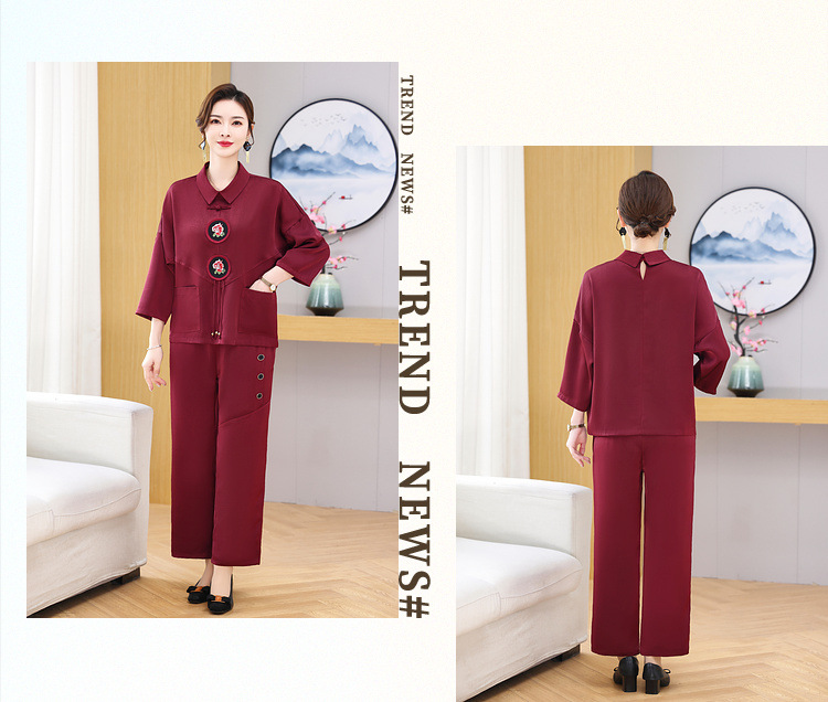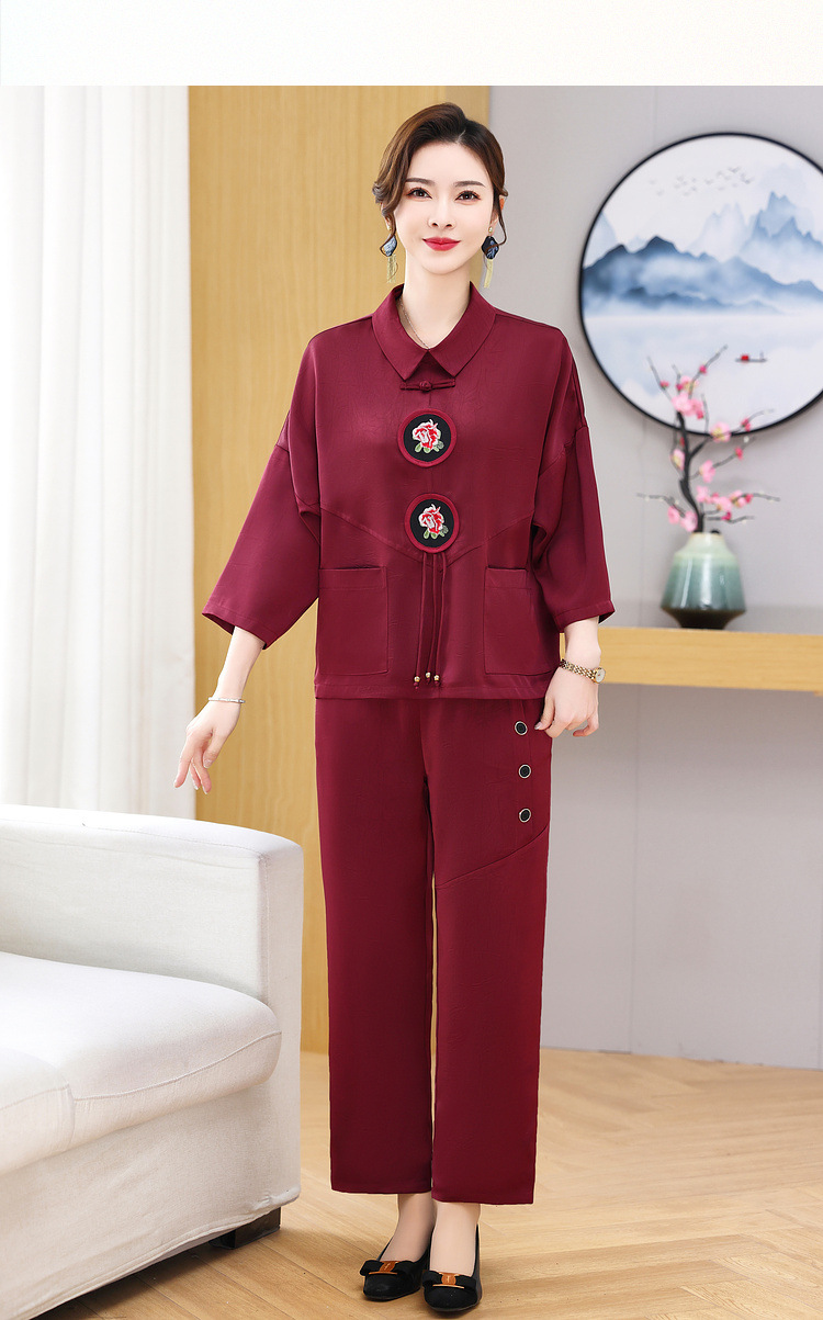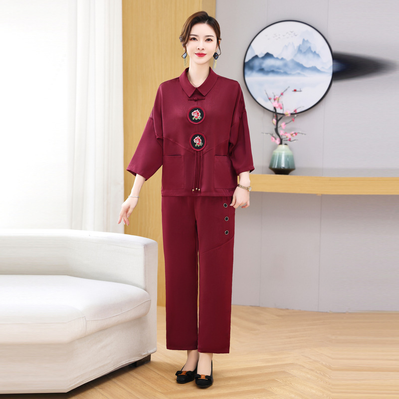 중국 스타일 버클 탑 여성 엄마의 옷 여름 유행 서양식 탕 세트 중년 및 노인 할머니 탕 세트 세트 투피스