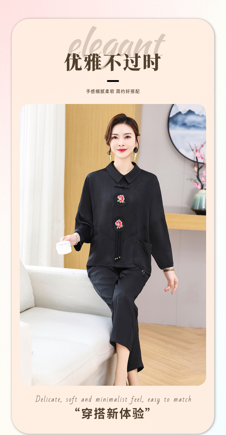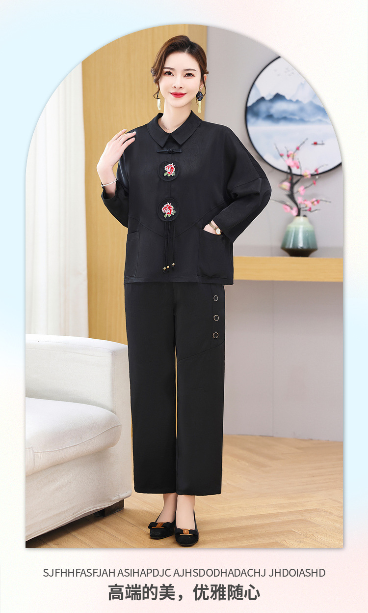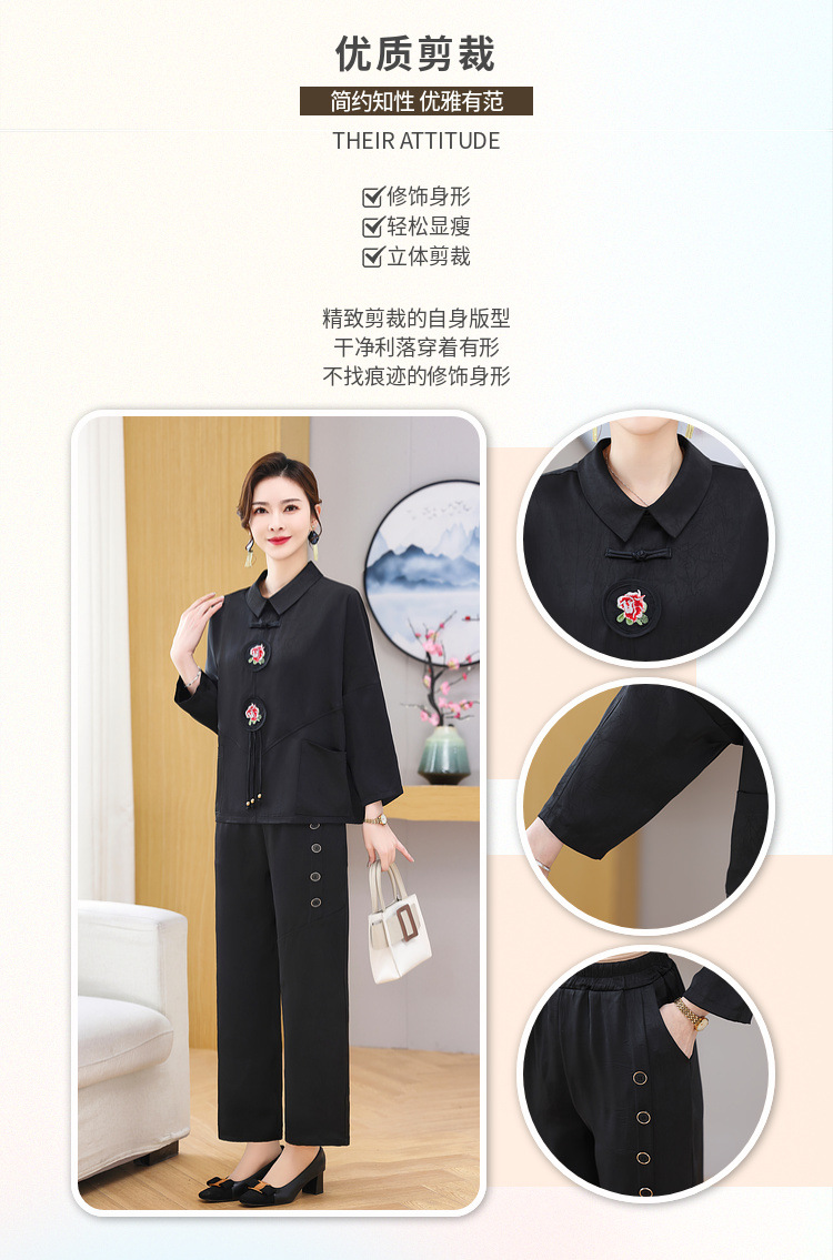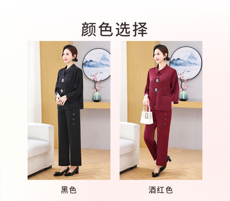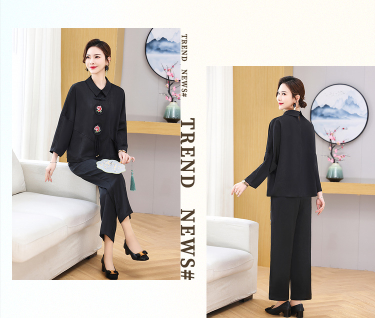 중국 스타일 버클 탑 여성 엄마의 옷 여름 유행 서양식 탕 세트 중년 및 노인 할머니 탕 세트 세트 투피스