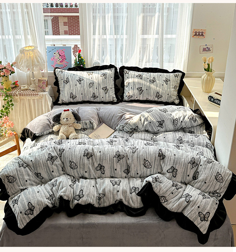 새로운 60 면화 4 피스면 4 피스 세트 넓은 테두리 퀼트 커버 침대 시트 작은 신선한 Nantong 홈 섬유 도매