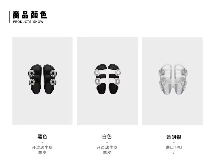 즉시 배송! 패셔너블하고 다재다능한 신상 사각 버클 큐빅 가죽 이중 스트랩 캐주얼 두꺼운 밑창 슬리퍼 여성용 샌들 외출용스토어 가기