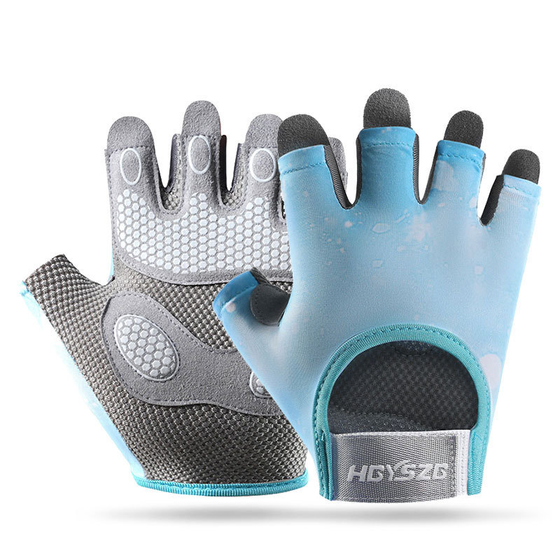 스포츠 및 피트니스 하프 핑거 장갑 내마모성 팜 패드 실리콘 충격 흡수 팜 보호 장비 요가 통기성 로프 건너 뛰는 장갑스토어 가기