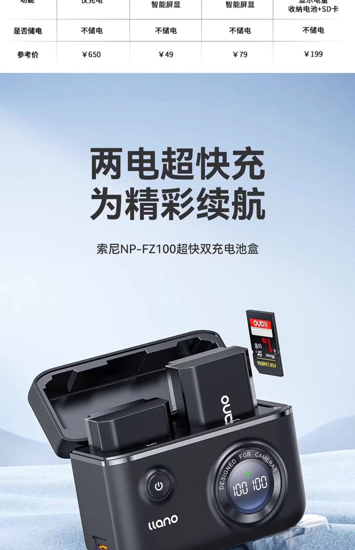 Lvjneng NP-FZ100 카메라 배터리 빠른 충전 저장 상자 a7m4 a 7m3 A7c A7R3 A7R4 7RM3스토어 가기