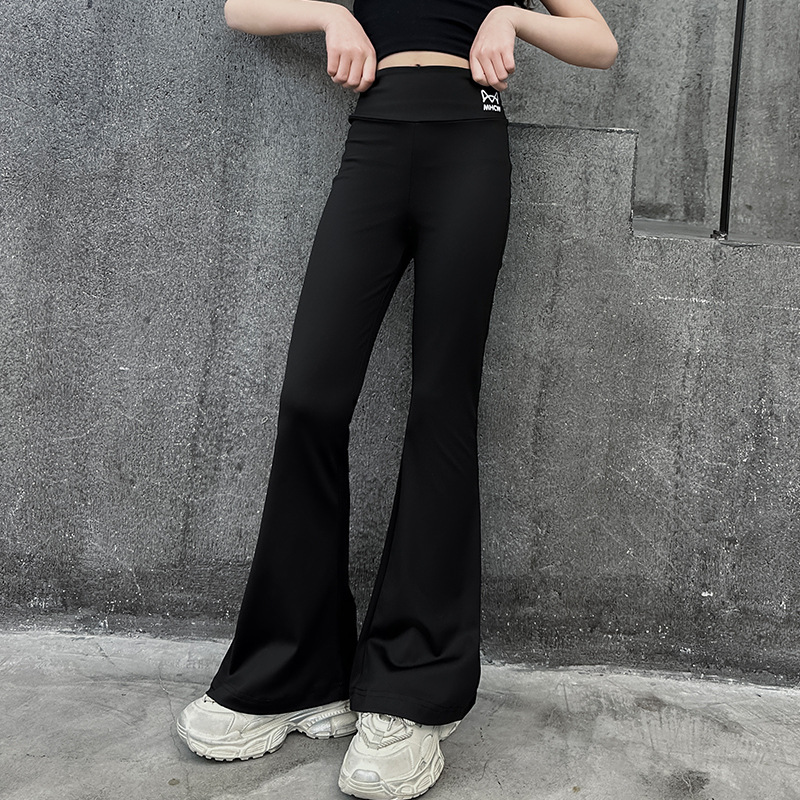 소녀 바지 봄과 가을 2024 새로운 어린이 요가 바지 스키니 상어 바지 검은 소녀 패션 플레어 바지