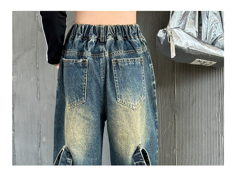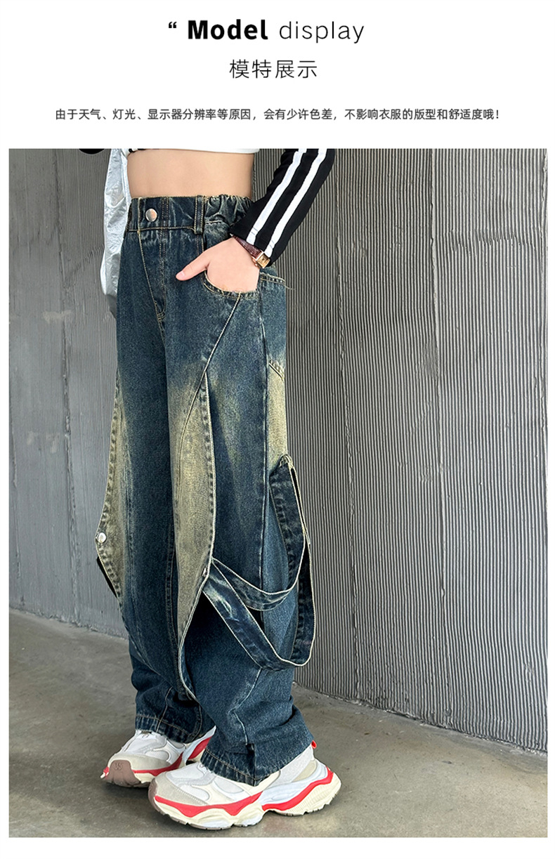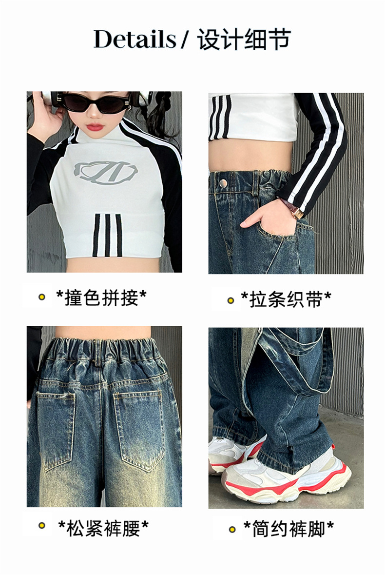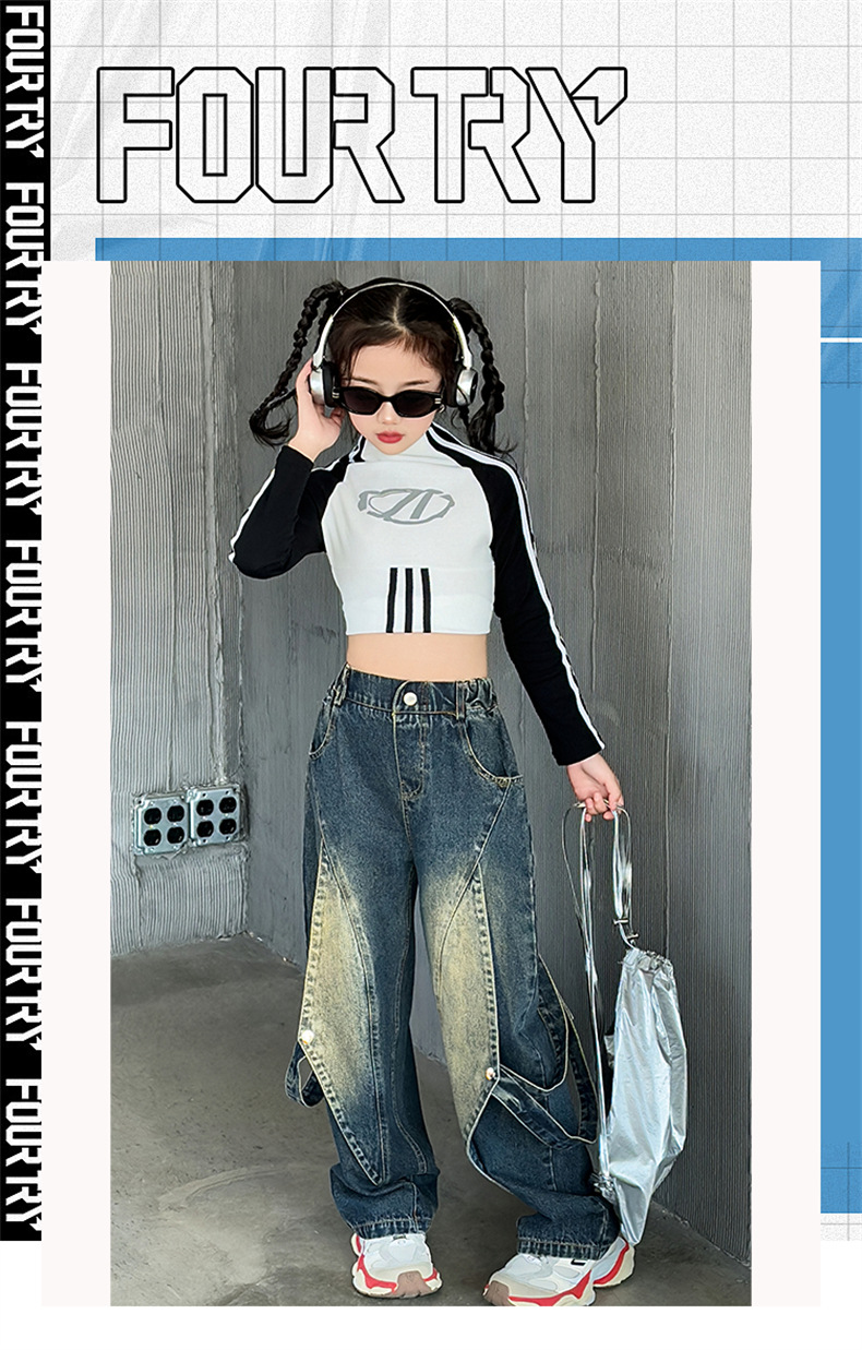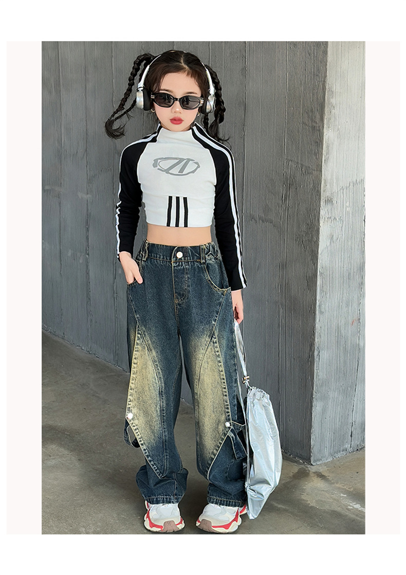 한국 유행 아동복 여자 힙합 세트 2024 새로운 스타일 소녀 봄 가을 드레스 청바지 유행 어린이 봄 착용스토어 가기