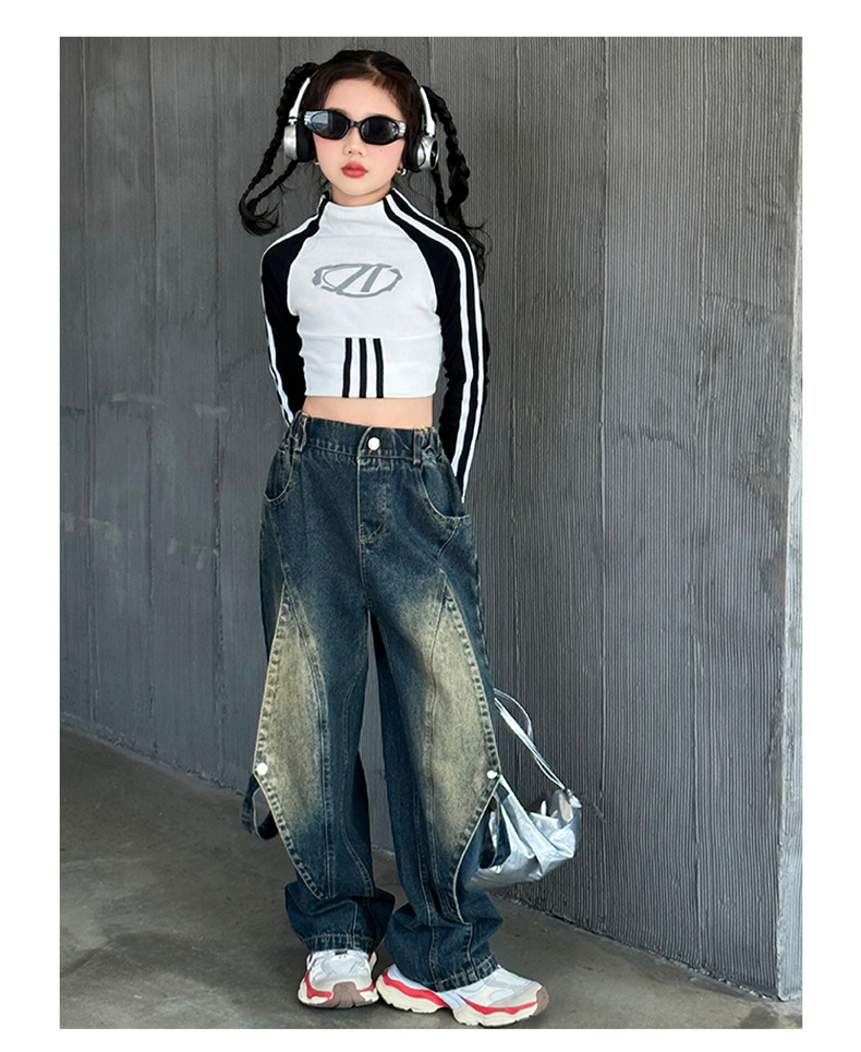 한국 유행 아동복 여자 힙합 세트 2024 새로운 스타일 소녀 봄 가을 드레스 청바지 유행 어린이 봄 착용