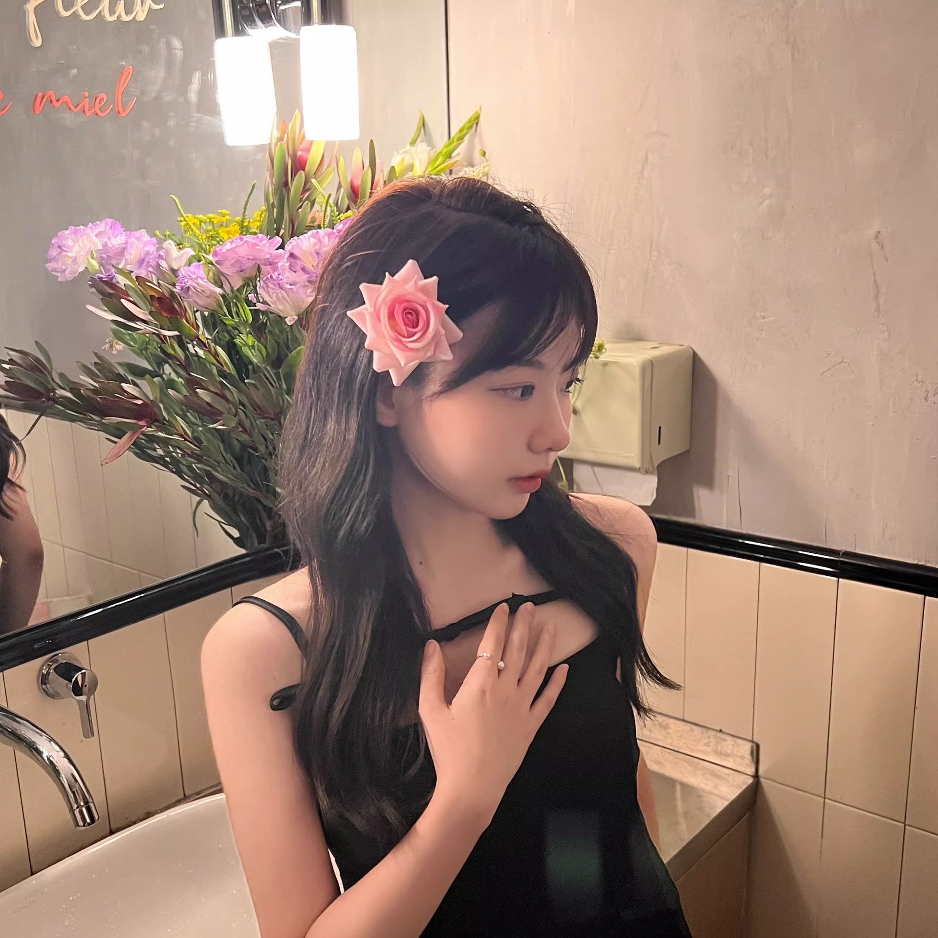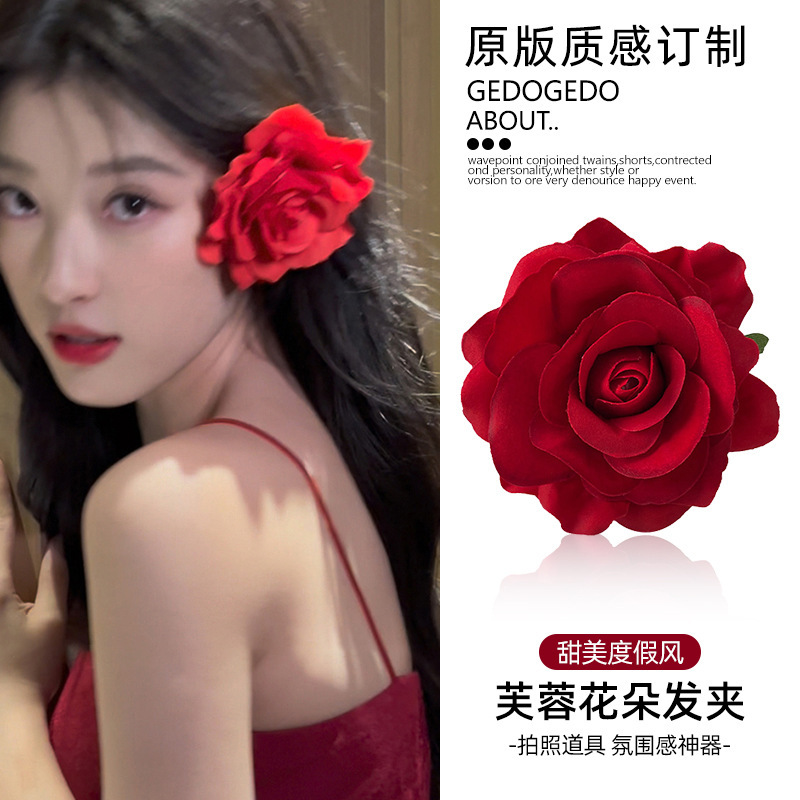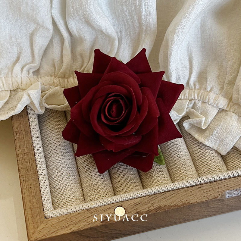 Tian Xiwei 같은 스타일의 빨간 장미 머리핀 프랑스 복고풍 꽃 머리핀 사이드 덕빌 클립 머리 장식 헤어 액세서리스토어 가기