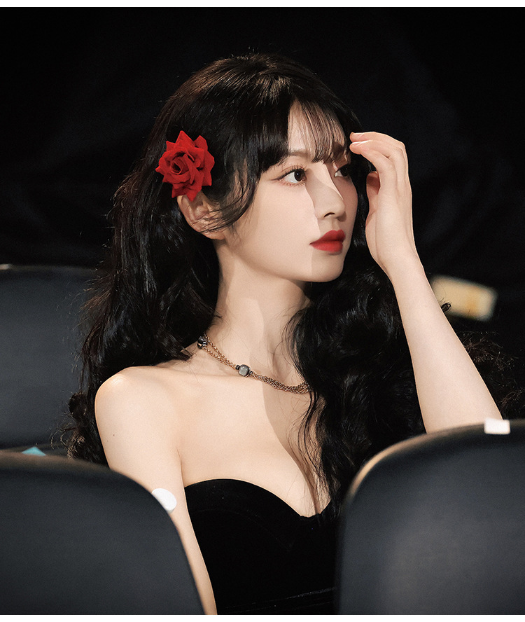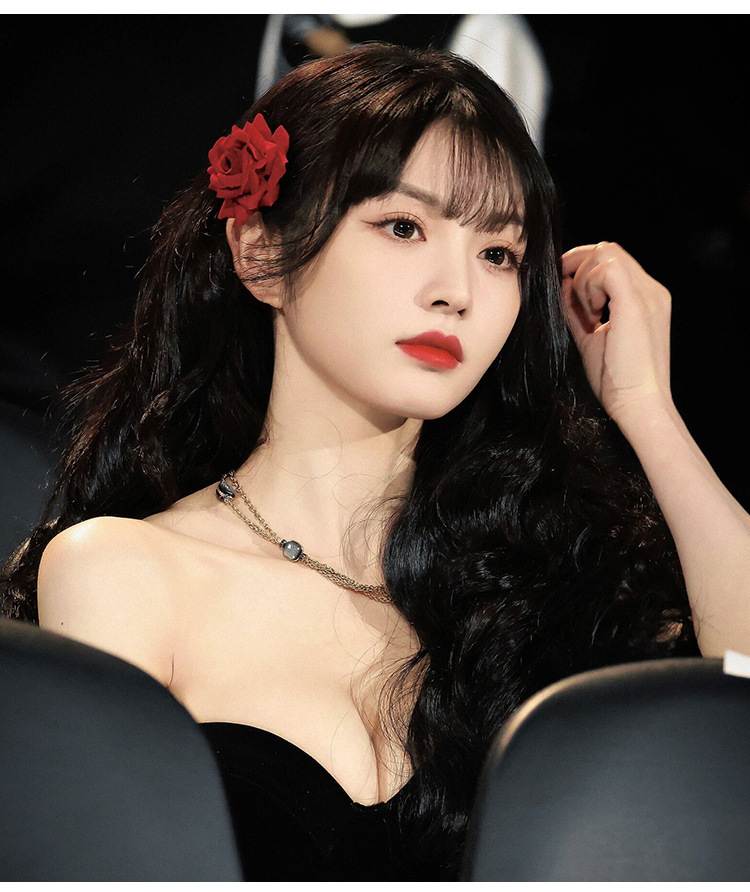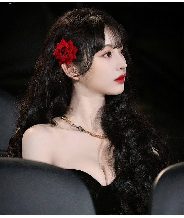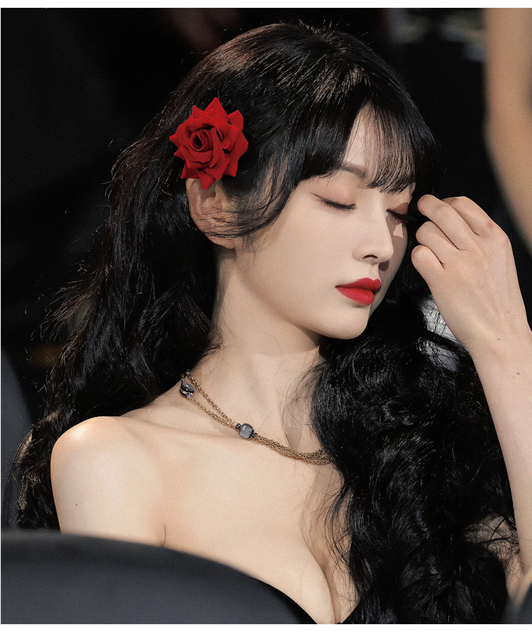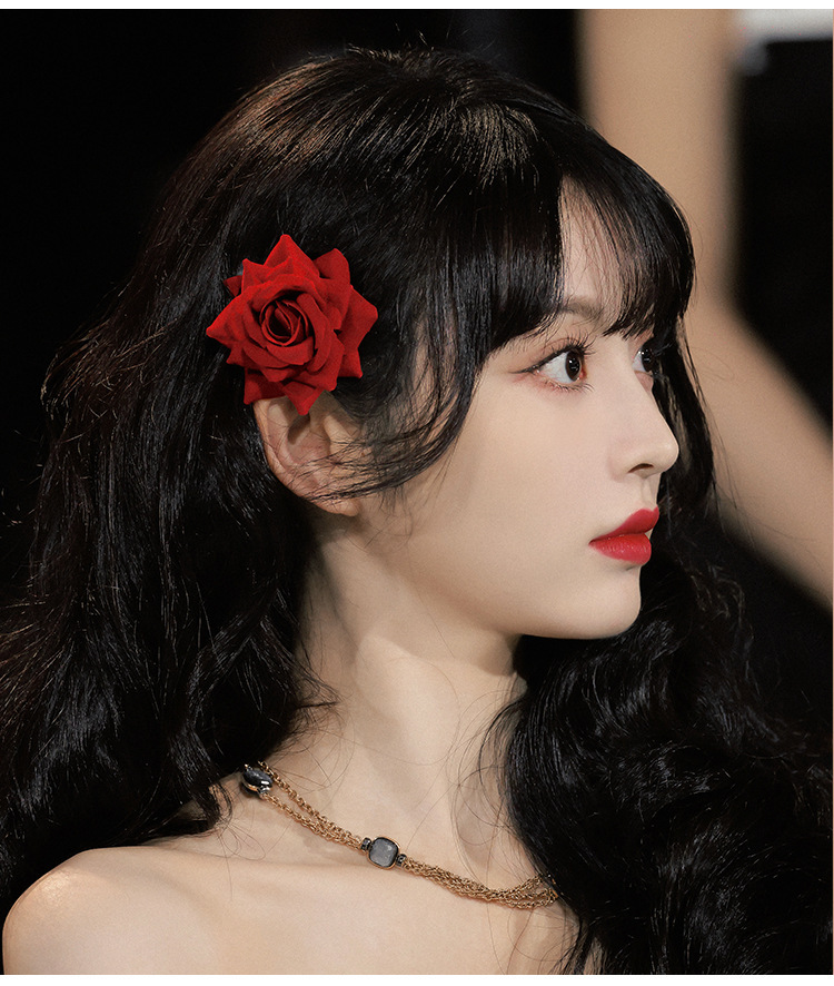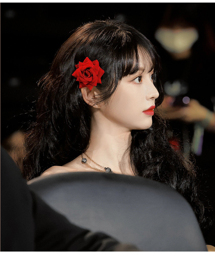 Tian Xiwei 같은 스타일의 빨간 장미 머리핀 프랑스 복고풍 꽃 머리핀 사이드 덕빌 클립 머리 장식 헤어 액세서리