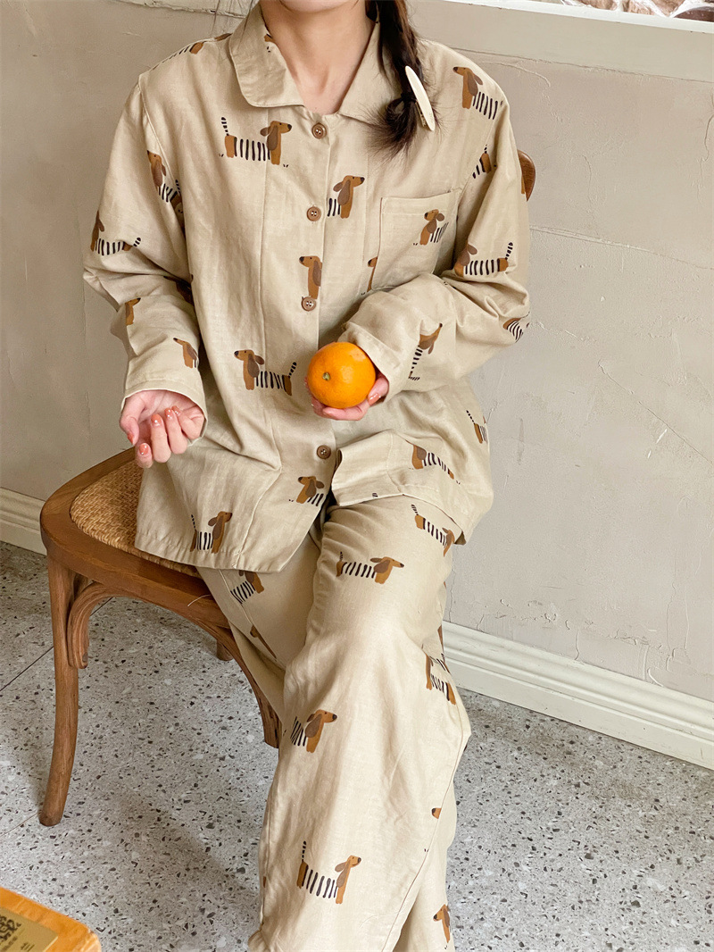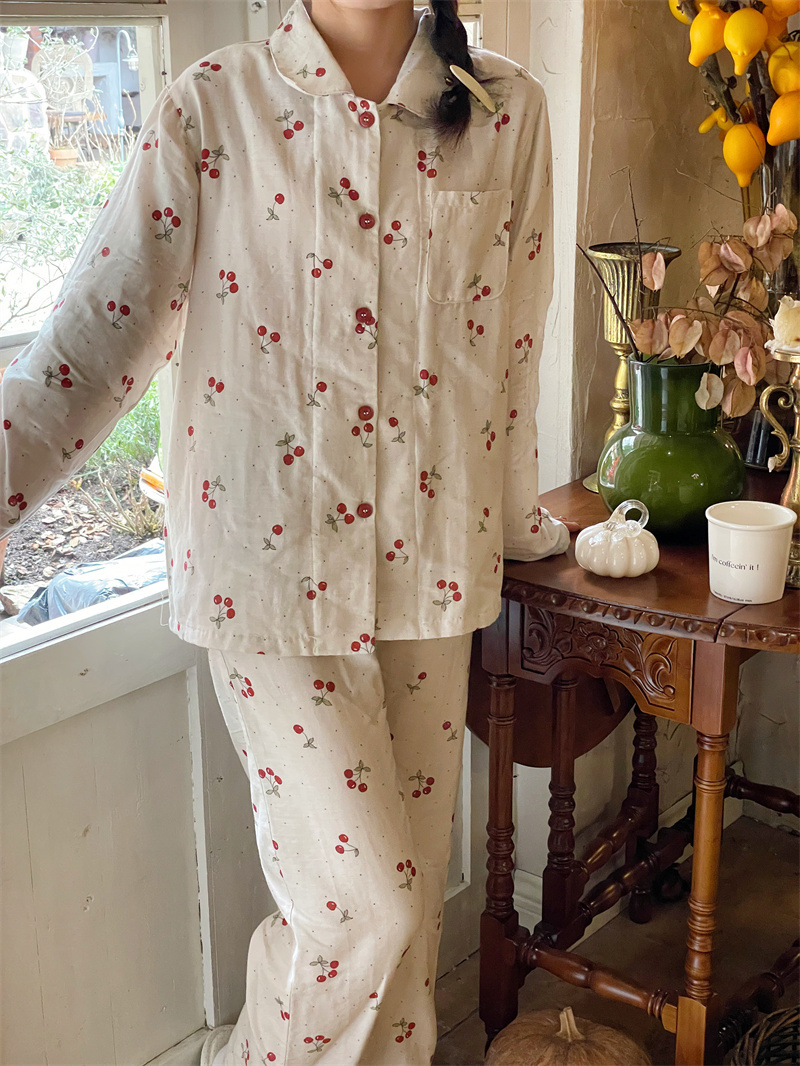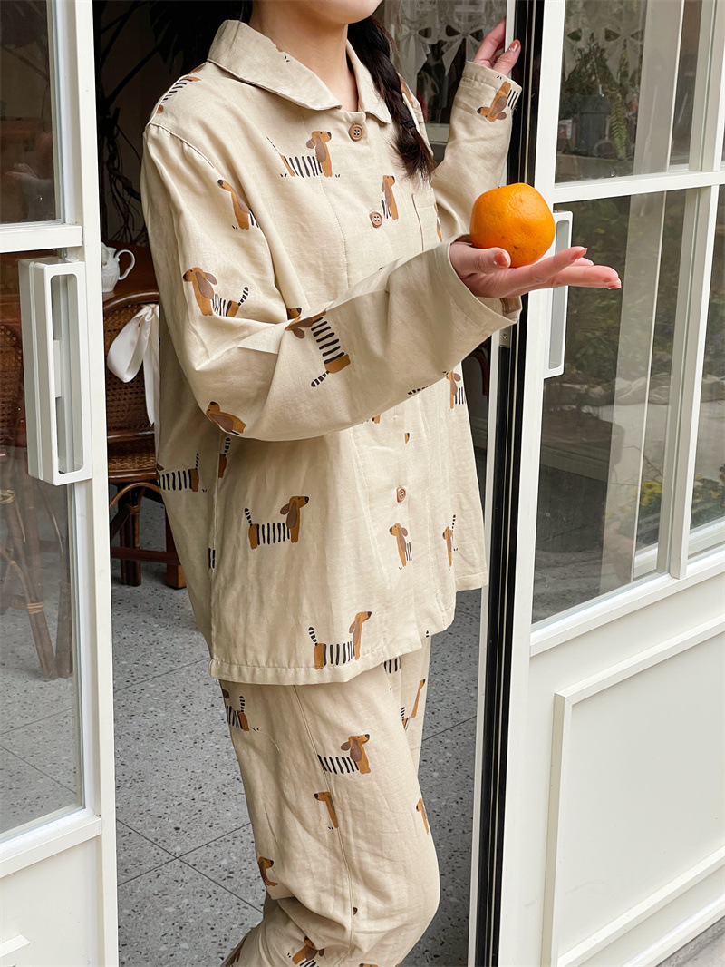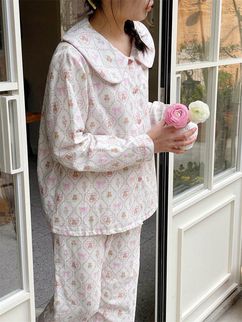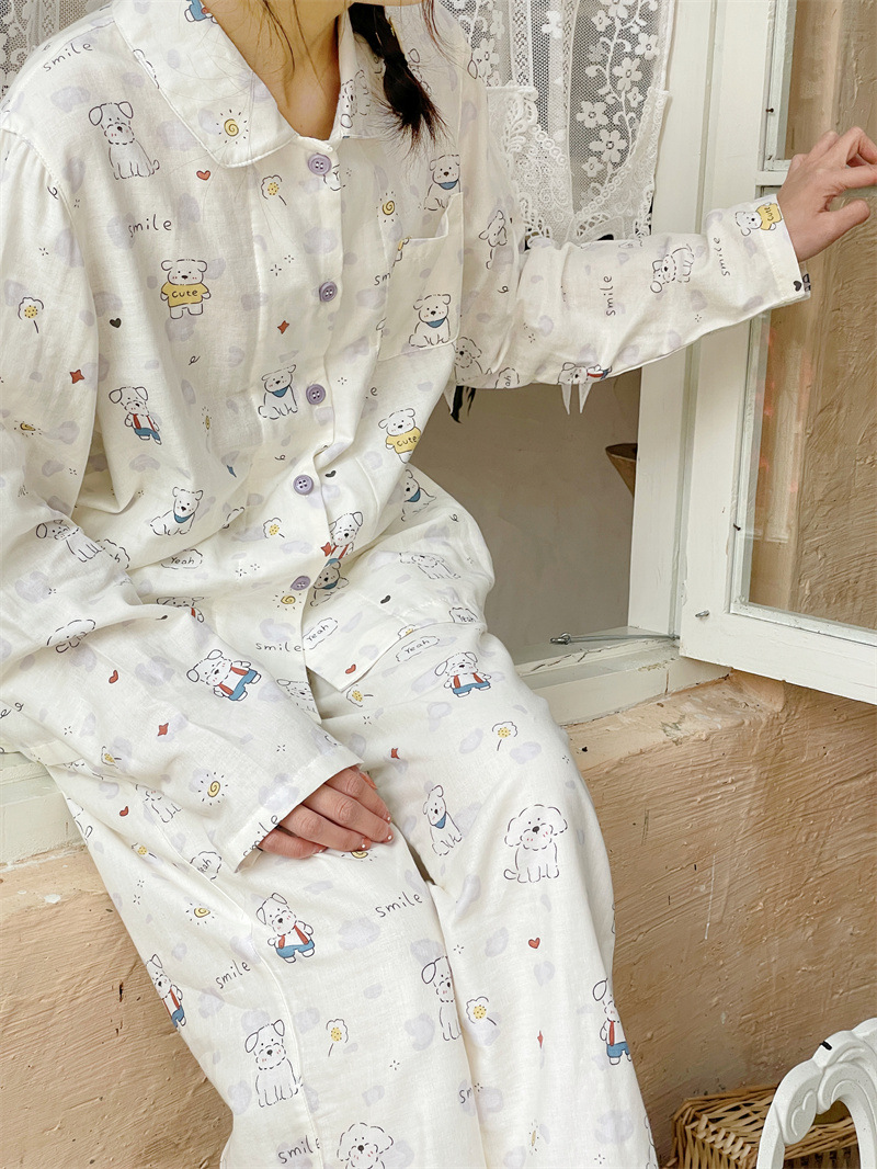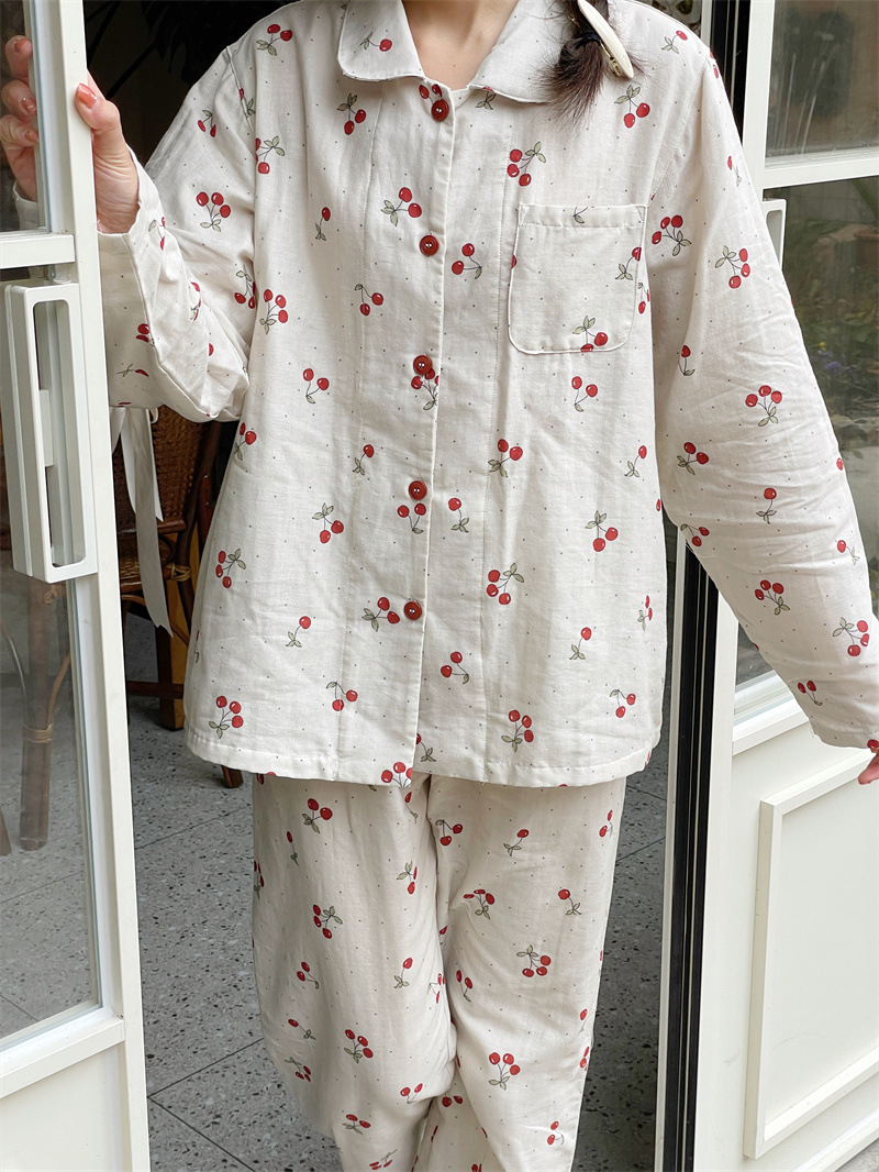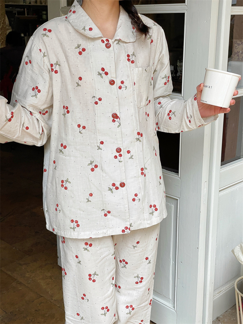 24 잠옷 홈 착용 작은 옷깃 여성용 스타일 간단한 순면 더블 레이어 원사 통기성 홈 착용 공장 직접 공급스토어 가기