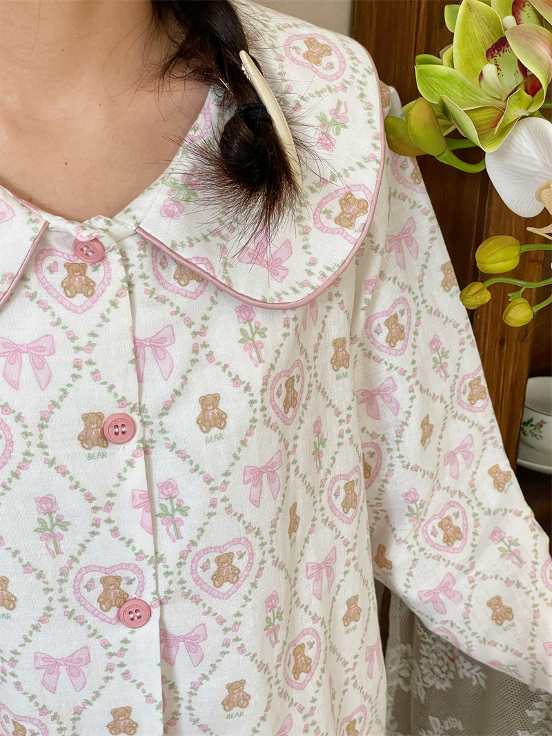 24 잠옷 홈 착용 작은 옷깃 여성용 스타일 간단한 순면 더블 레이어 원사 통기성 홈 착용 공장 직접 공급