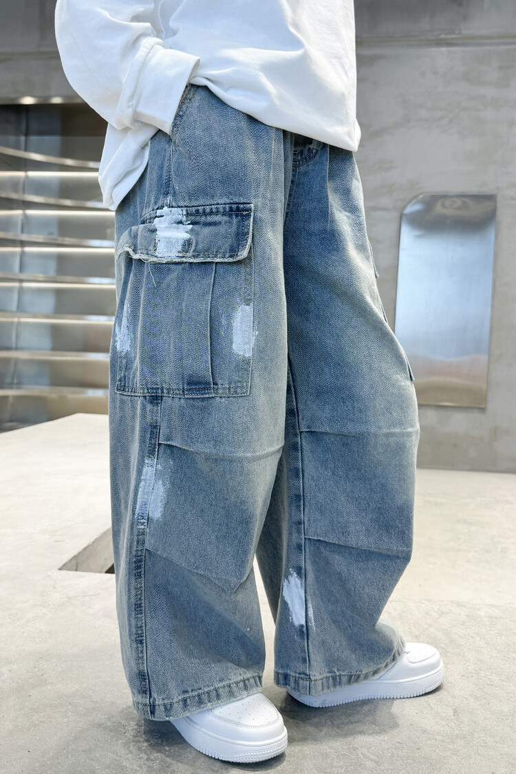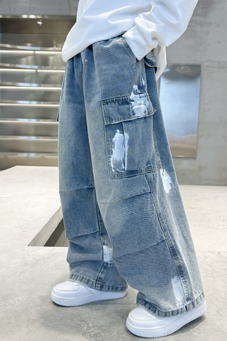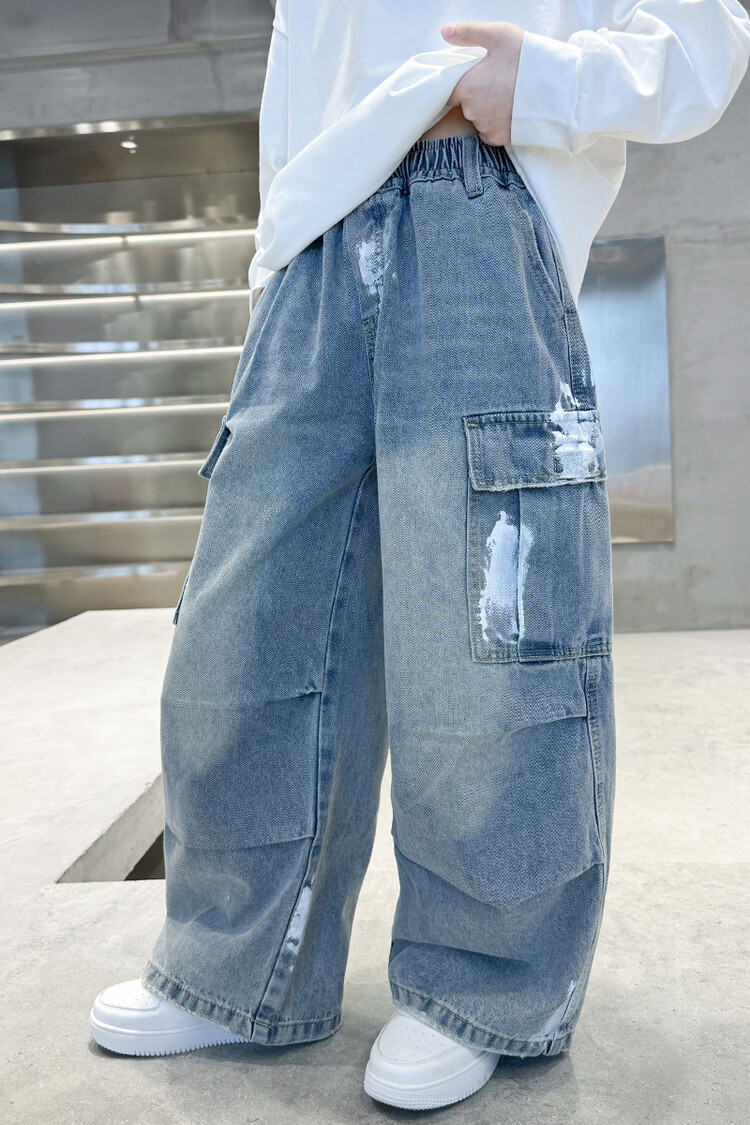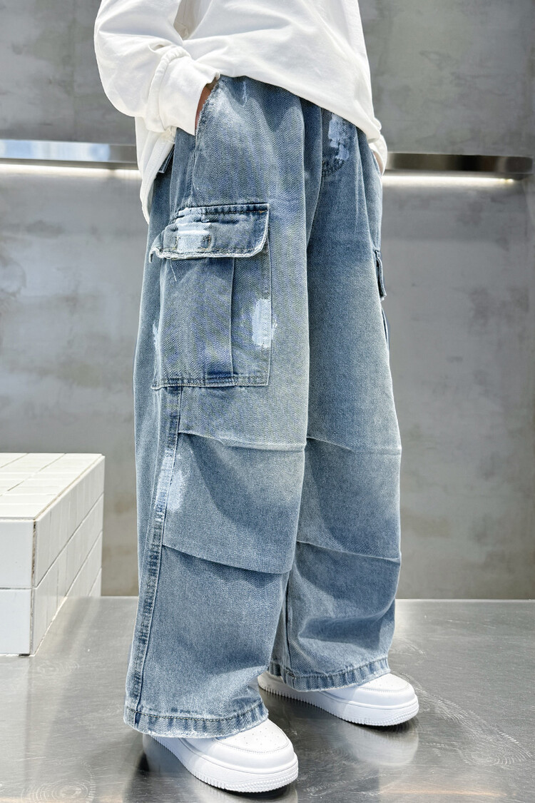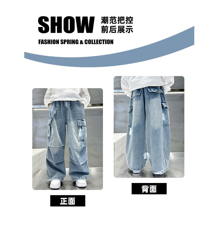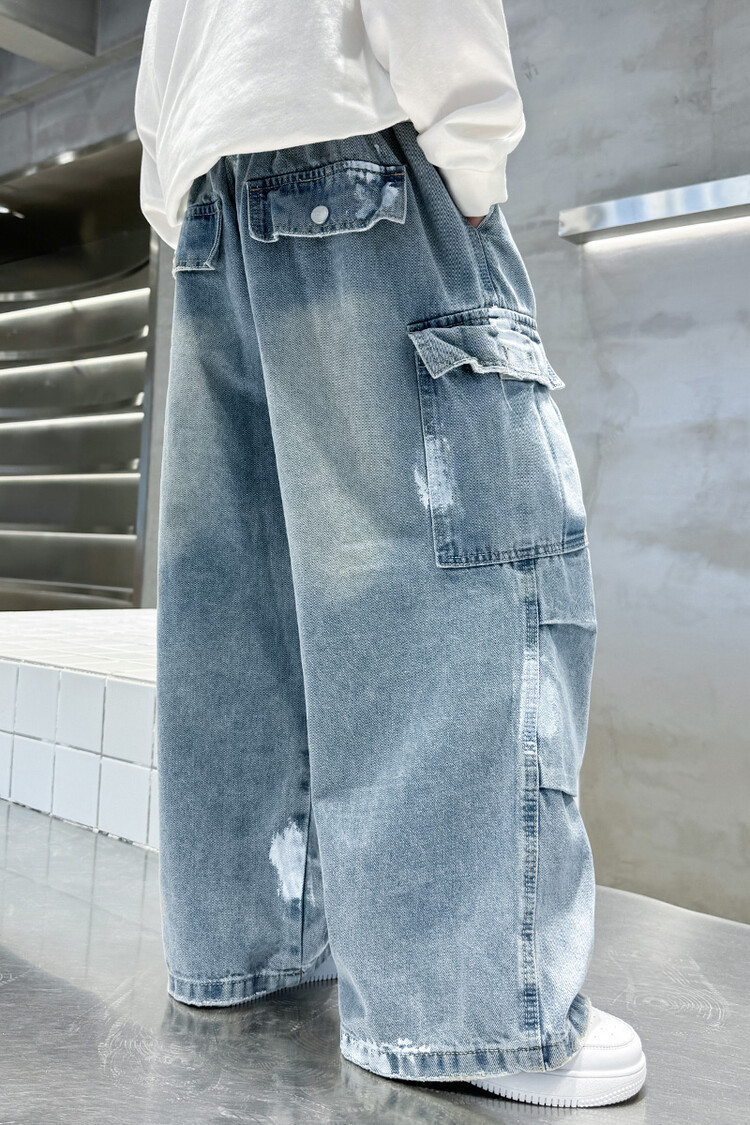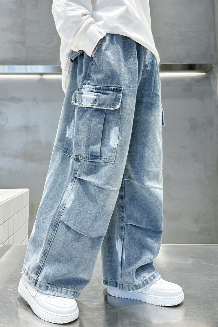 한국 스타일의 세련된 어린이 바지 도매 소년 청바지 느슨한 유행 넓은 다리 바지 중 큰 어린이 힙합 바지 국경스토어 가기