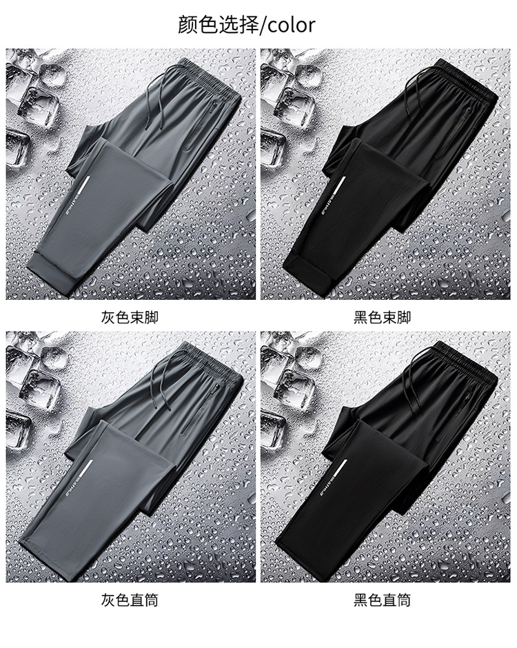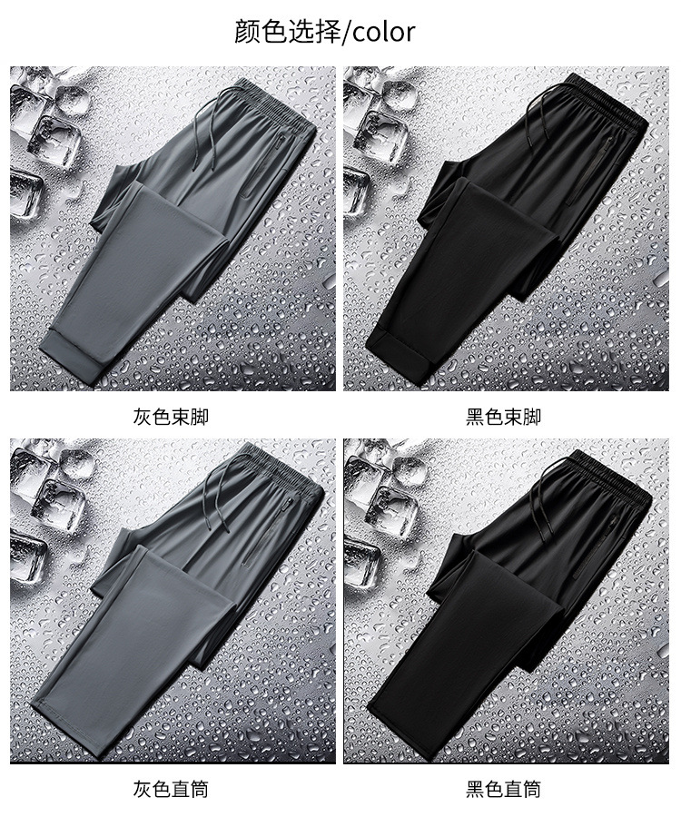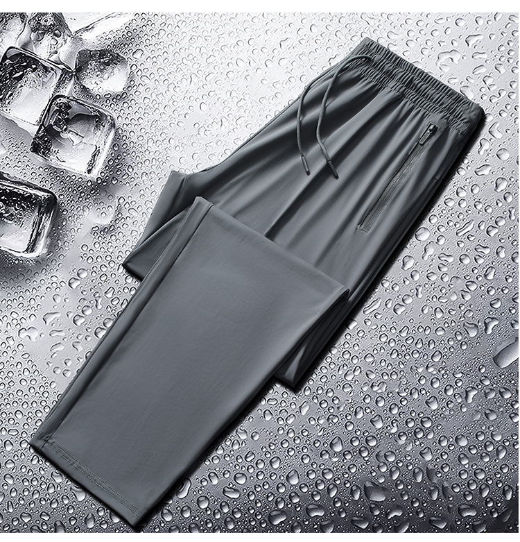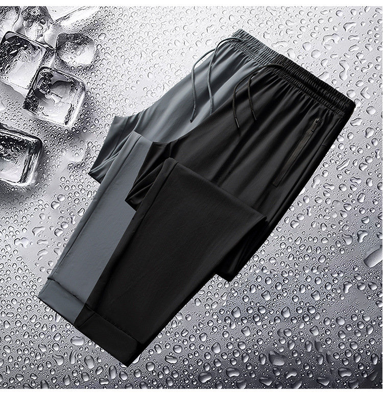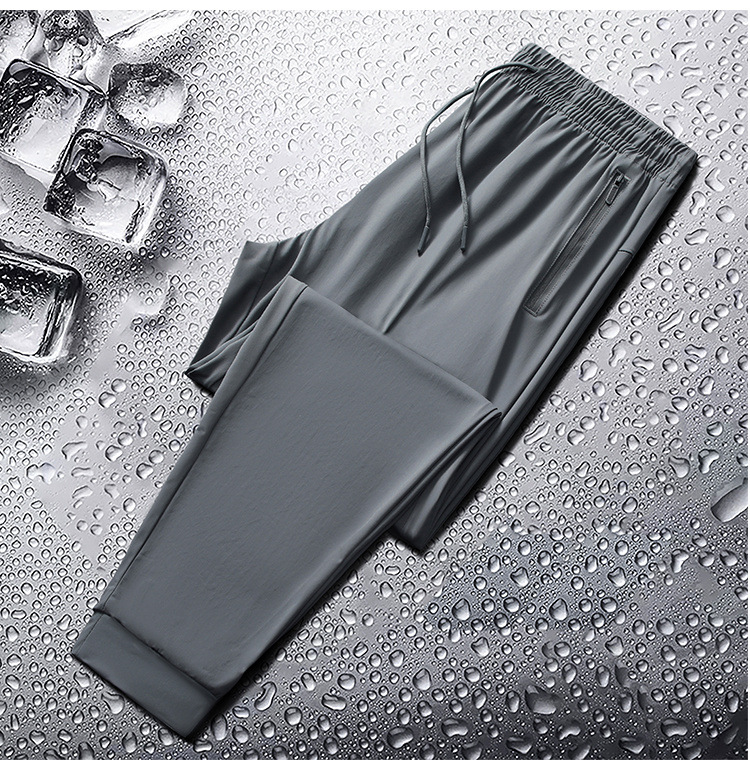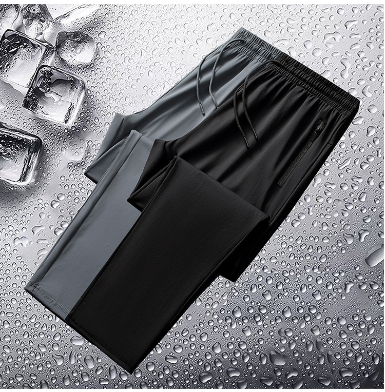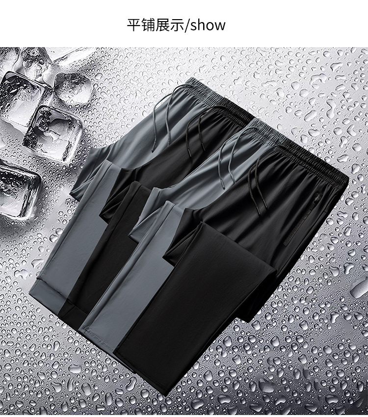 아이스 실크 바지 남성 여름 3 방증 스포츠 캐주얼 바지 플러스 사이즈 빠른 건조 스트레이트 단색 얇은 바지 남성