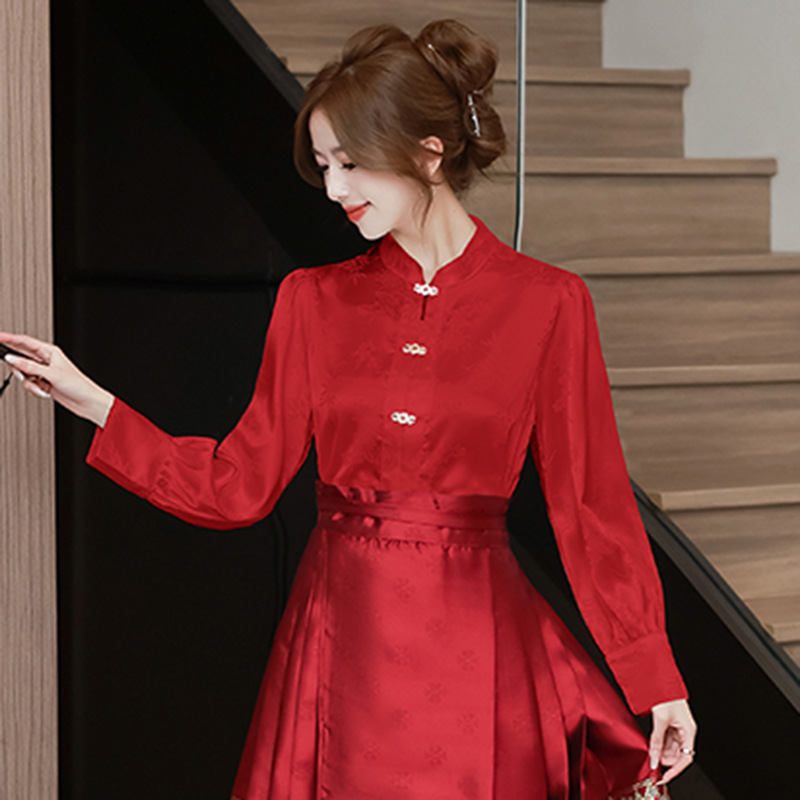 • 긴 빨간 치마 + 5725 정사이즈 탑