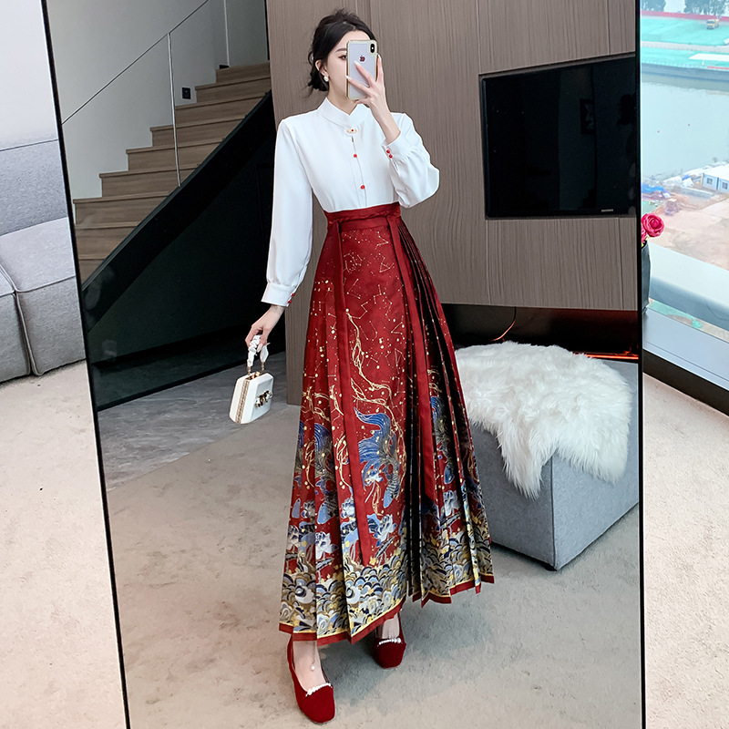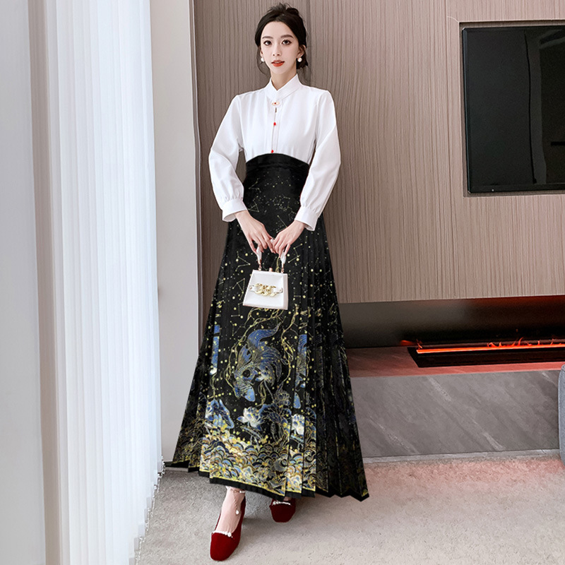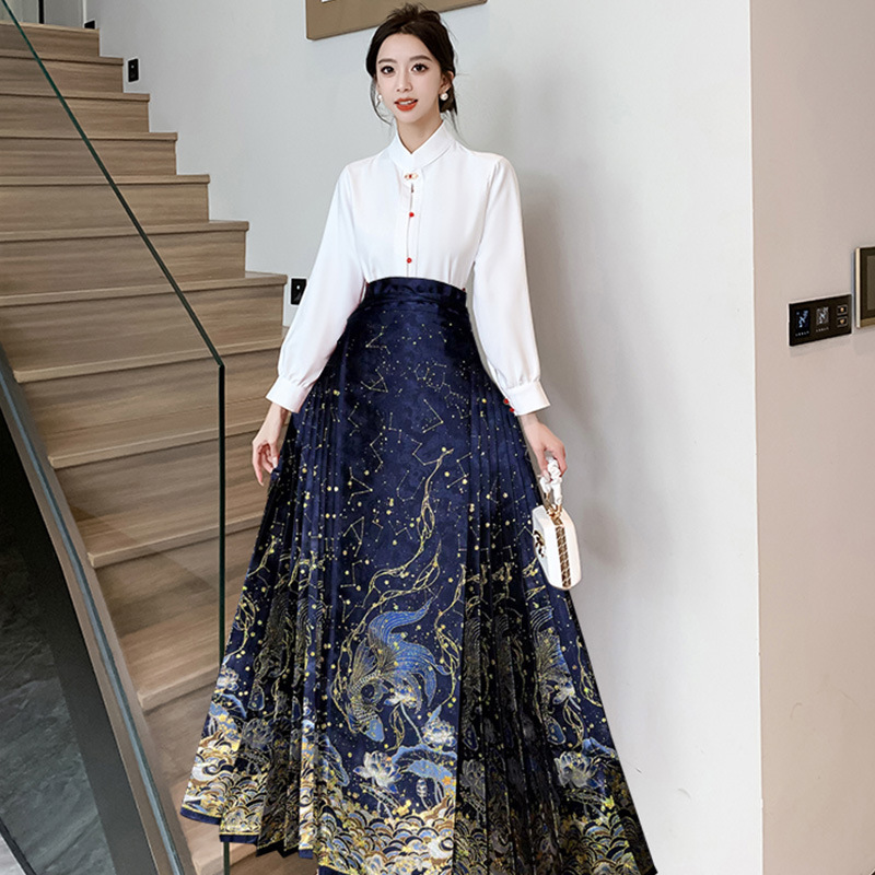 판타지 스타 리버 조끼 스커트 중국 스타일 새로운 중국 스타일 짧은 고급 슬리밍 투피스 캐주얼 세트 여성