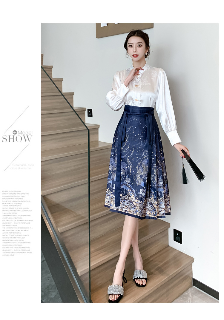 판타지 스타 리버 조끼 스커트 중국 스타일 새로운 중국 스타일 짧은 고급 슬리밍 투피스 캐주얼 세트 여성스토어 가기