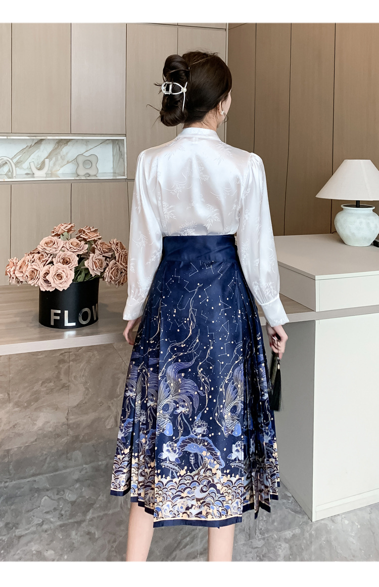 • 긴 파란색 스커트 + 5725 정사이즈 탑