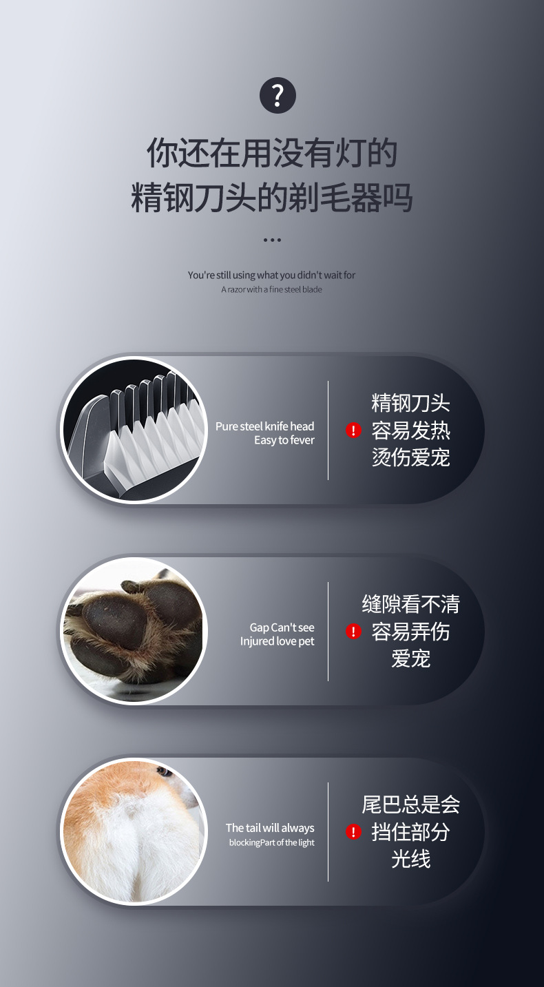 产品配件:包装盒、说明书、1个限位梳、一根USB线、一瓶润滑油(出口不要请留言)、一支清洁刷