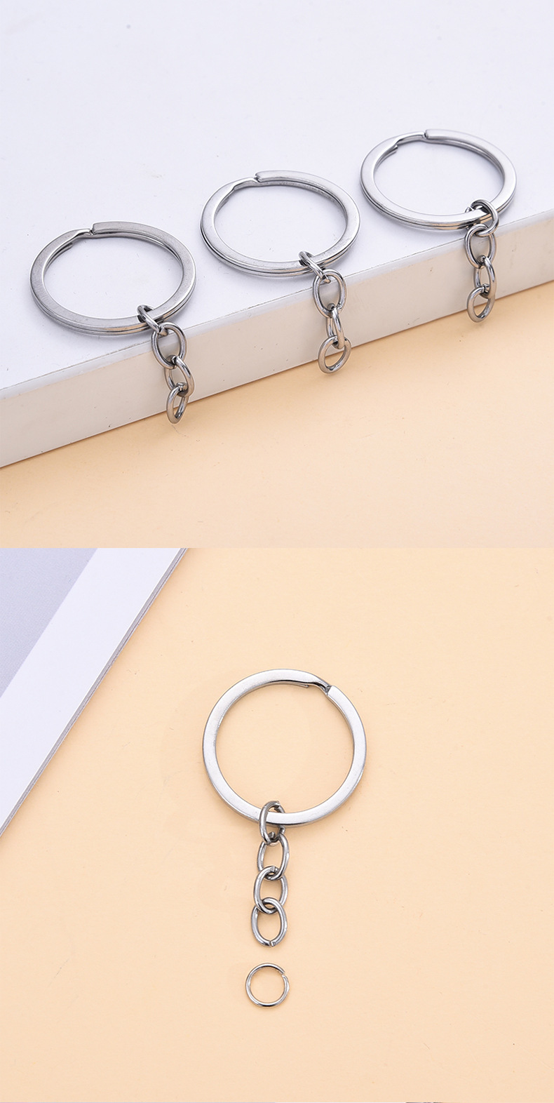 공장 도매 금속 열쇠 고리 체인 평면 반지 만화 인형 열쇠 고리 액세서리 키 체인 diy