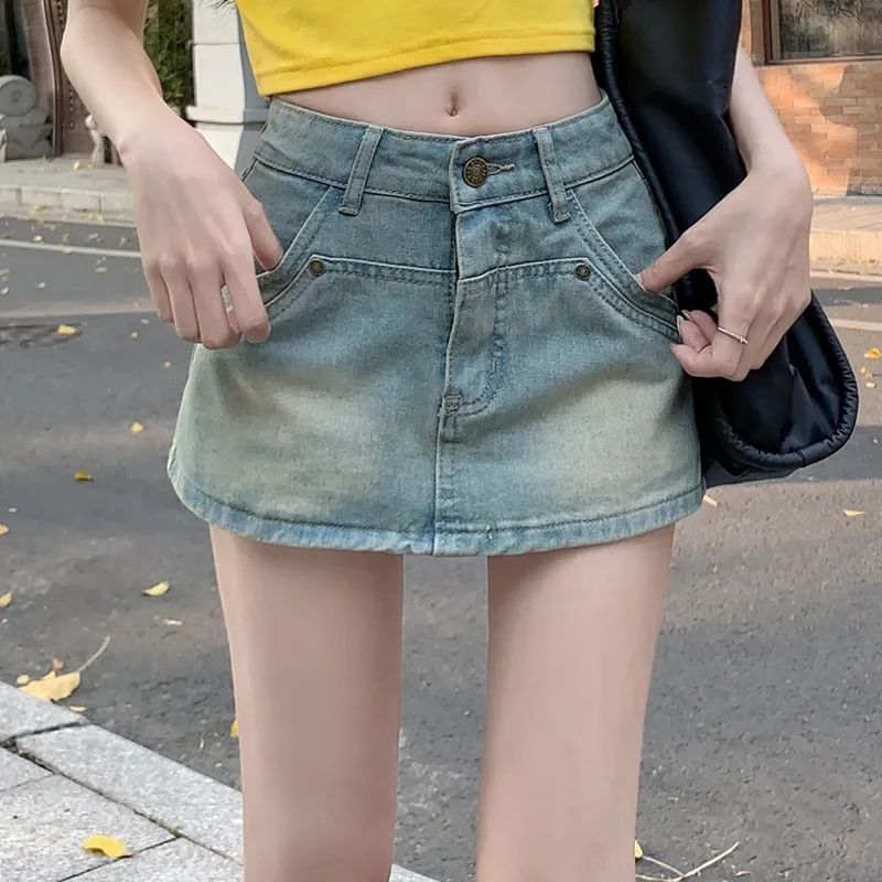 여성을위한 미국 복고풍 데님 스커트 바지 2025 봄, 여름 섹시한 짧은 치마 a 라인 스커트 핫 소녀 하이 웨이스트 힙 스커트