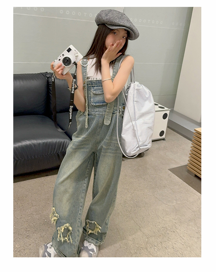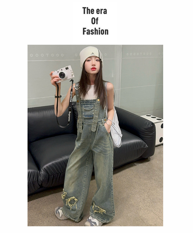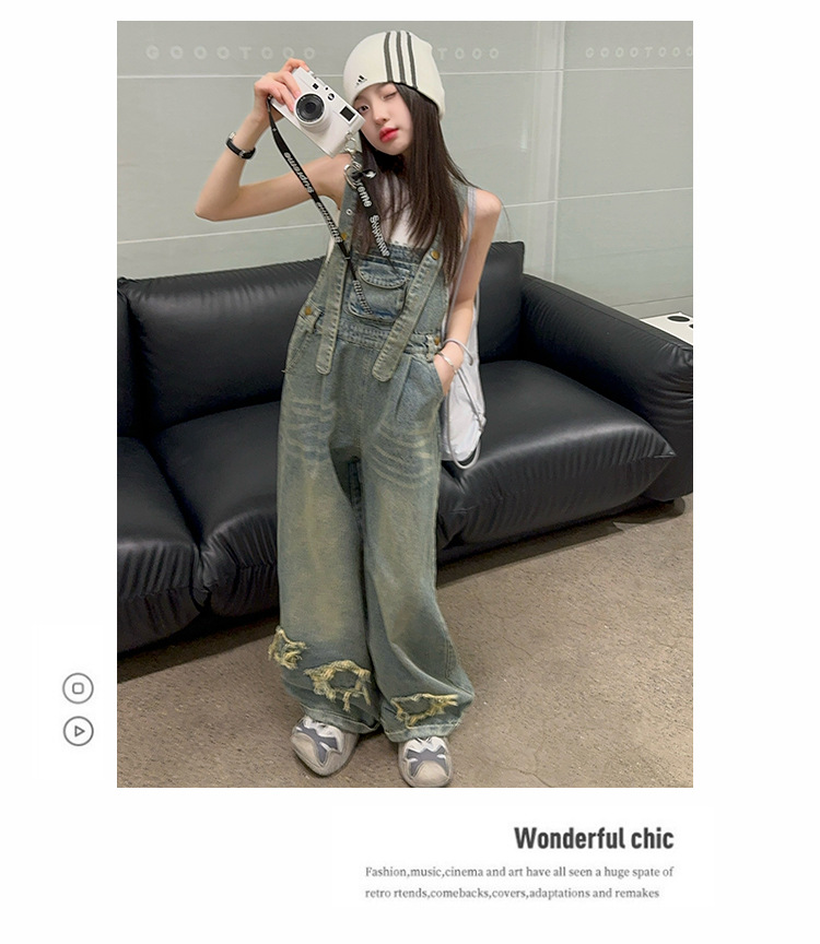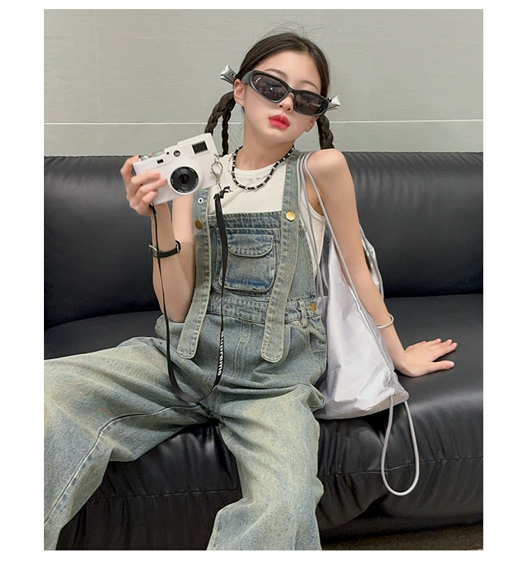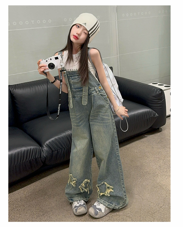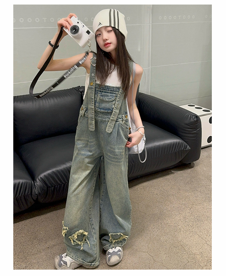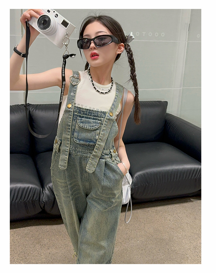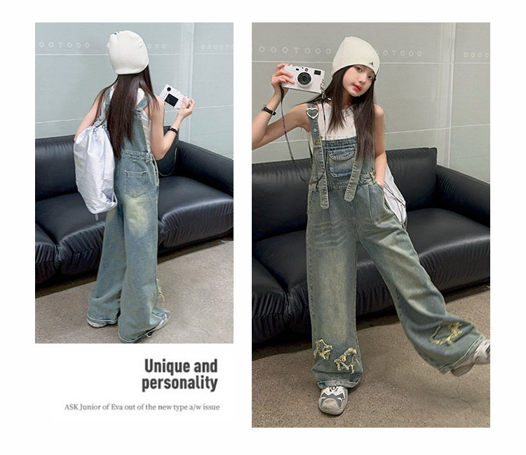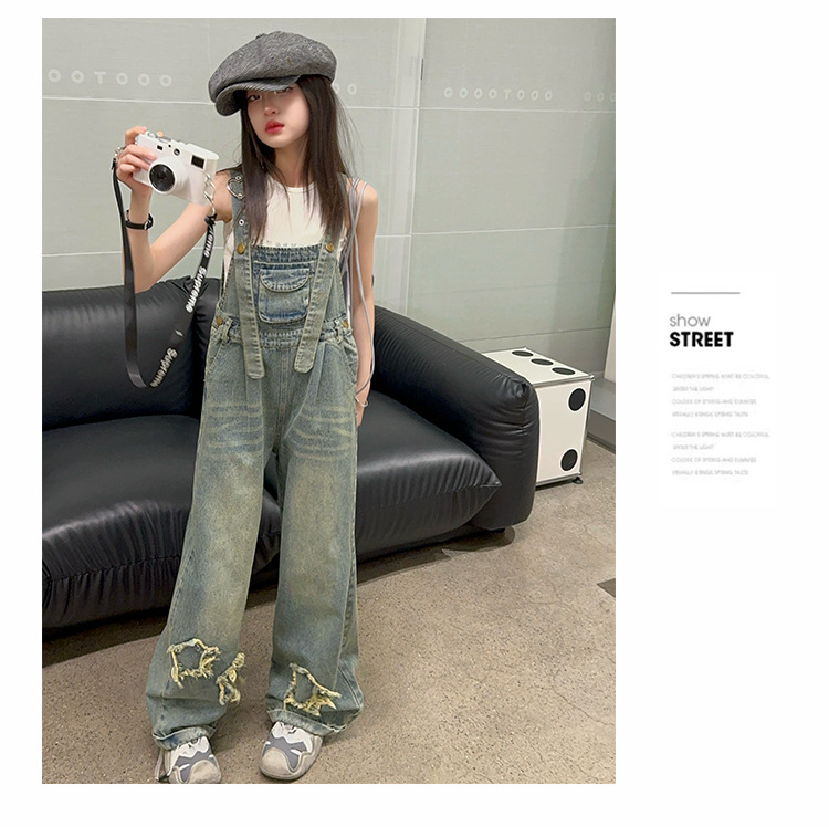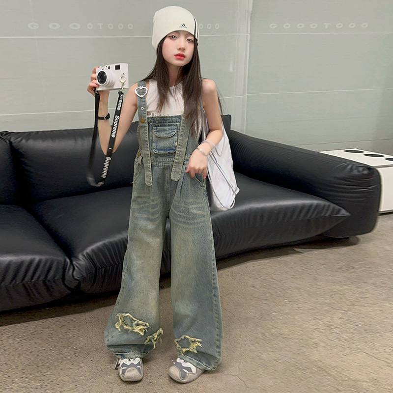 새 봄과 가을 의류 중형 및 대형 어린이 핑크 바지 패션 2024 소녀 한국식 데님 서스펜더 바지 도파민 세트스토어 가기