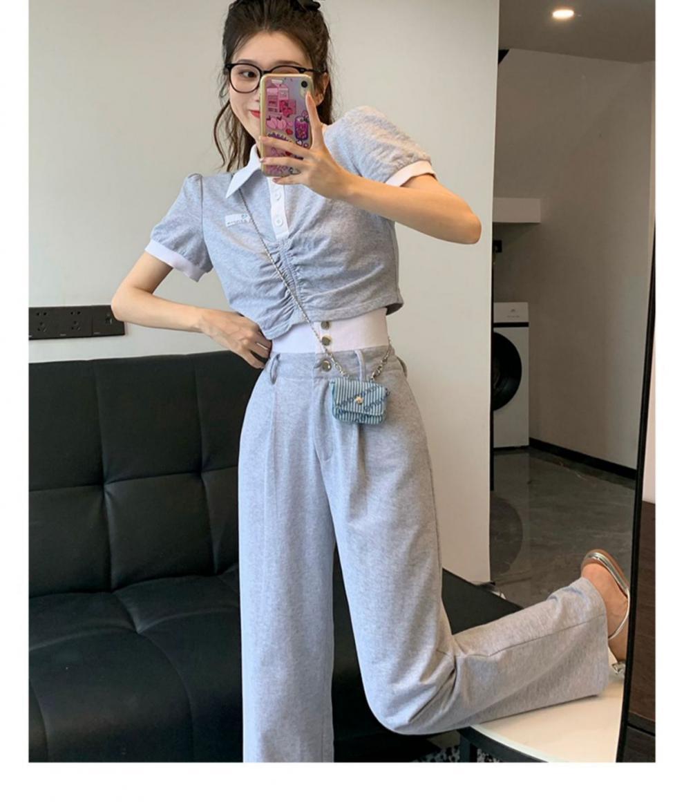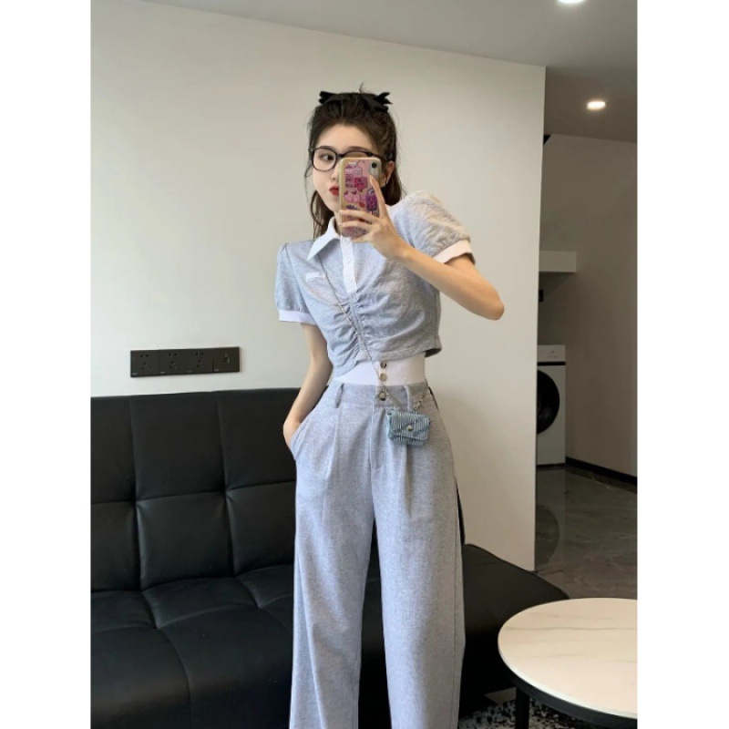캐주얼 패션 세트 여성 여름 2023 새로운 스타일의 소금 시리즈 착용 고급 와이드 레그 바지 투피스 세트스토어 가기