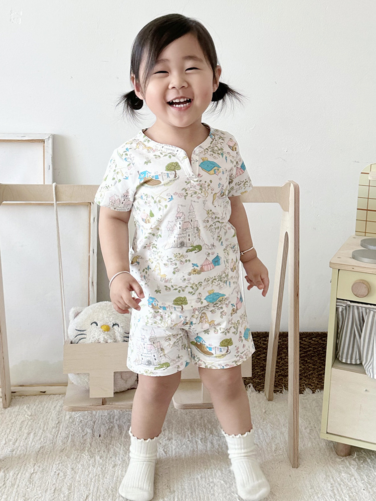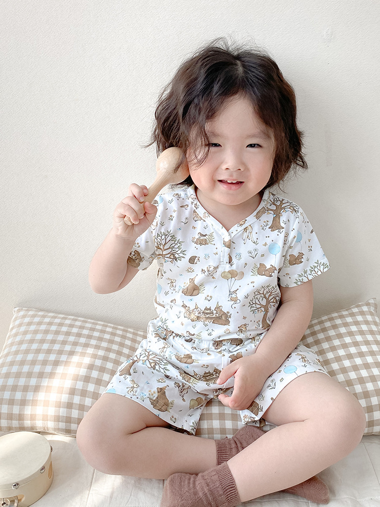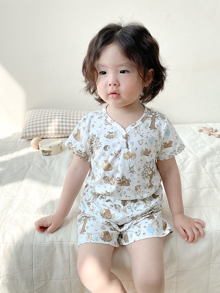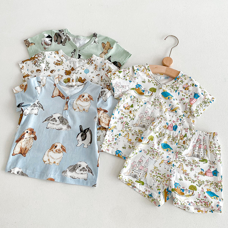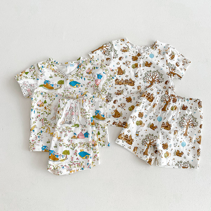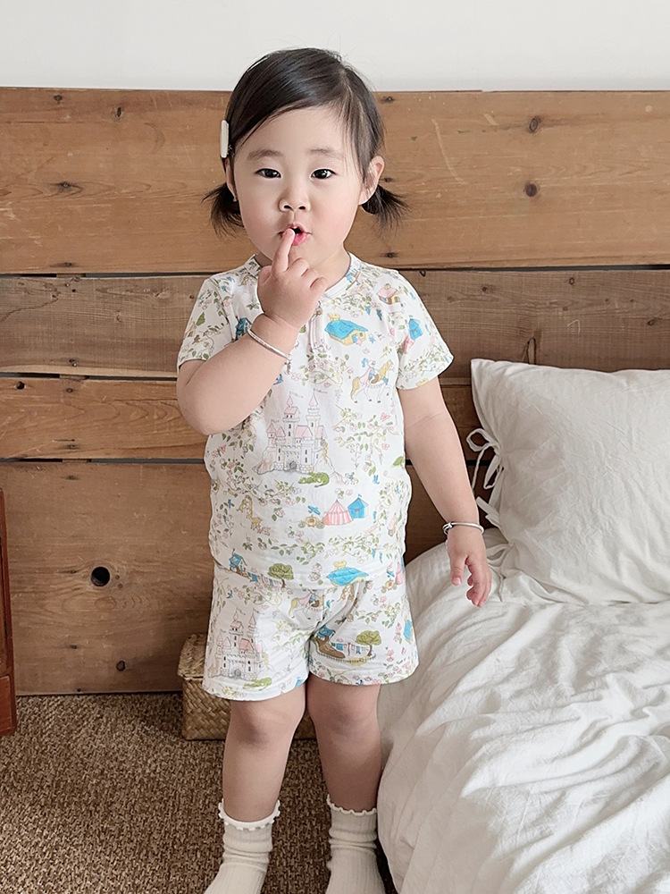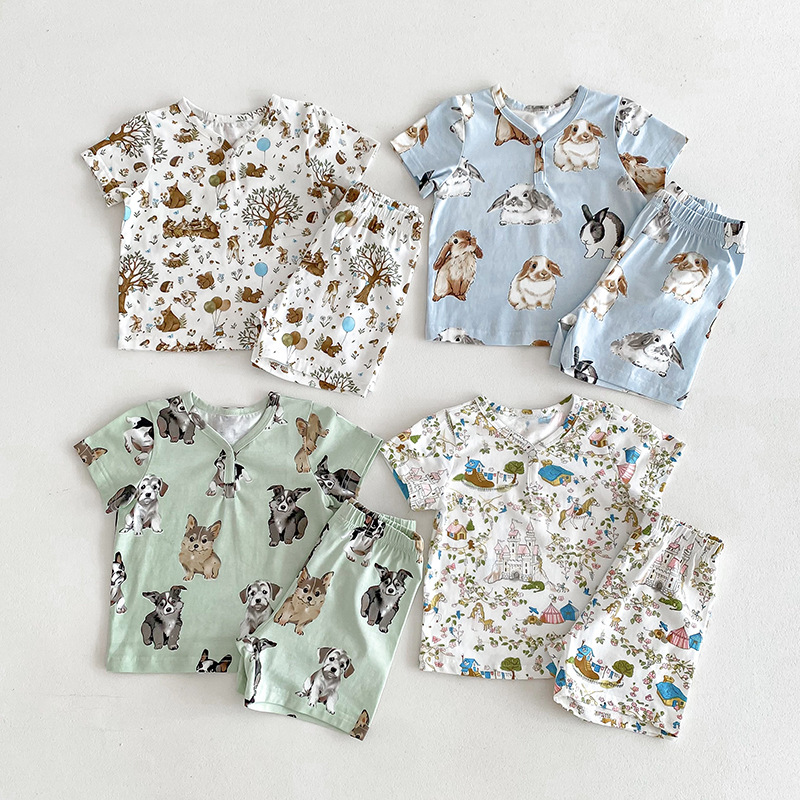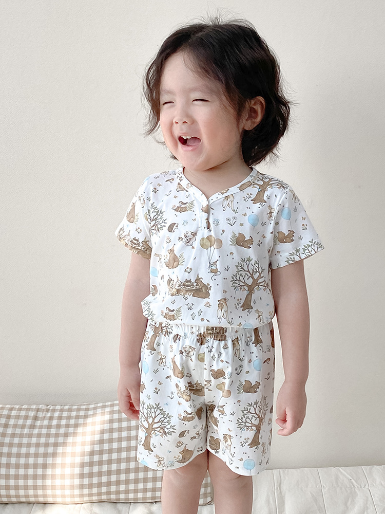 2025 여름 한국 아동복 남아 여아 잠옷 세트 A급 순면 아기 반팔 반바지 세트