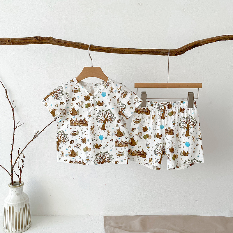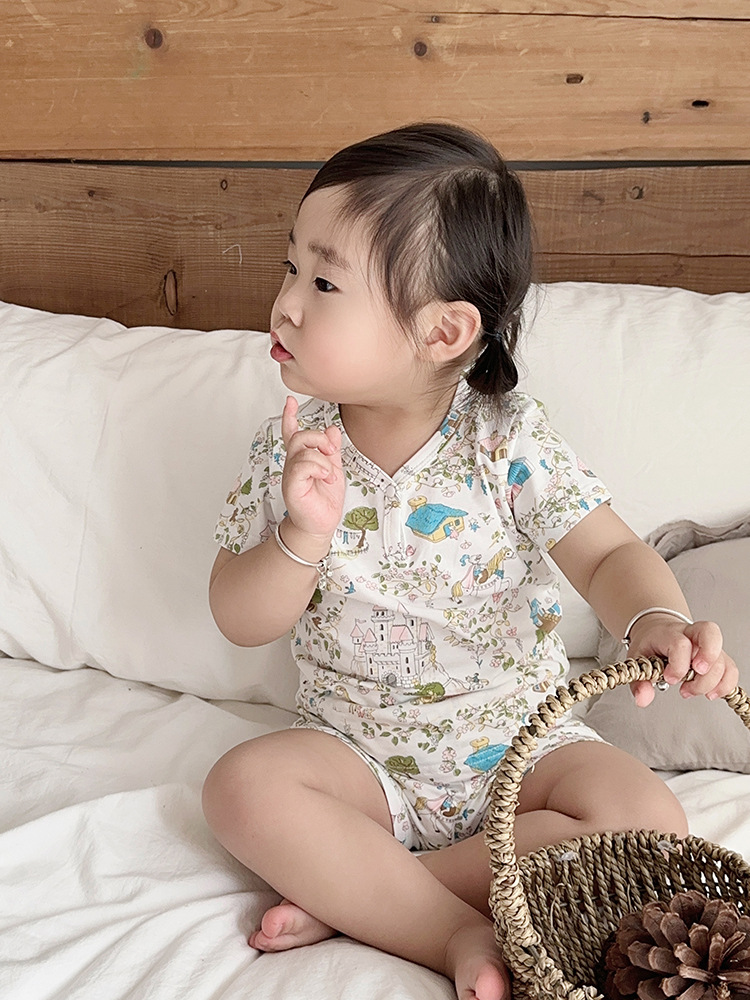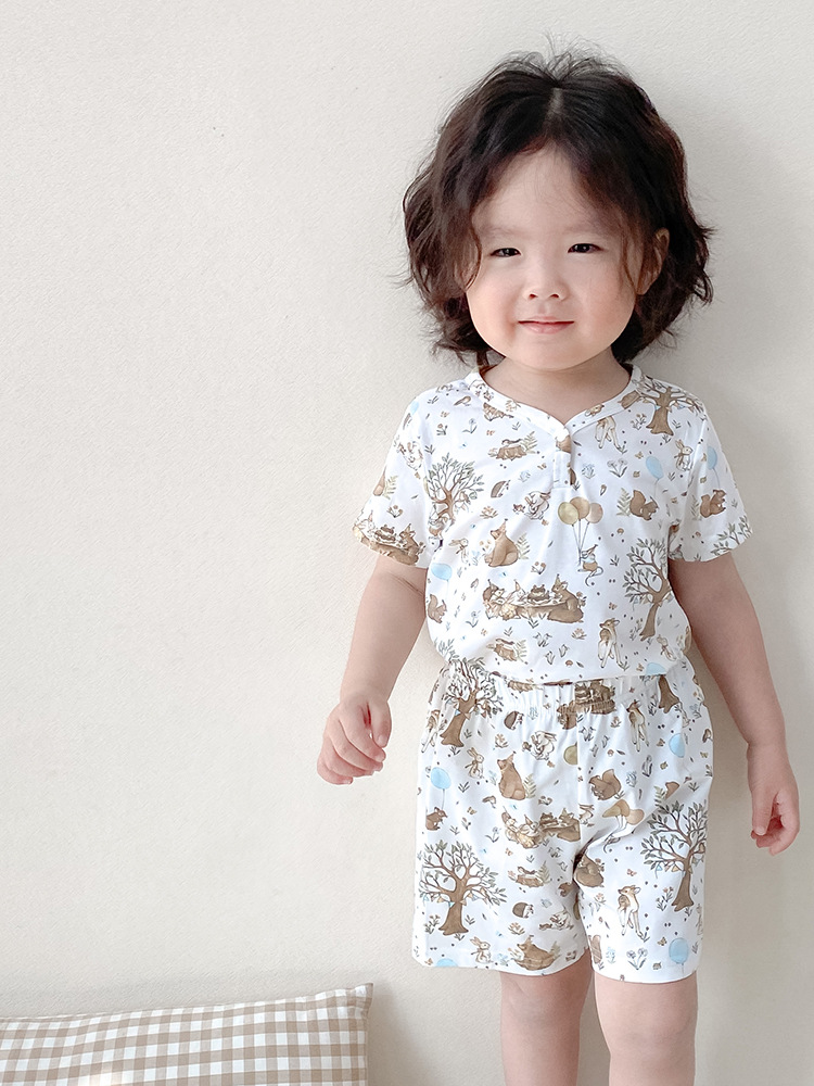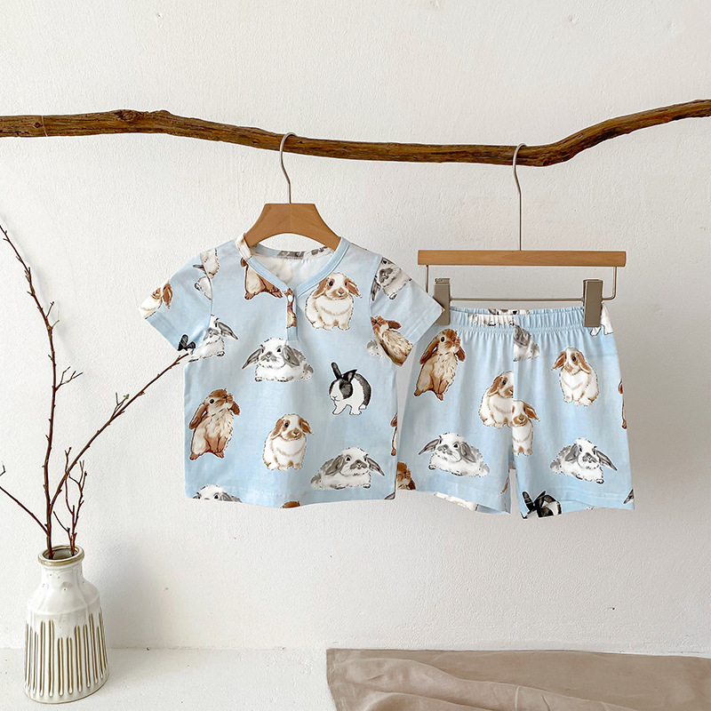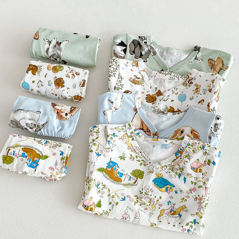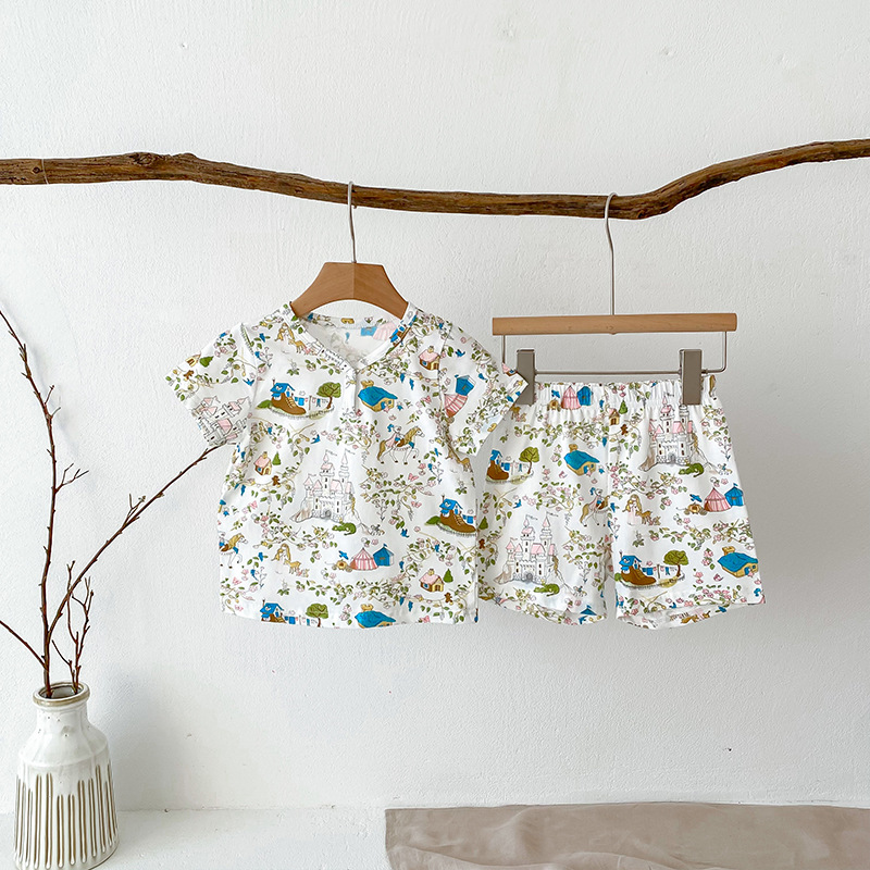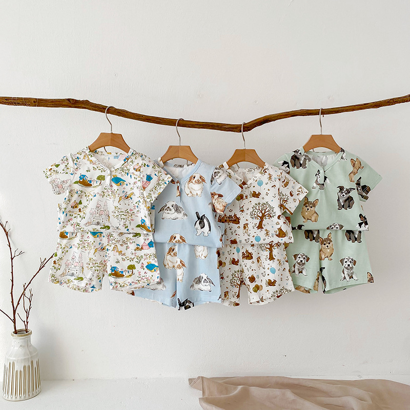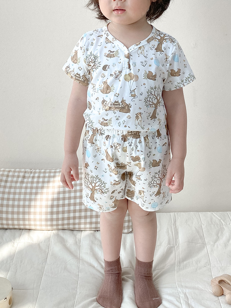 2025 여름 한국 아동복 남아 여아 잠옷 세트 A급 순면 아기 반팔 반바지 세트