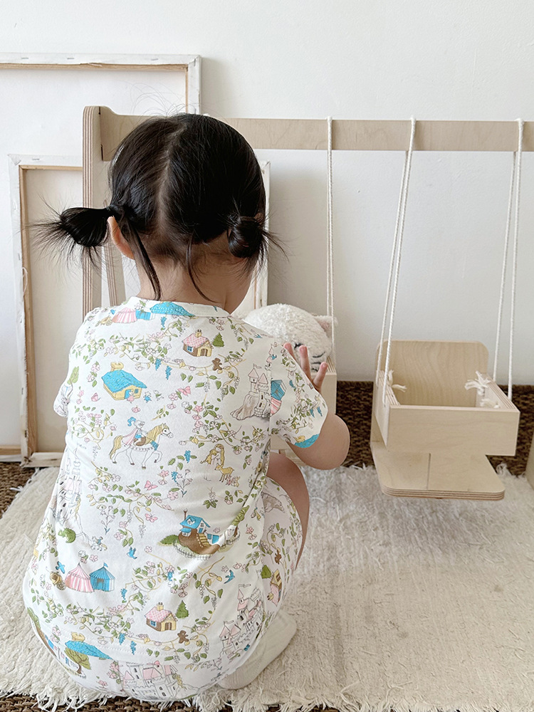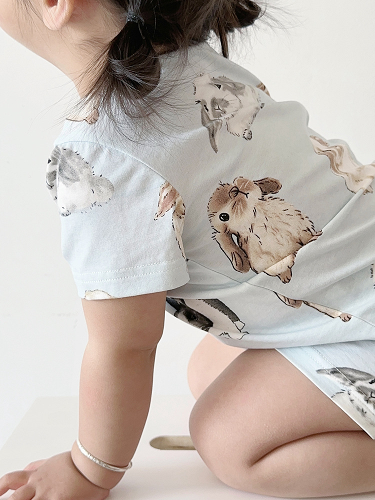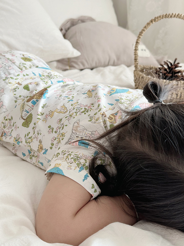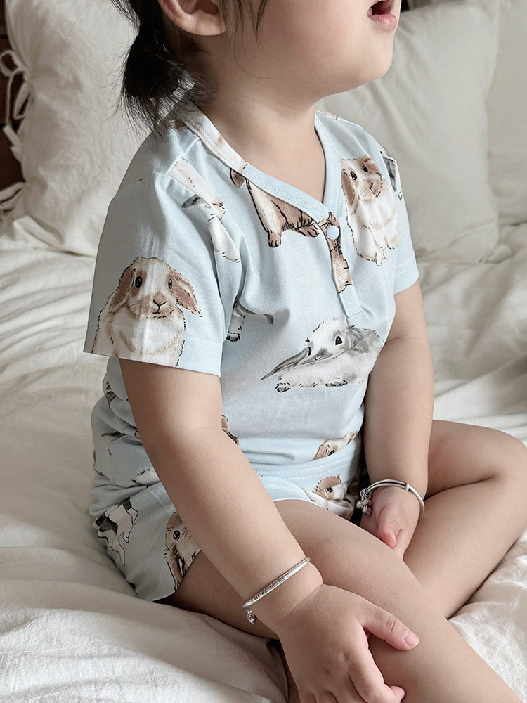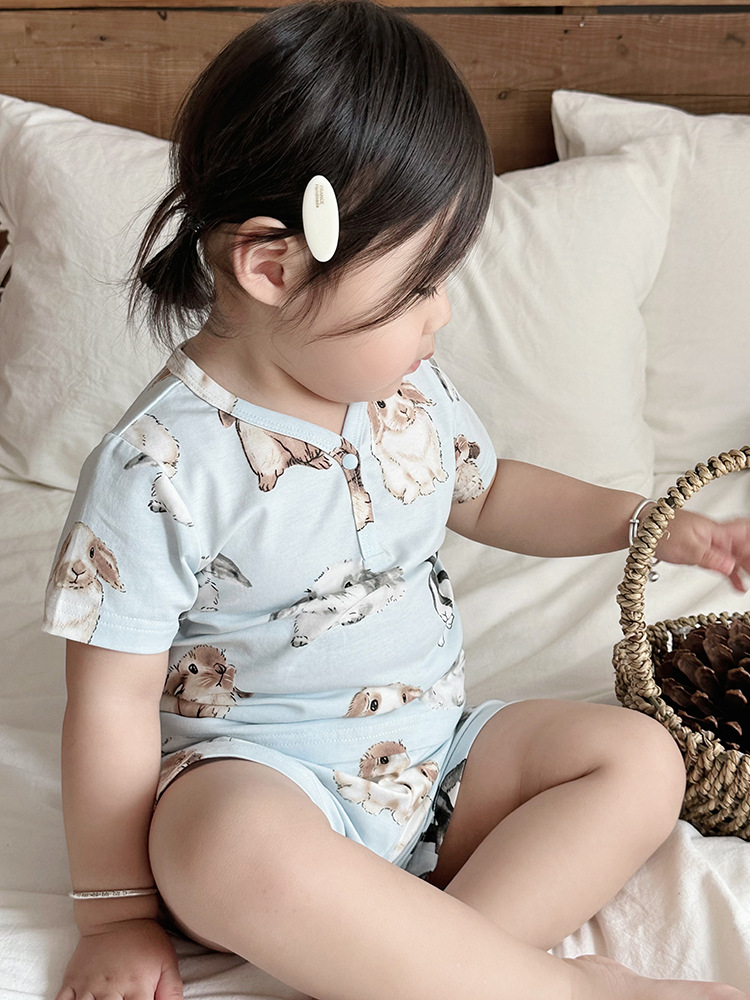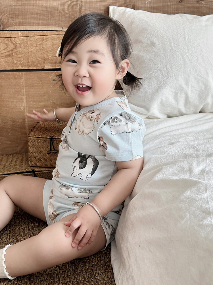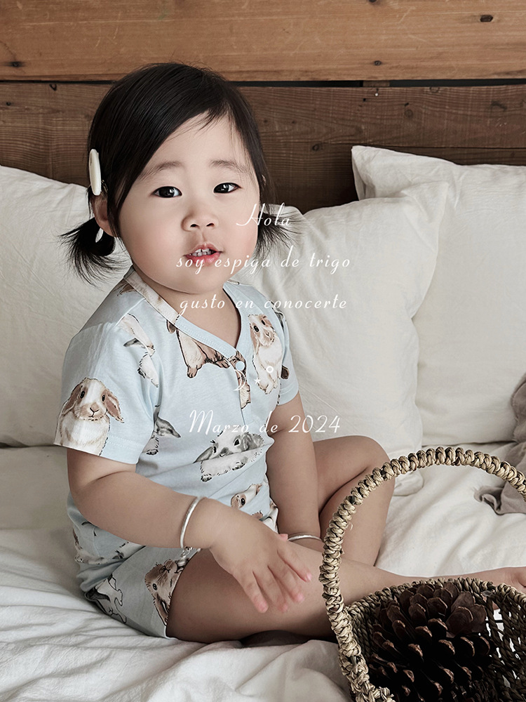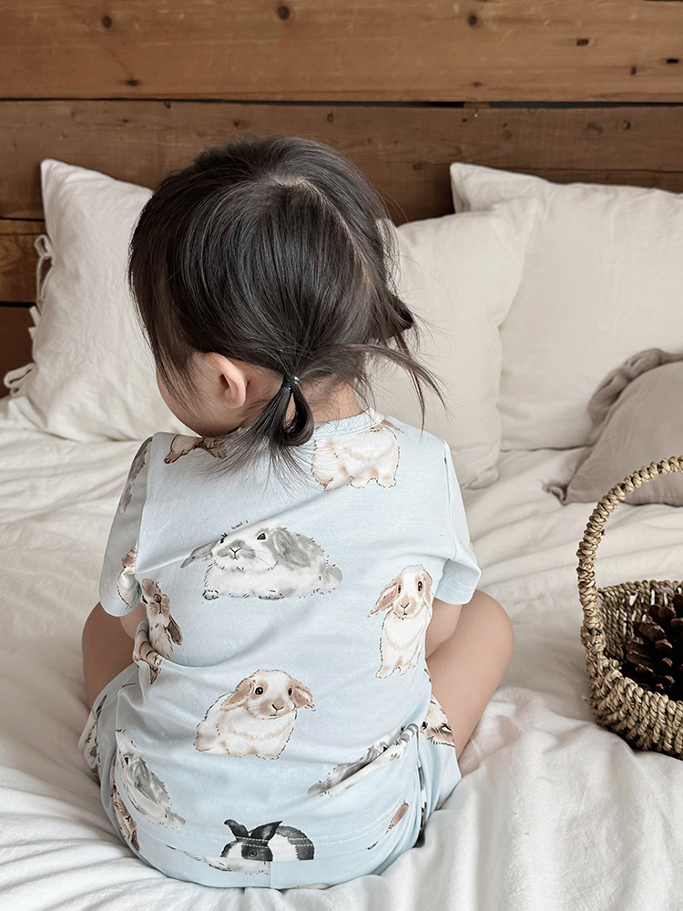 2025 여름 한국 아동복 남아 여아 잠옷 세트 A급 순면 아기 반팔 반바지 세트