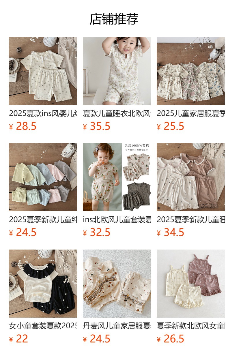 2025 여름 한국 아동복 남아 여아 잠옷 세트 A급 순면 아기 반팔 반바지 세트스토어 가기
