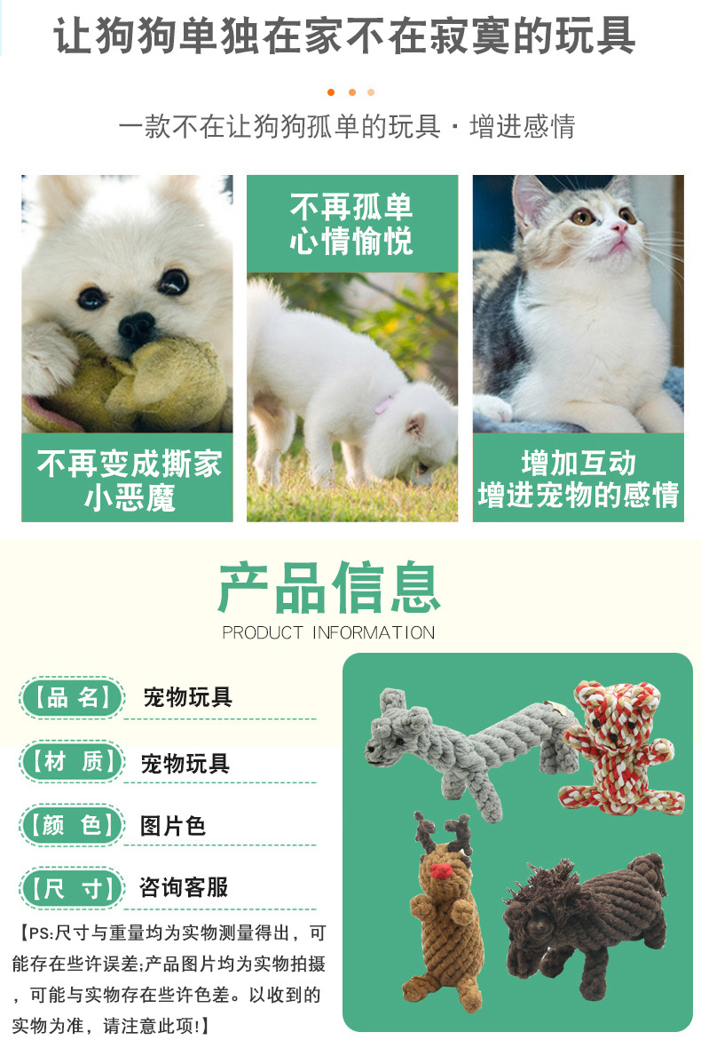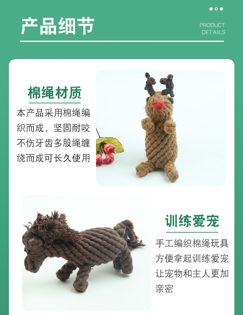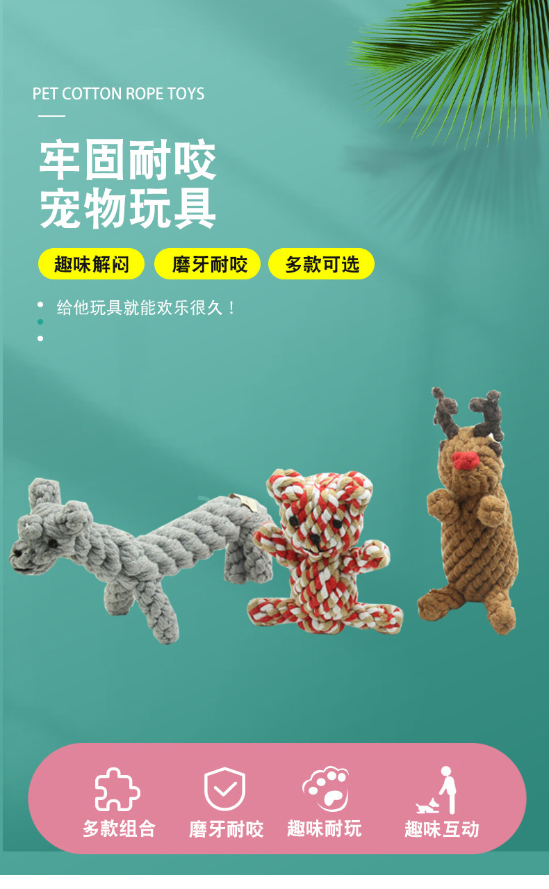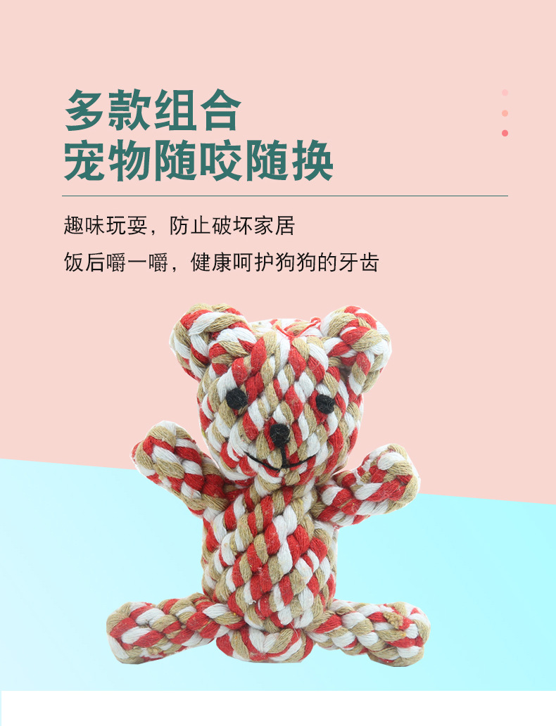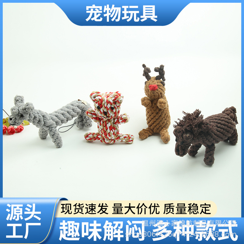 아마존 인기있는 애완 동물 장난감 짠 동물면 로프 어금니 장난감 물린 내마모성 물린 로프 공급 도매스토어 가기