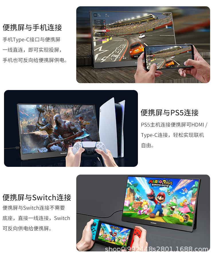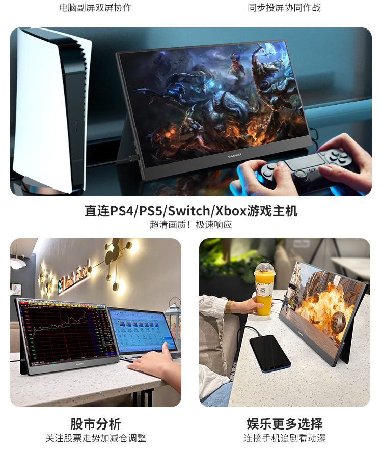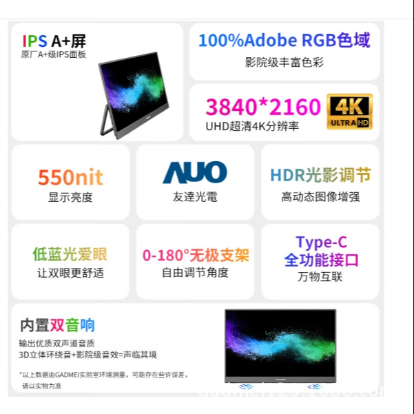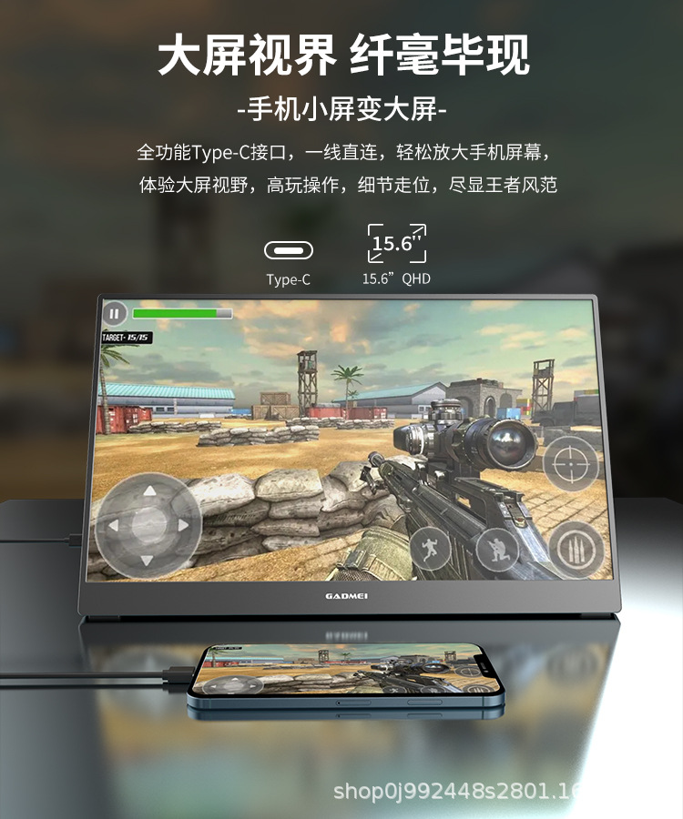15.6 인치 휴대용 디스플레이 4K 휴대용 화면 휴대 전화 외부 디스플레이 노트북 분할 화면 디스플레이