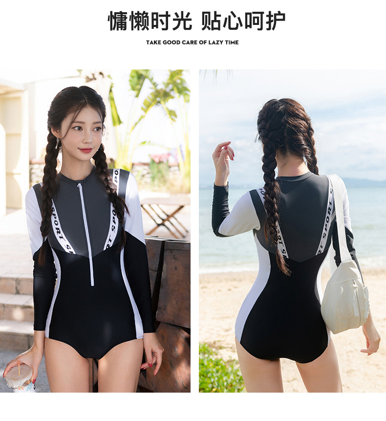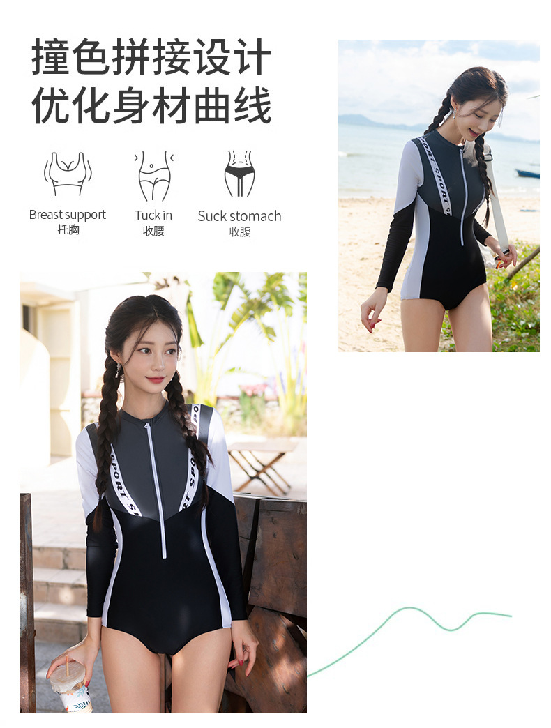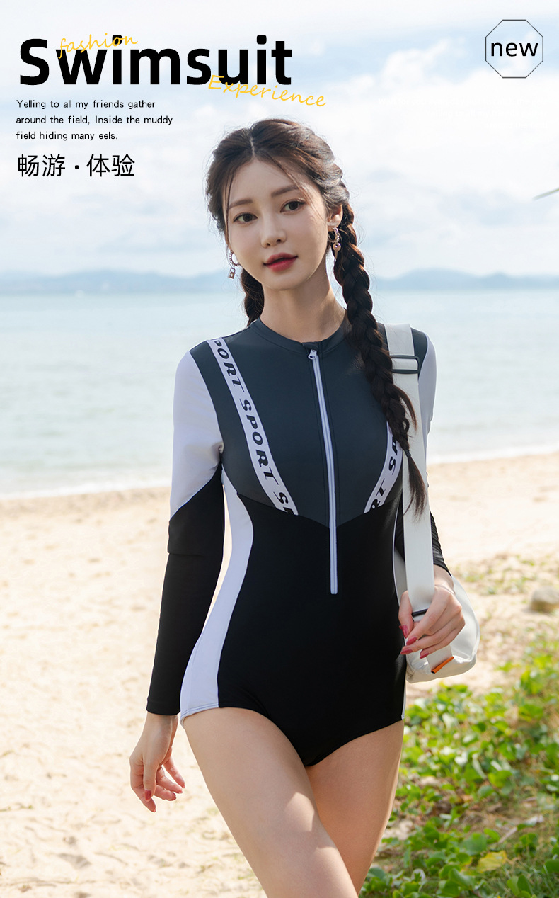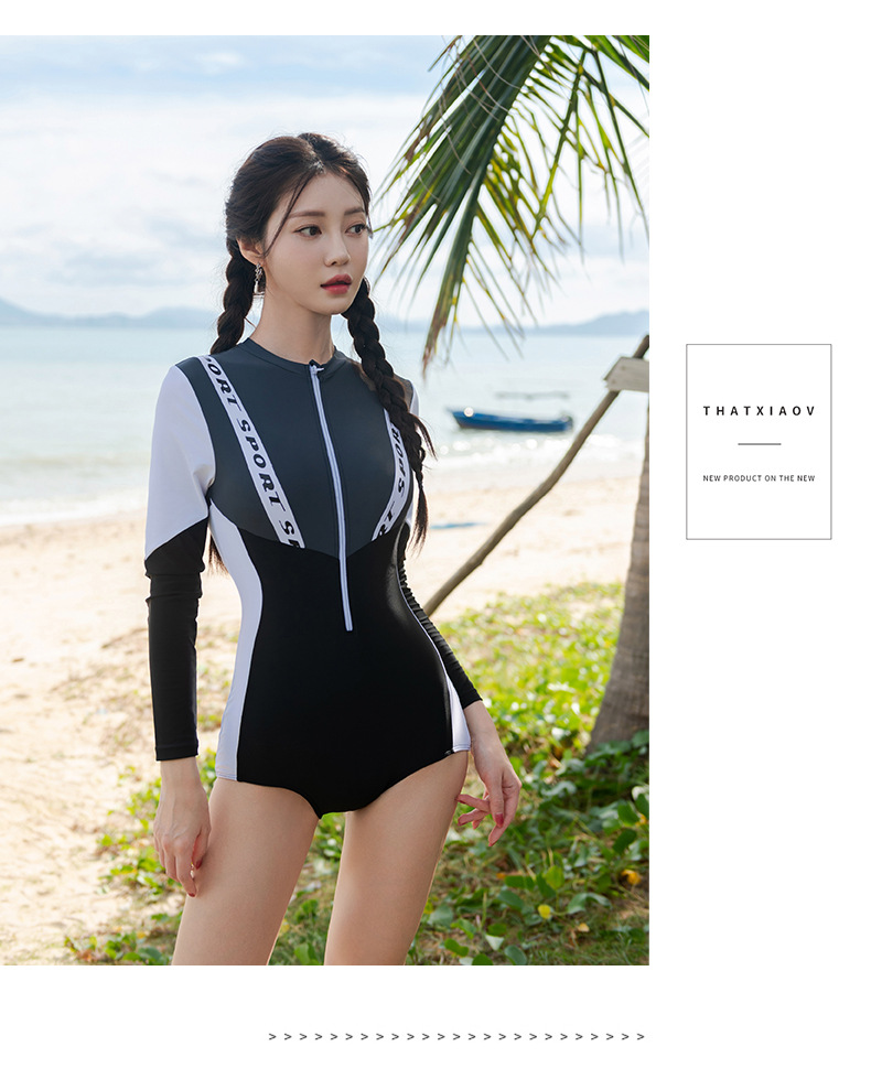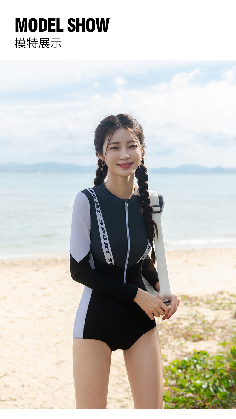 한국 스타일 s 스타일 원피스 긴 소매 보수적 인 태양 보호 슬림 적합 섹시한 대비 색상 슬리밍 온천 휴가 수영복 여성스토어 가기